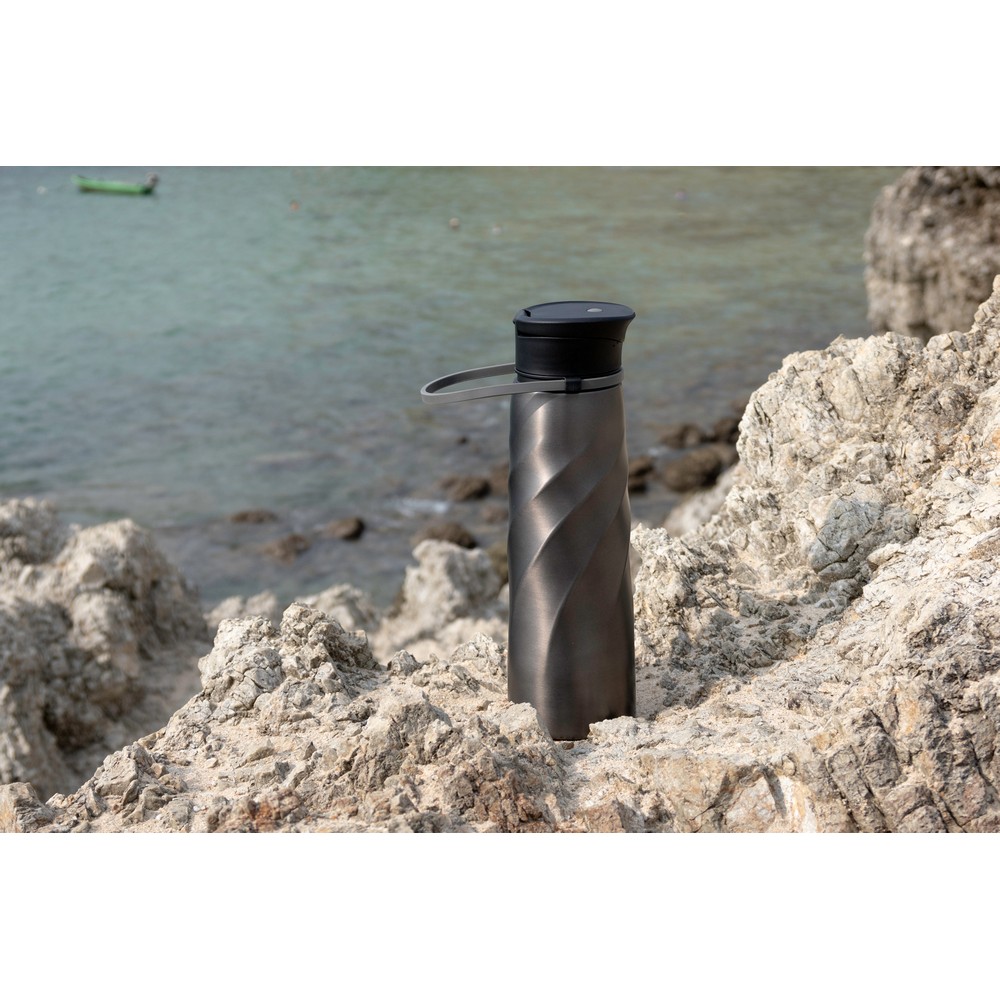 Butelka sportowa 1000 ml BrandCharger Vortex Athletica, elegancki wygląd, wykonana z lekkiej, jednościennej stali nierdzewnej 18/8, łatwiejsze czyszczenie dzięki w pełni demontowalnej nakrętce, elastyczny pasek ułatwiający noszenie, nadaje się do mycia w zmywarce, produkt wykonany ze stali nierdzewnej z recyklingu, PP i silikonu
