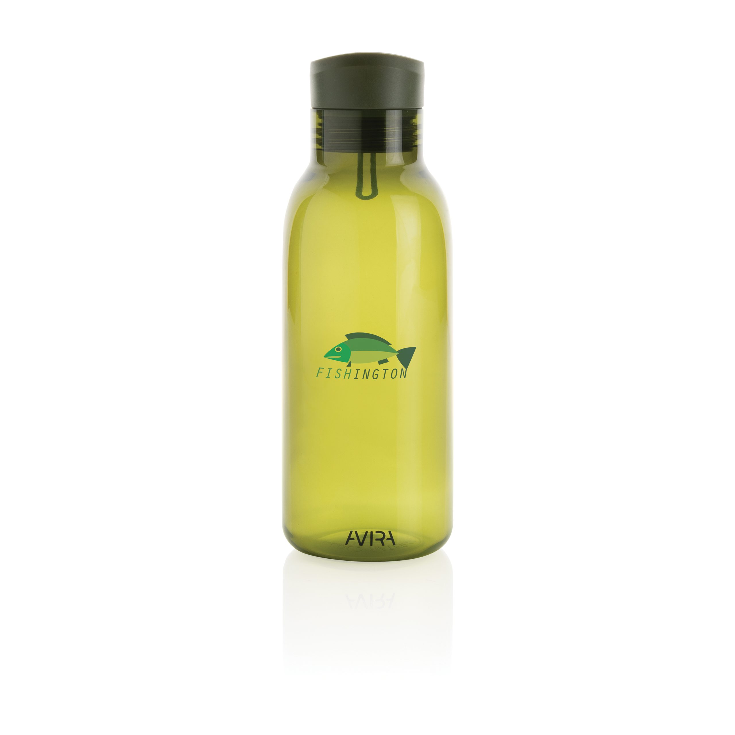 Butelka sportowa 500 ml, wykonana z RPET z certyfikatem RCS oraz PP z recyklingu, całkowita zawartość materiałów z recyklingu obliczona na podstawie wagi całkowitej przedmiotu: 98%, w pudełku z papieru kraftowego z certyfikatem FSC®, pudełko można wykorzystać jako stojak na telefon lub doniczkę, ślad węglowy produktu: 0,46 kg CO2