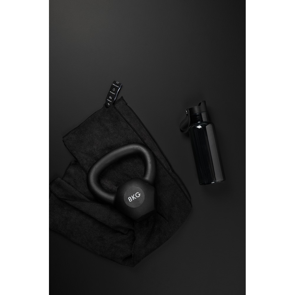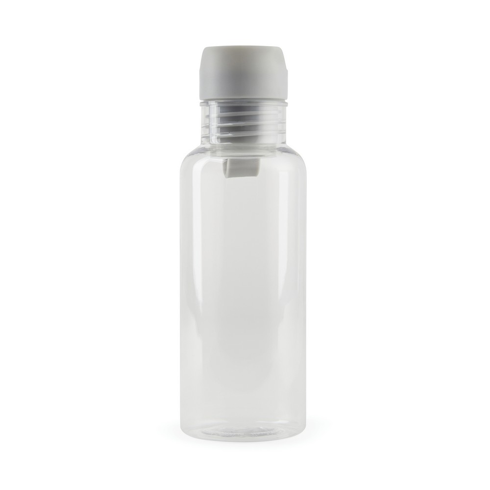 Butelka sportowa 600 ml, wykonana z RPET, całkowita zawartość materiałów z recyklingu obliczona na podstawie wagi całkowitej przedmiotu: 63%, nadaje się wyłącznie do zimnych napojów, zalecane mycie ręczne, w pudełku z papieru kraftowego z certyfikatem FSC®