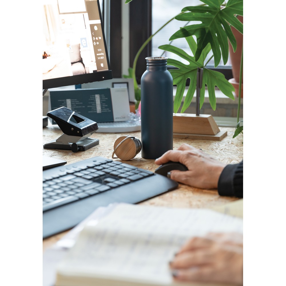 Butelka sportowa 700 ml, wykonana ze stali nierdzewnej, zakrętka z bambusa i stali nierdzewnej, z uchwytem, wyłącznie mycie ręczne, ślad węglowy produktu: 2,03 kg CO2