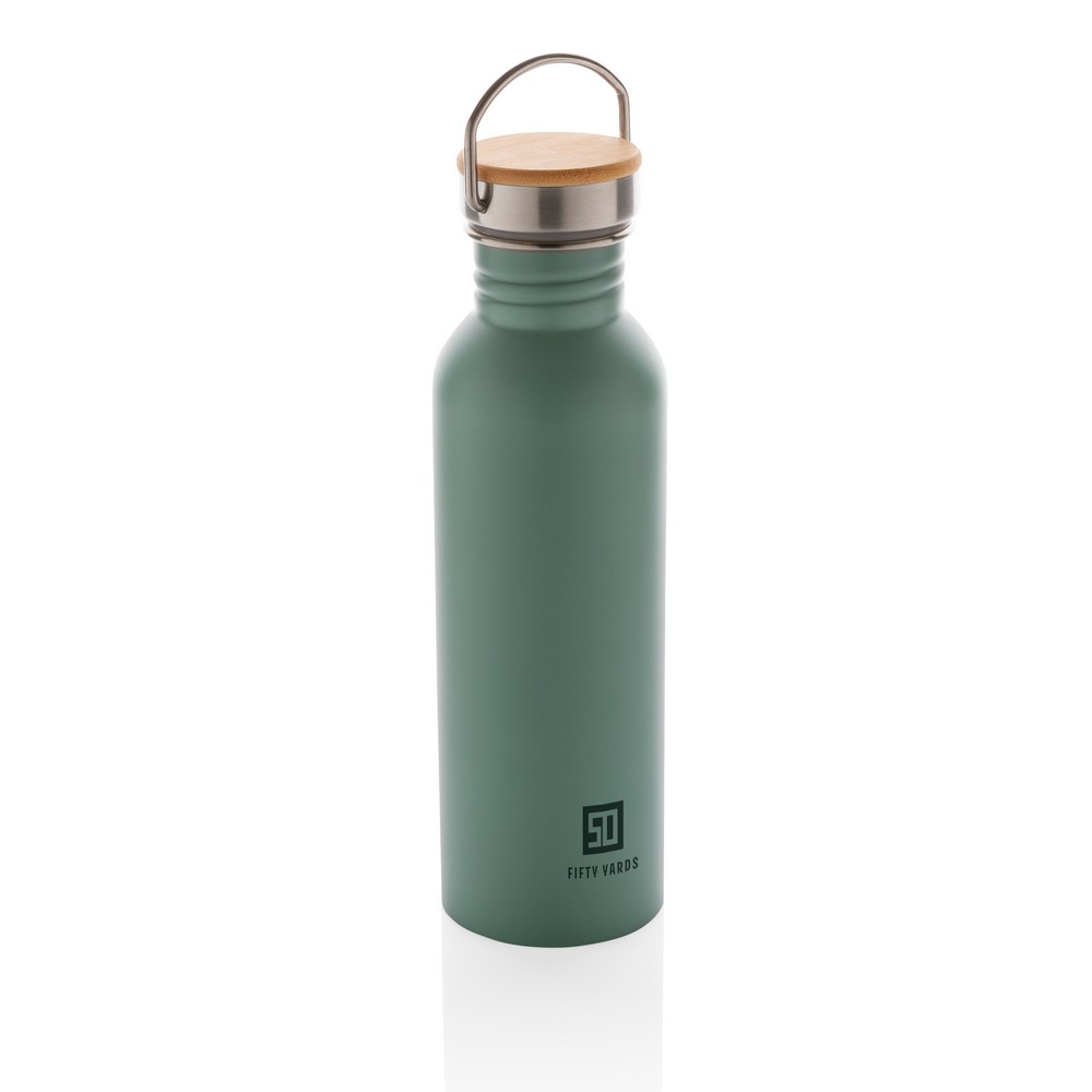 Butelka sportowa 700 ml, wykonana ze stali nierdzewnej, zakrętka z bambusa i stali nierdzewnej, z uchwytem, wyłącznie mycie ręczne, ślad węglowy produktu: 2,03 kg CO2
