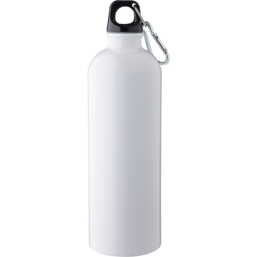 Butelka sportowa 750ml, jednowarstwowa, ikona recyklingu na produkcie, nie nadaje się do mycia w zmywarce, produkt wykonany ze stali nierdzewnej z recyklingu, nakrętka z PP, srebrny aluminiowy karabińczyk