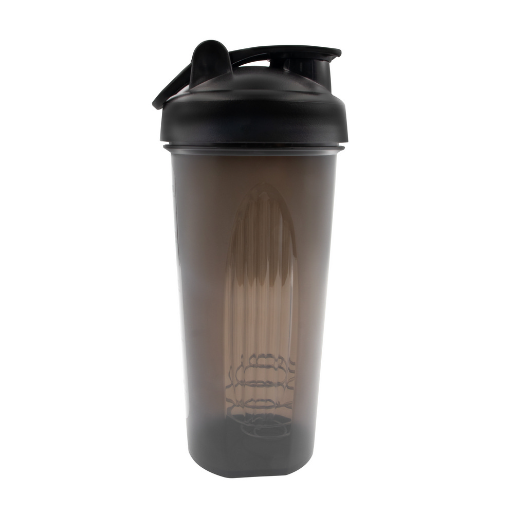 Butelka sportowa, shaker o pojemności 750 ml, posiada metalową kulkę ułatwiającą mieszanie suplementów, na jednej stronie znajduje się skala ml oraz oz, produkt wykonany z PP, PE i metalu