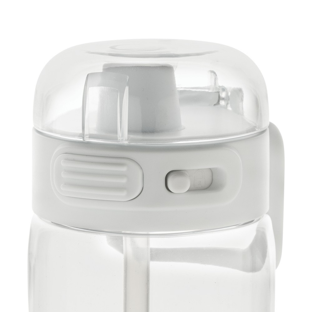Butelka sportowa 800 ml, wieczko z blokadą i przyciskiem otwarcia ustnika umożliwiającym obsługę jedną ręką, wykonana z RPET, całkowita zawartość materiałów z recyklingu obliczona na podstawie wagi całkowitej przedmiotu: 84%