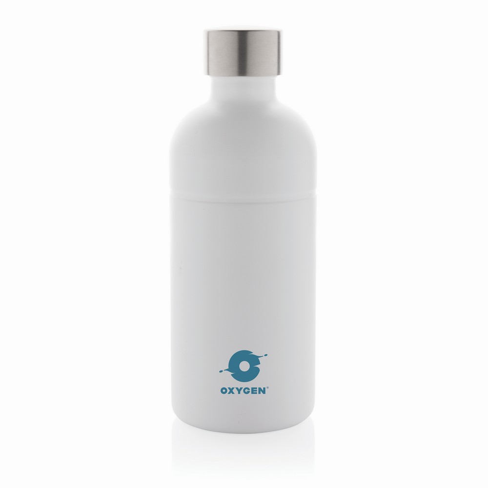 Butelka sportowa 800 ml, pojedyncza ścianka, odpowiednia do napojów gazowanych, szczelna, wykonana ze stali nierdzewnej z recyklingu z certyfikatem RCS, całkowita zawartość materiałów z recyklingu obliczona na podstawie wagi całkowitej przedmiotu: 85%, w pudełku z papieru kraftowego z certyfikatem FSC®, wzór zastrzeżony®, ślad węglowy produktu: 1,66 kg CO2