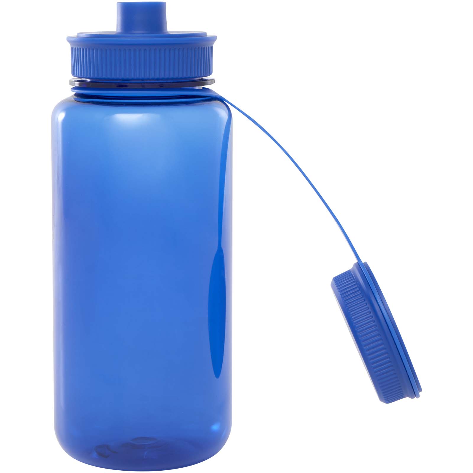 Butelka sportowa z pojedynczą ścianką wykonana z certyfikowanego przez RCS tworzywa RPET, wyposażona w zakrętkę i szczelną przykrywkę z wygodnym uchwytem do przenoszenia zintegrowanym z zakrętką. Otwierana z dwóch stron konstrukcja ułatwiająca czyszczenie i napełnianie. Zgodność ze standardami recyklingu PET zatwierdzonymi przez EFSA (Europejski Urząd ds. Bezpieczeństwa Żywności). Pojemność: 900 ml.
