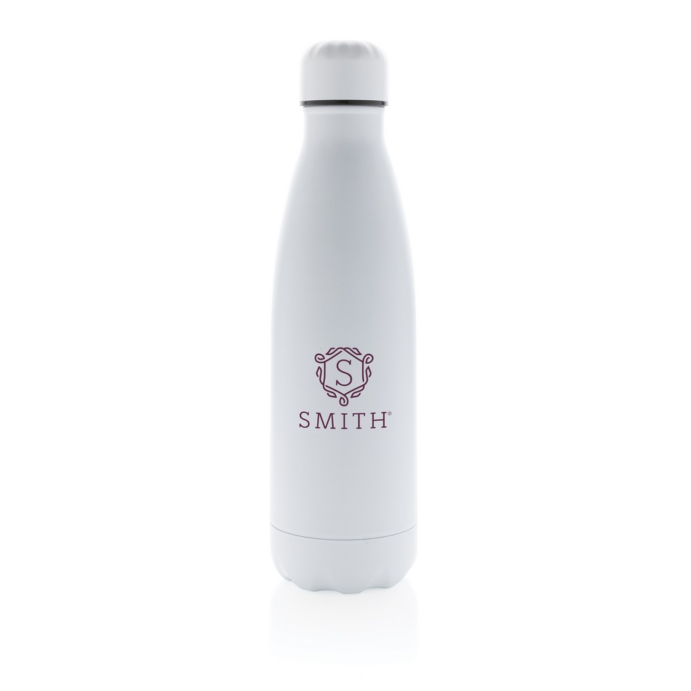 Butelka termiczna 500 ml, podwójne ścianki ze stali nierdzewnej z próżnią pomiędzy, pasuje do większości uchwytów na kubek, utrzymuje temperaturę napojów gorących do 20 godzin oraz zimnych do 15 godzin