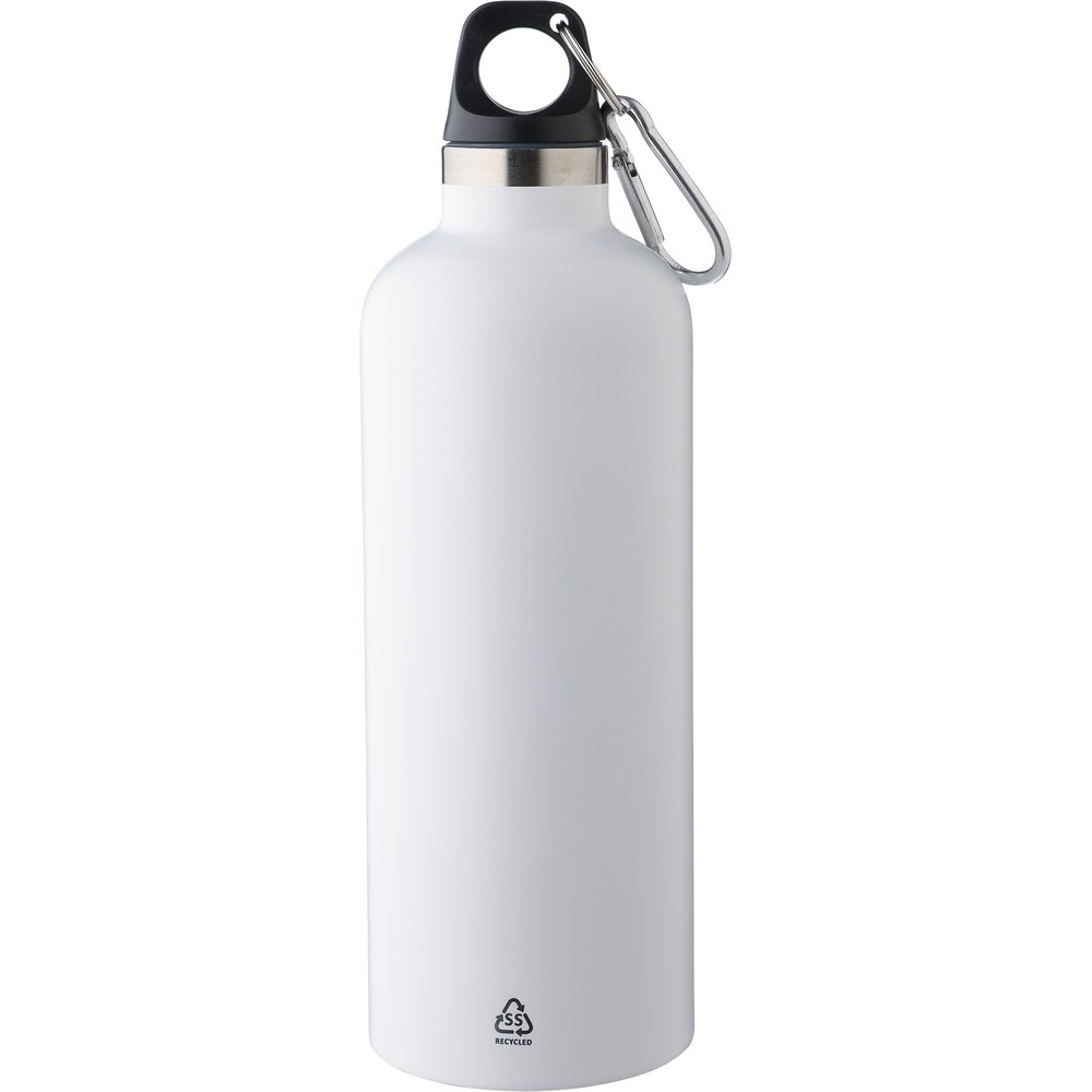 Butelka termiczna 500 ml, posiada podwójne ścianki, które spowalniają oddawanie temperatury na zewnątrz, utrzymuje temperaturę napojów: ciepłych do 8 godzin, zimnych do 12 godzin, posiada matowe wykończenie (z wyjątkiem koloru -32), ikona recyklingu na produkcie, nie nadaje się do mycia w zmywarce, pakowana pojedynczo w brązowe kartonowe pudełko, produkt wykonany stali nierdzewnej z recyklingu, nakrętka z PP, aluminiowy karabińczyk
