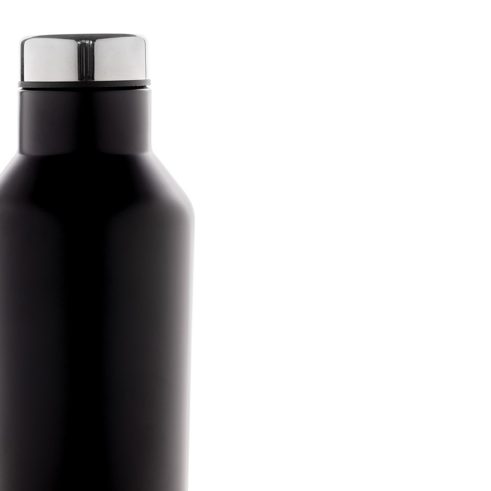 Butelka termiczna 500 ml, podwójne ścianki ze stali nierdzewnej z próżnią pomiędzy, szczelna stalowa zakrętka, utrzymuje temperaturę napojów gorących do 20 godzin oraz zimnych do 15 godzin