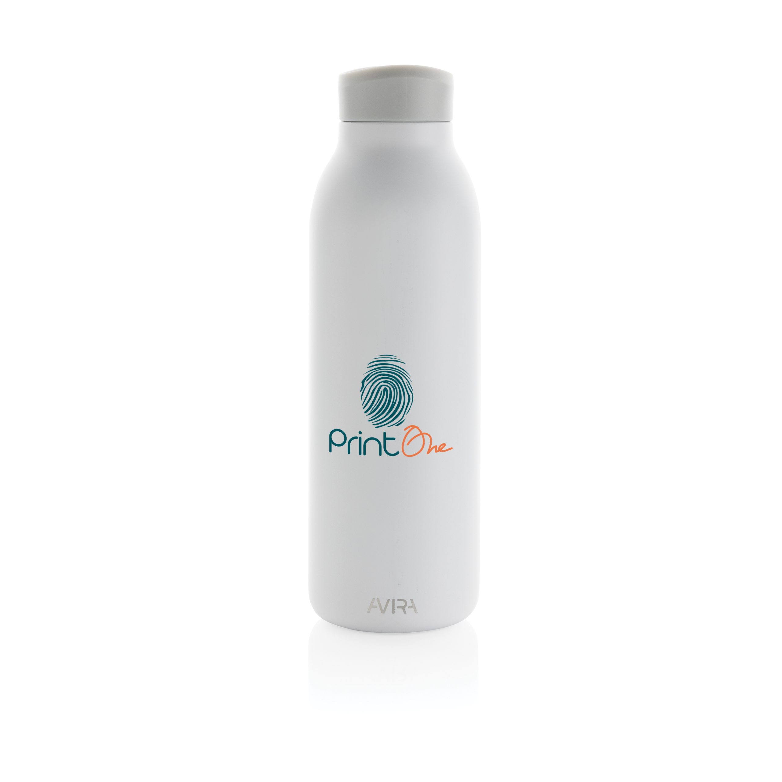 Butelka termiczna 500 ml, podwójne ścianki ze stali nierdzewnej z recyklingu z próżnią pomiędzy, zawartość materiałów z recyklingu obliczona na podstawie wagi całkowitej przedmiotu: 97%, utrzymuje temperaturę napojów ciepłych do 10 godzin oraz zimnych do 20 godzin, pasuje do większości uchwytów samochodowych, w pudełku z certyfikatem FSC®, klasa termiczna: A, ślad węglowy produktu: 1,35 kg CO2
