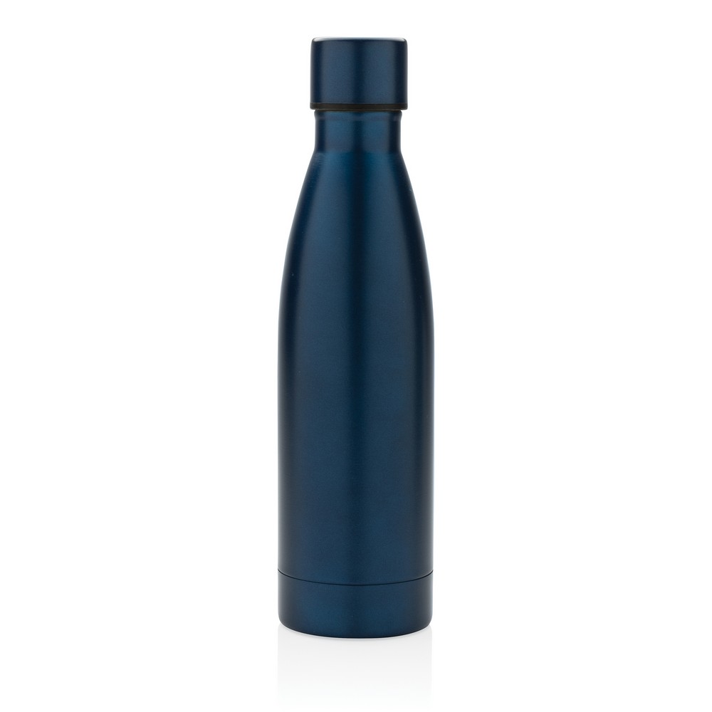 Butelka termiczna 500 ml, podwójne ścianki z próżnią pomiędzy, wykonana ze stali nierdzewnej z recyklingu z certyfikatem RCS (Recycled Claim Standard) który gwarantuje, że wykorzystane materiały pochodzą z recyklingu, całkowita zawartość materiału z recyklingu obliczona w oparciu o wagę całkowitą przedmiotu: 93%, pasuje do większości uchwytów samochodowych, w pudełku z papieru kraftowego, utrzymuje temperaturę napojów gorących do 20 godzin oraz zimnych do 15 godzin