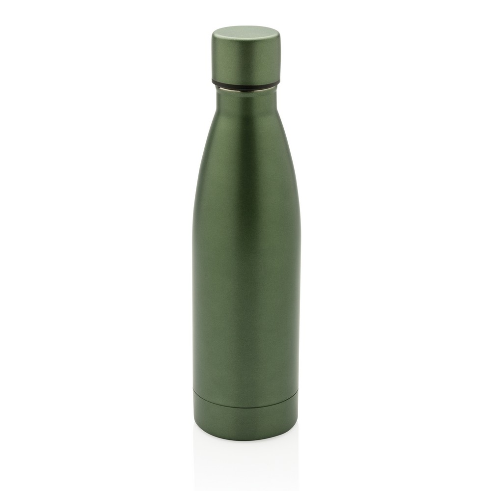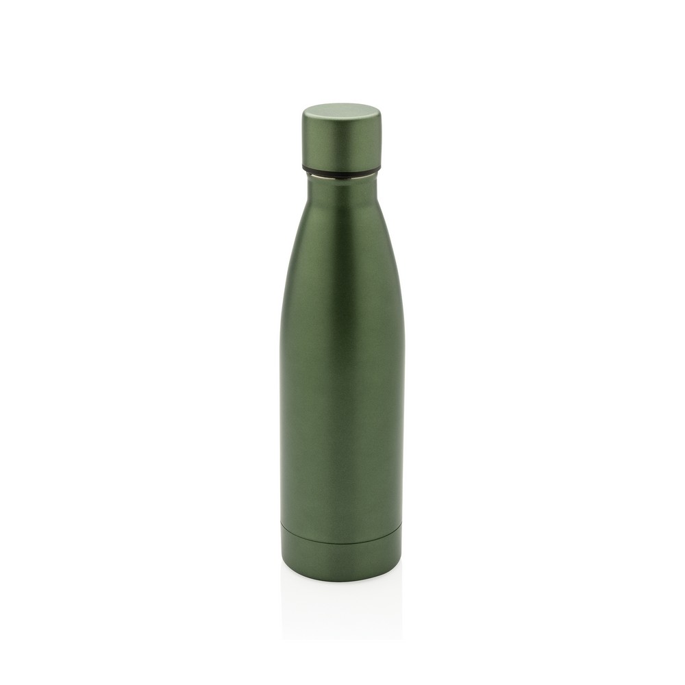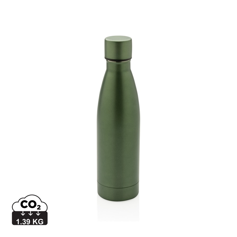 Butelka termiczna 500 ml, podwójne ścianki z próżnią pomiędzy, wykonana ze stali nierdzewnej z recyklingu z certyfikatem RCS (Recycled Claim Standard) który gwarantuje, że wykorzystane materiały pochodzą z recyklingu, całkowita zawartość materiału z recyklingu obliczona w oparciu o wagę całkowitą przedmiotu: 93%, pasuje do większości uchwytów samochodowych, w pudełku z papieru kraftowego, utrzymuje temperaturę napojów gorących do 20 godzin oraz zimnych do 15 godzin