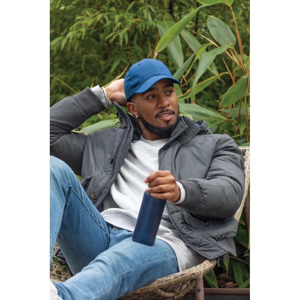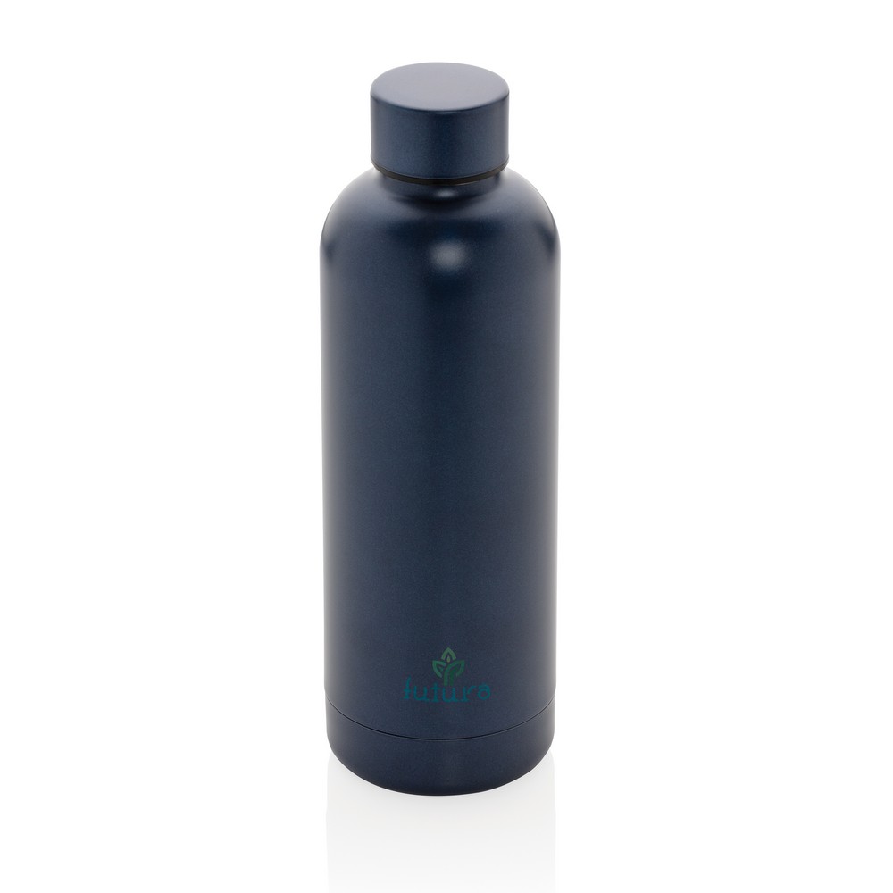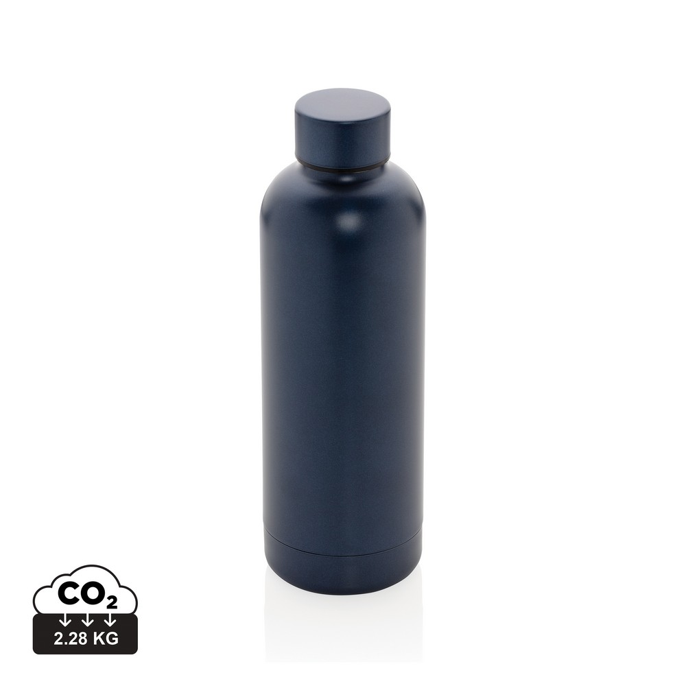 Butelka termiczna 500 ml, wykonana z materiałów pochodzących z recyklingu z certyfikatem RCS, całkowita zawartość materiałów z recyklingu obliczona na podstawie wagi całkowitej przedmiotu: 80%, podwójne ścianki z próżnią pomiędzy, minimalistyczne wykończenie, w opakowaniu z papieru kraftowego, utrzymuje temperaturę napojów gorących do 5 godzin oraz zimnych do 15 godzin