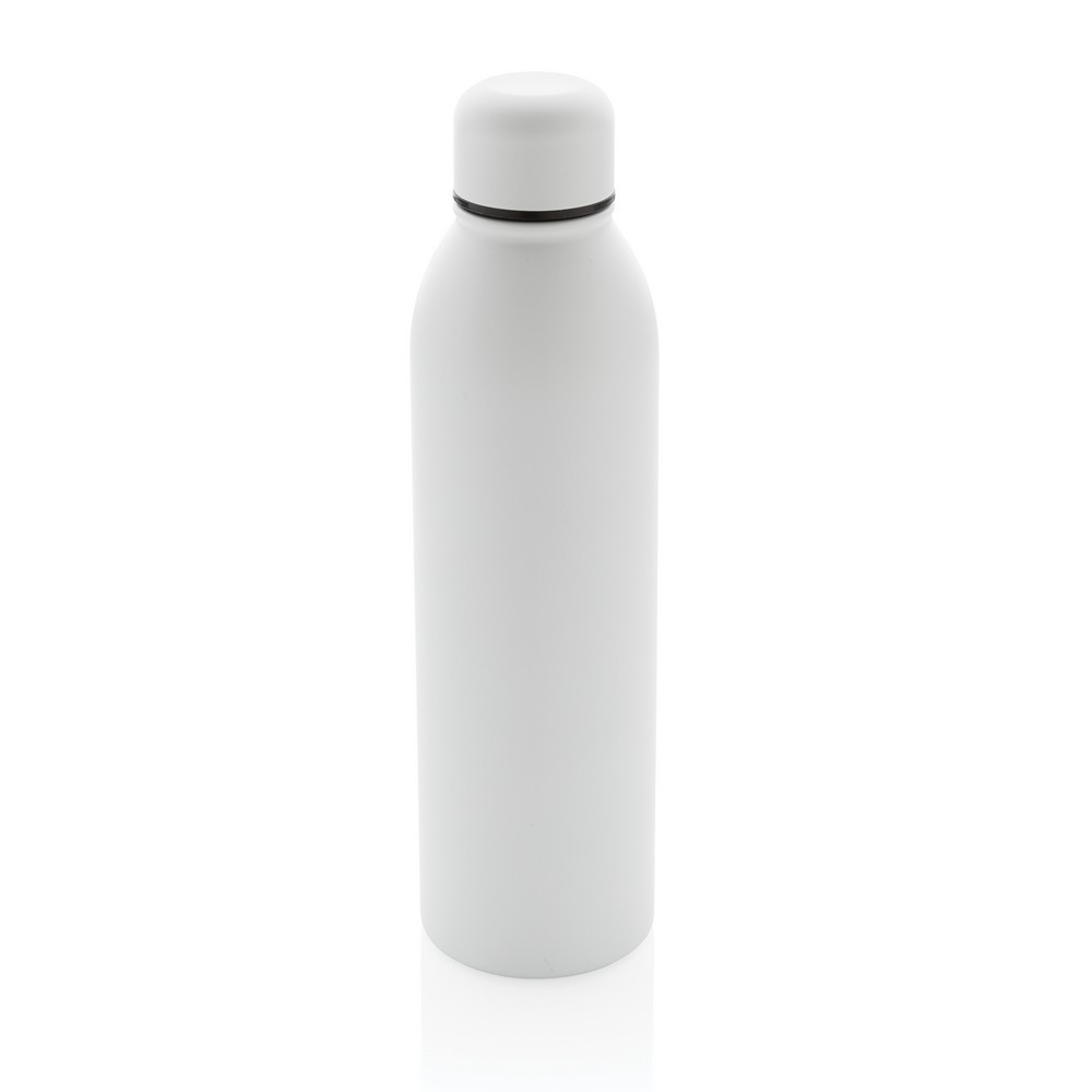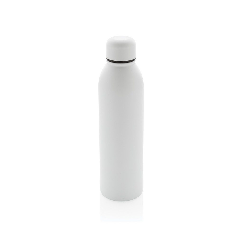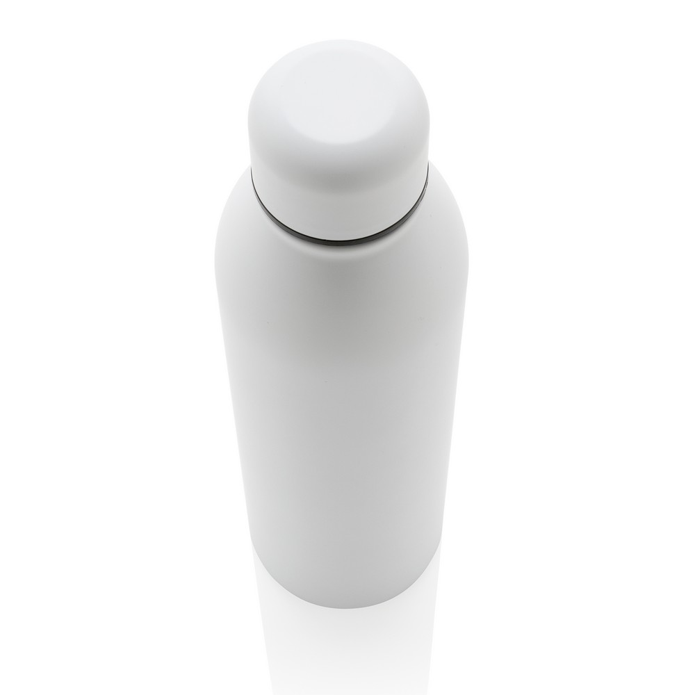 Butelka termiczna 500 ml, podwójne ścianki z próżnią pomiędzy, wykonana ze stali nierdzewnej z recyklingu z certyfikatem RSC (Recycled Claim Standard) który gwarantuje, że wykorzystane materiały pochodzą z recyklingu, całkowita zawartość materiału z recyklingu obliczona w oparciu o wagę całkowitą przedmiotu: 90%, w pudełku z papieru kraftowego, pasuje do większości uchwytów samochodowych, utrzymuje temperaturę napojów gorących do 20 godzin oraz zimnych do 15 godzin