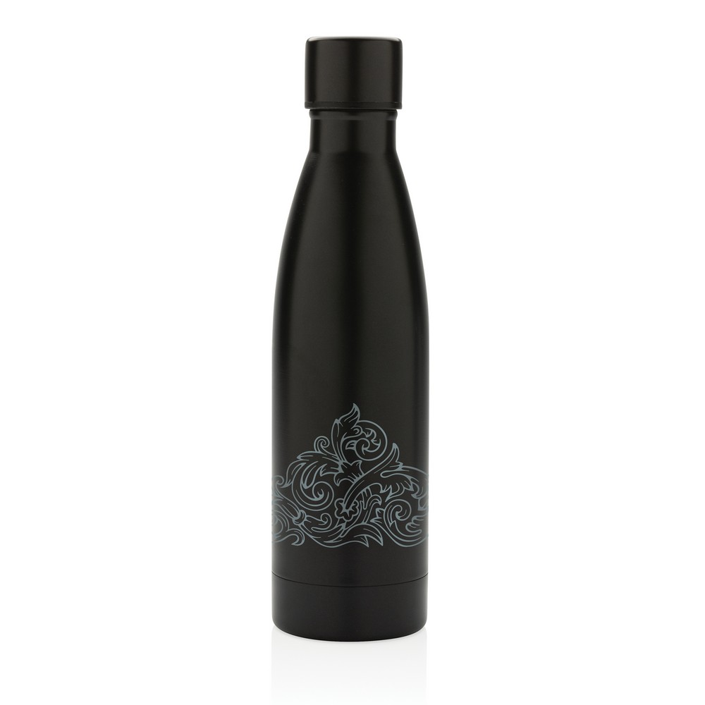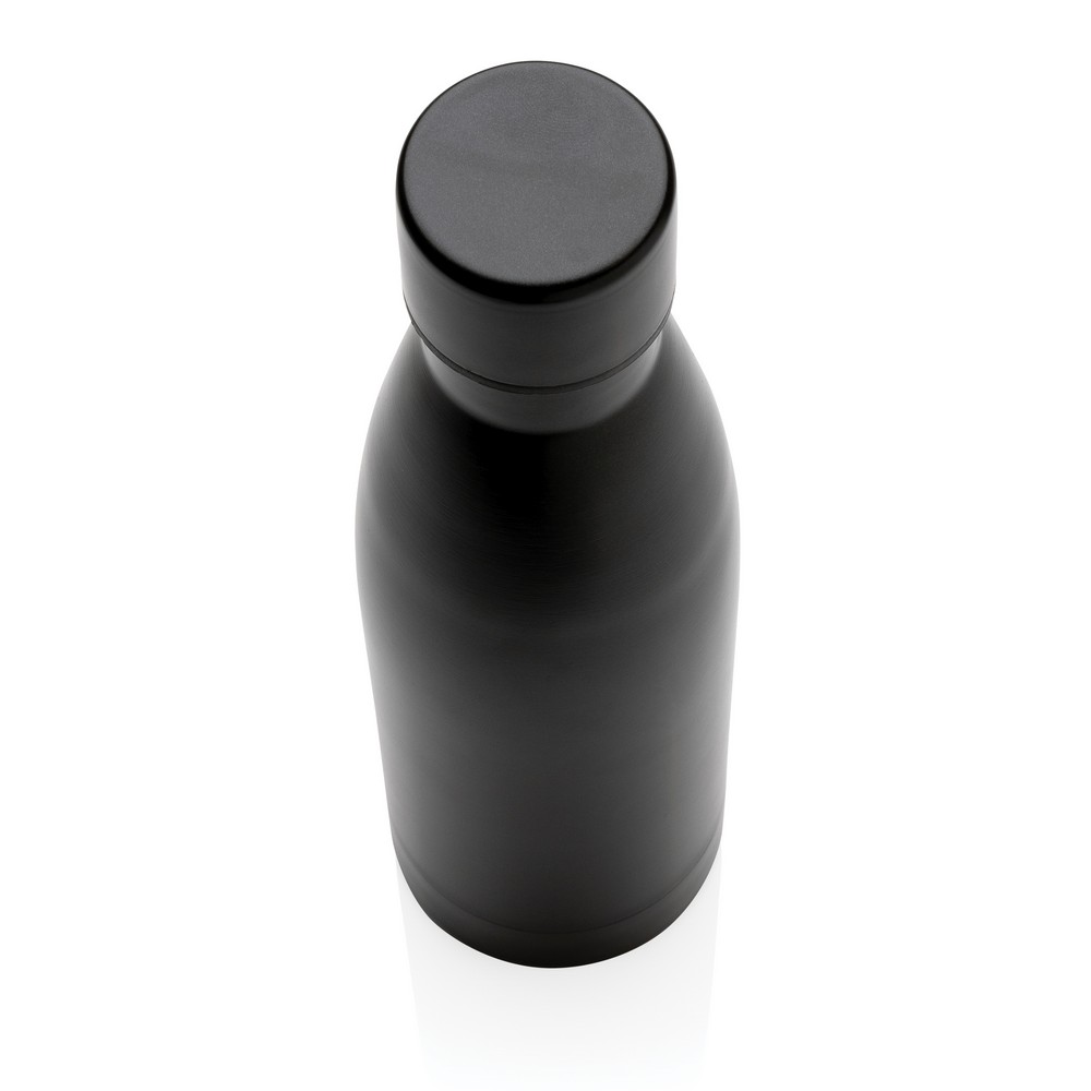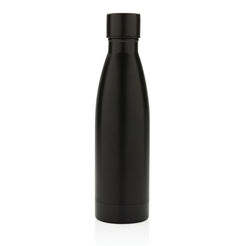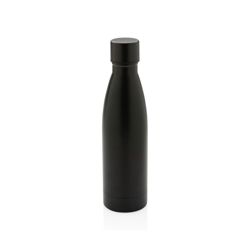 Butelka termiczna 500 ml, podwójne ścianki z próżnią pomiędzy, wykonana ze stali nierdzewnej z recyklingu z certyfikatem RCS (Recycled Claim Standard) który gwarantuje, że wykorzystane materiały pochodzą z recyklingu, całkowita zawartość materiału z recyklingu obliczona w oparciu o wagę całkowitą przedmiotu: 93%, pasuje do większości uchwytów samochodowych, w pudełku z papieru kraftowego, utrzymuje temperaturę napojów gorących do 20 godzin oraz zimnych do 15 godzin