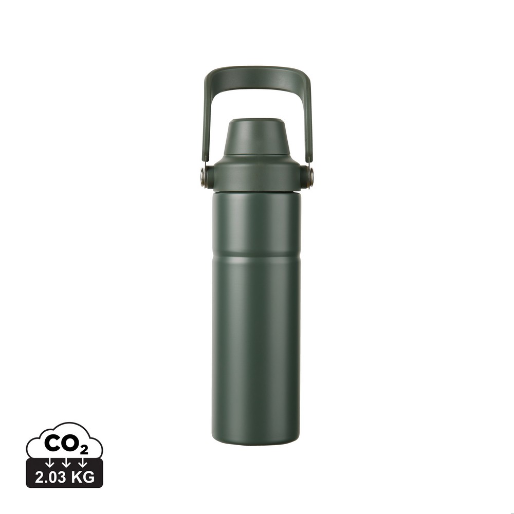 Butelka termiczna 600 ml z uchwytem, podwójne ścianki ze stali nierdzewnej z recyklingu z próżnią pomiędzy, całkowita zawartość materiałów z recyklingu obliczona na podstawie wagi całkowitej przedmiotu: 65%
