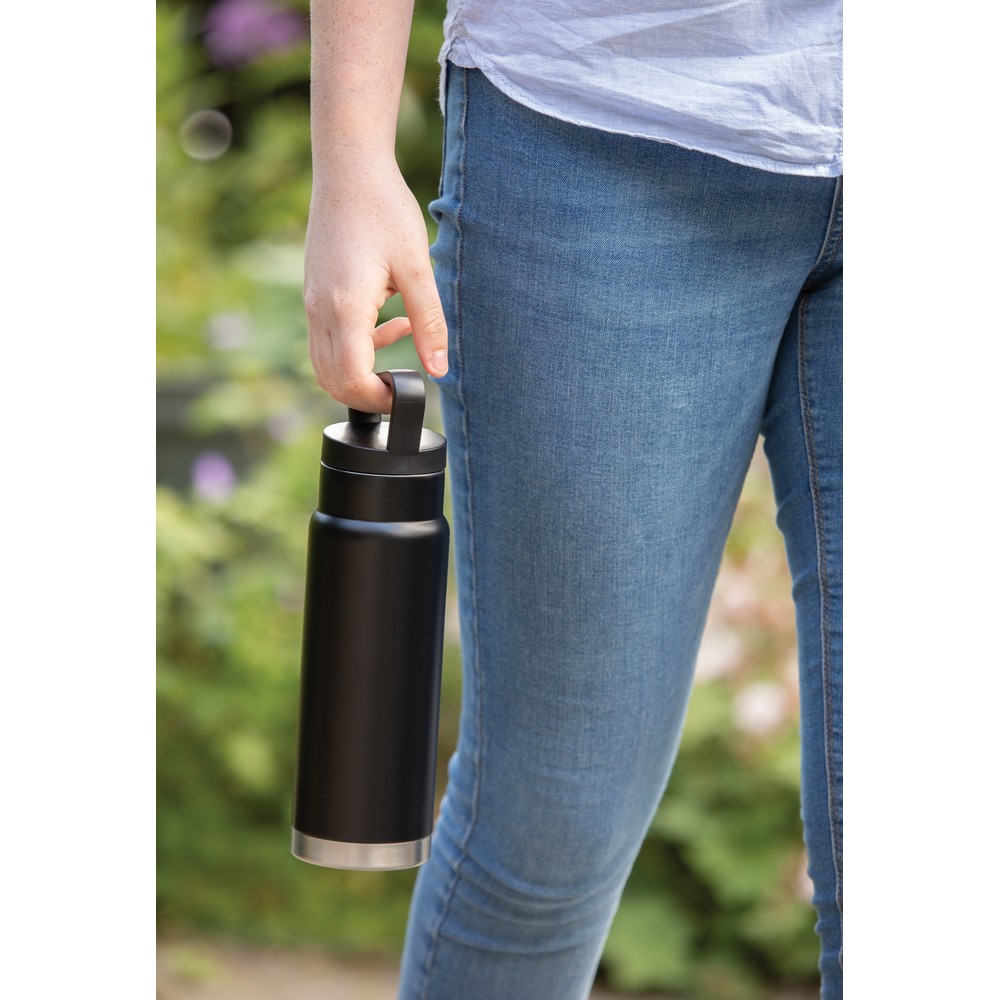 Butelka termiczna 650 ml, podwójne ścianki ze stali nierdzewnej z próżnią pomiędzy, zakrętka z uchwytem, utrzymuje temperaturę napojów gorących do 20 godzin oraz zimnych do 15 godzin