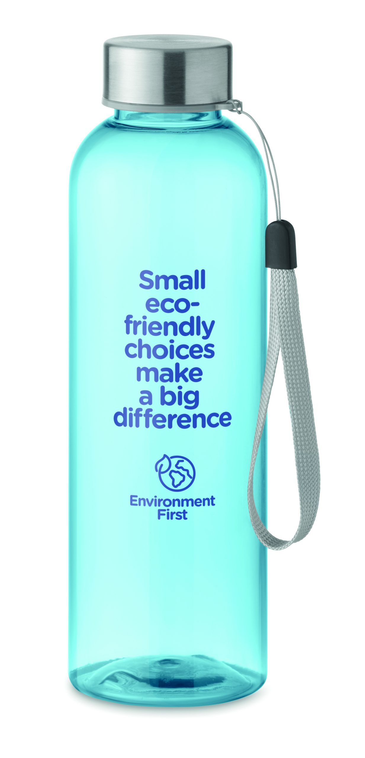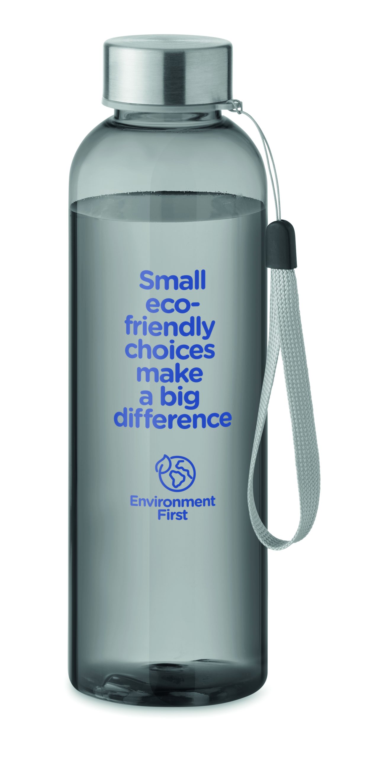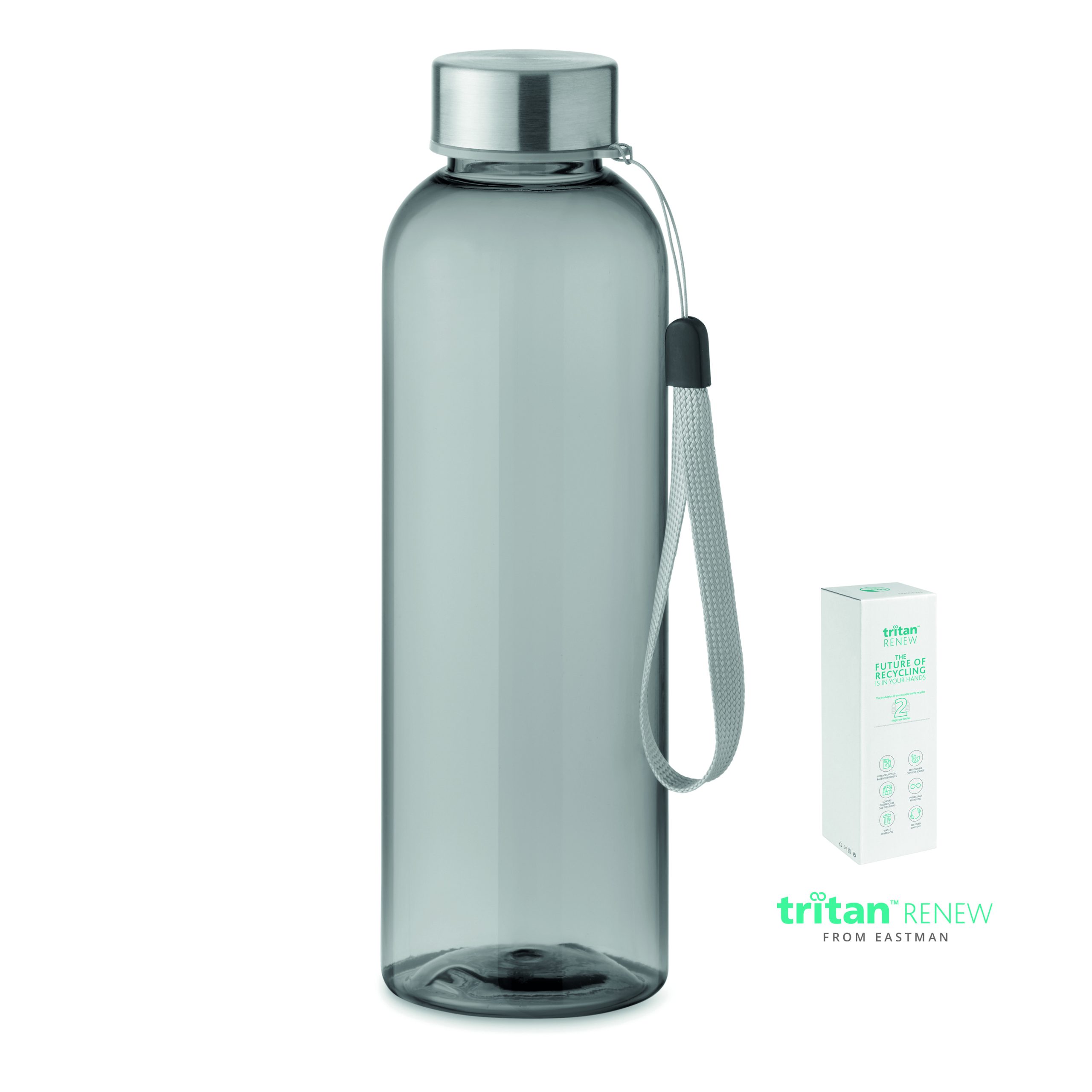 Butelka do picia z materiału Tritan Renew™, który nie zawiera BPA, z zakrętką z uchwytem ze stali nierdzewnej. Szczelna. Pojemność 500 ml. Ten produkt jest wykonany w 50% z odpadów z tworzyw sztucznych przy użyciu certyfikowanego bilansu masy ISCC.