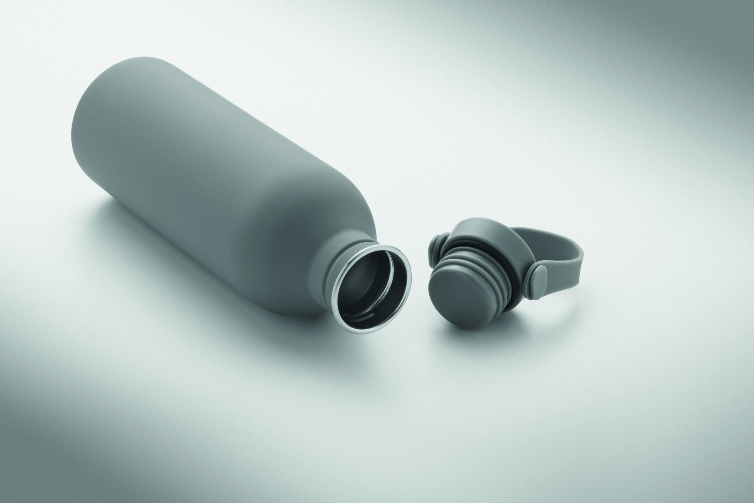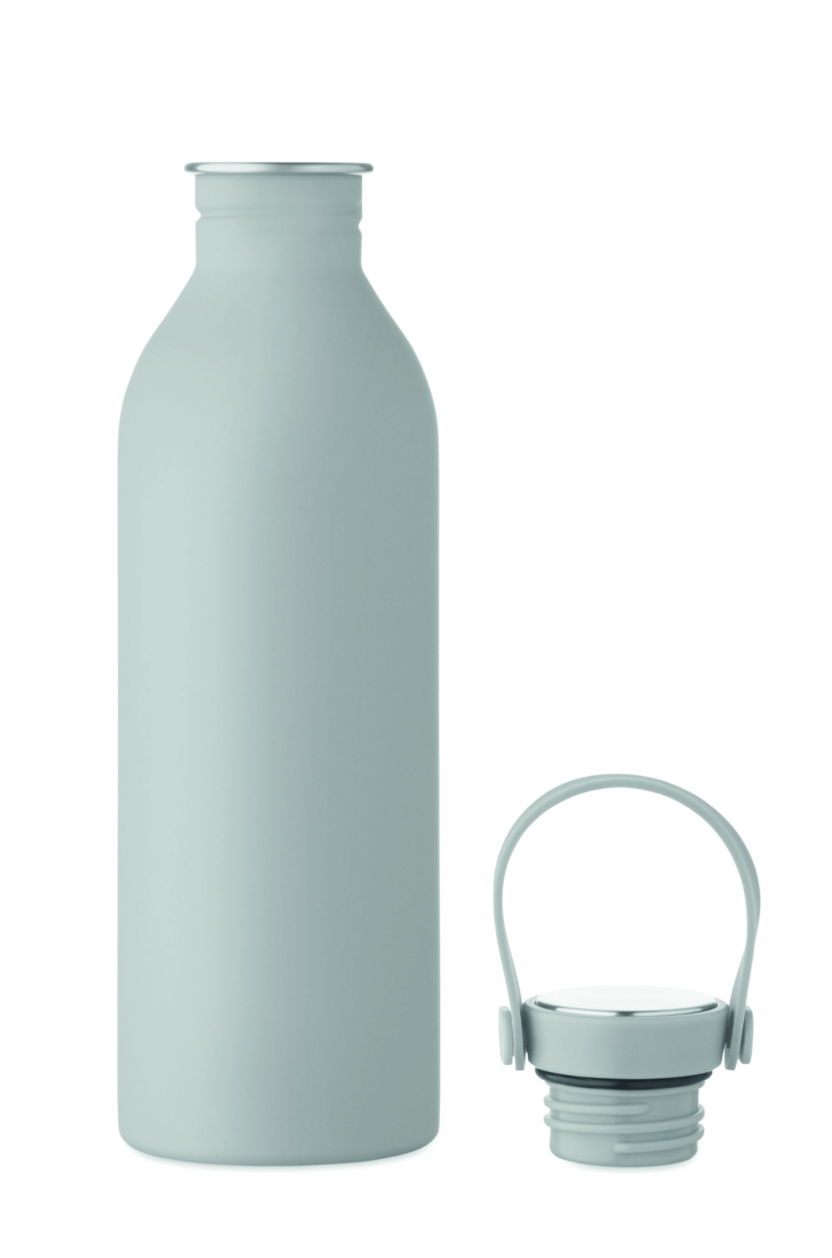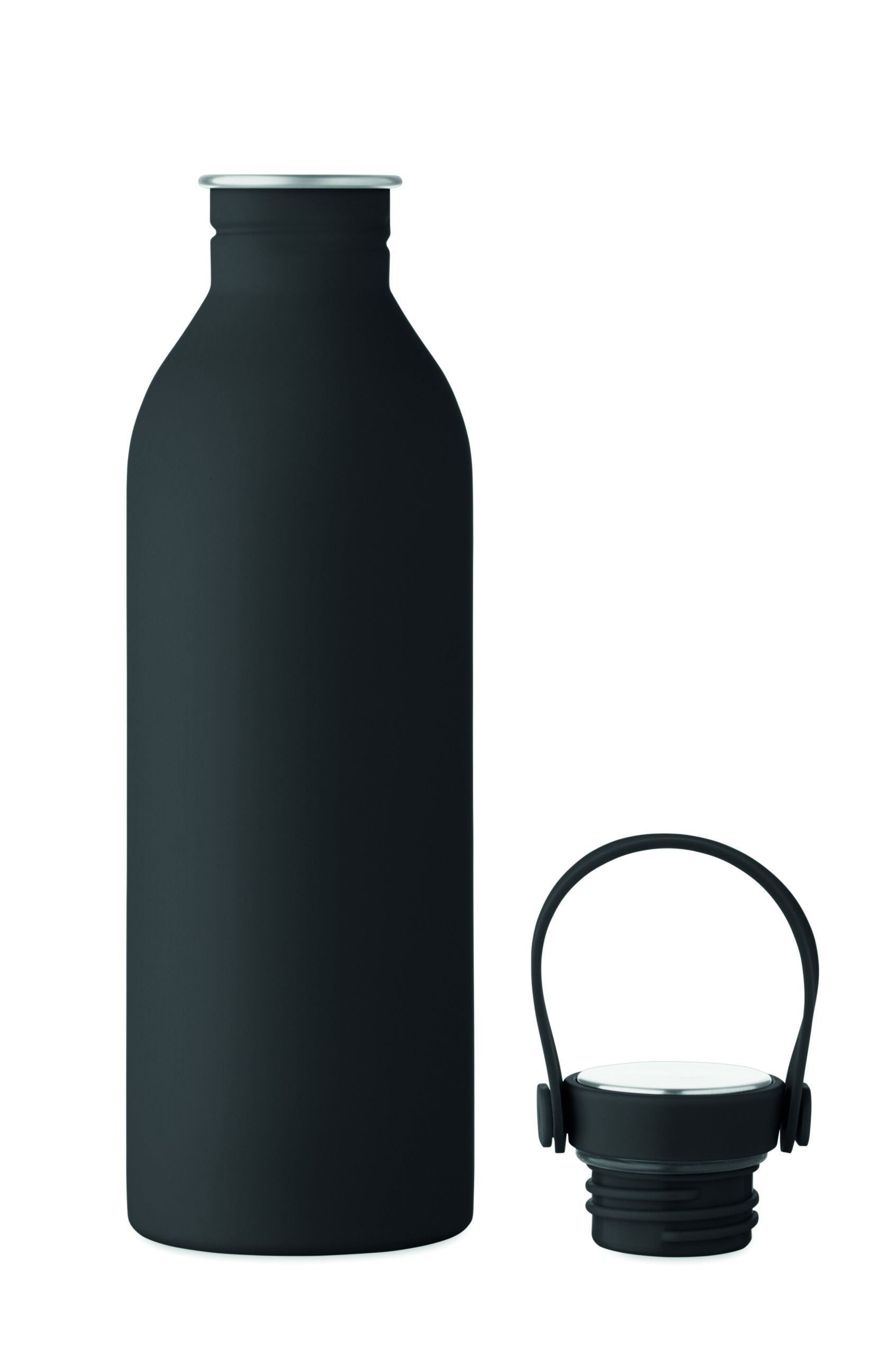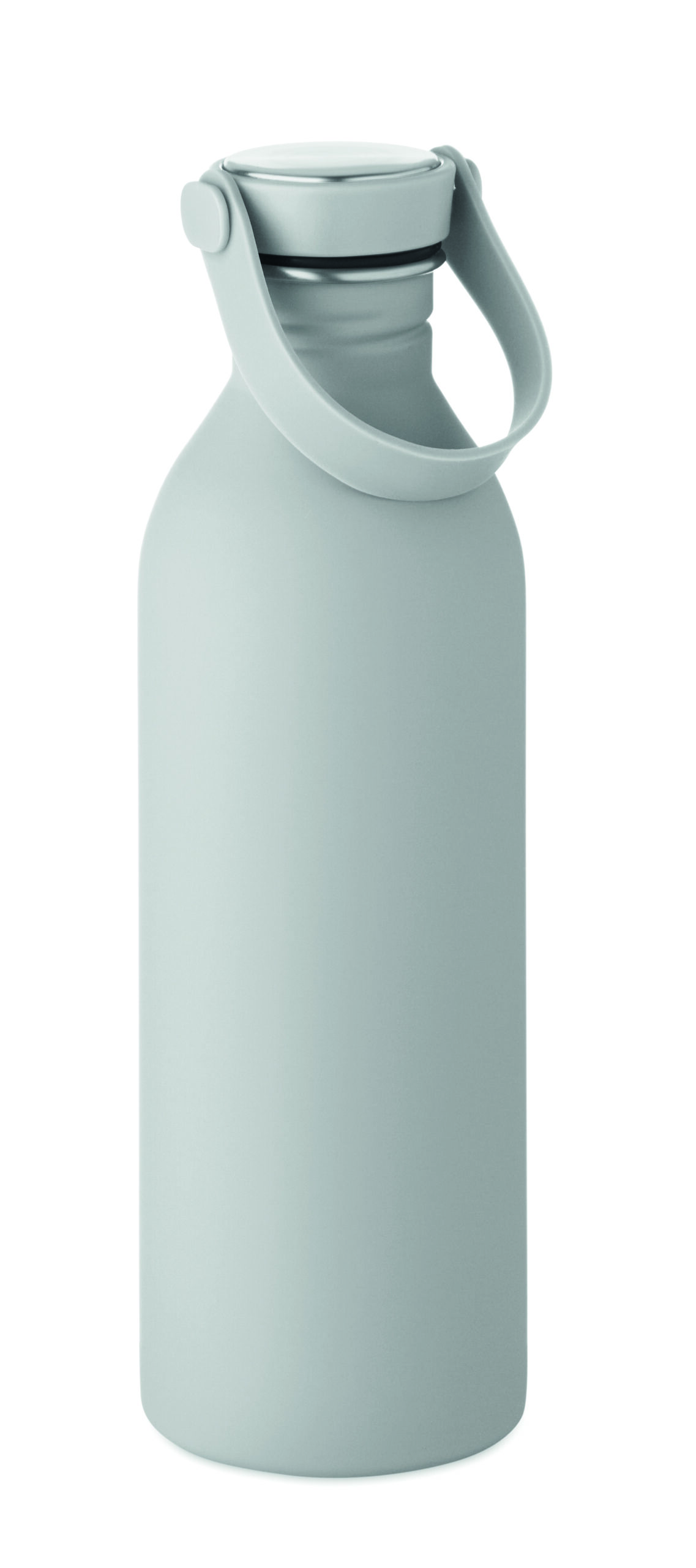 Jednościenna butelka 90% stal nierdzewna z recyklingu 10% stal nierdzewna. Gumowe wykończenie. Pokrywka z PP i SS sylikonowy uchwyt. 500 ml. Butelka jednościenna, może występować przenoszenie ciepła.