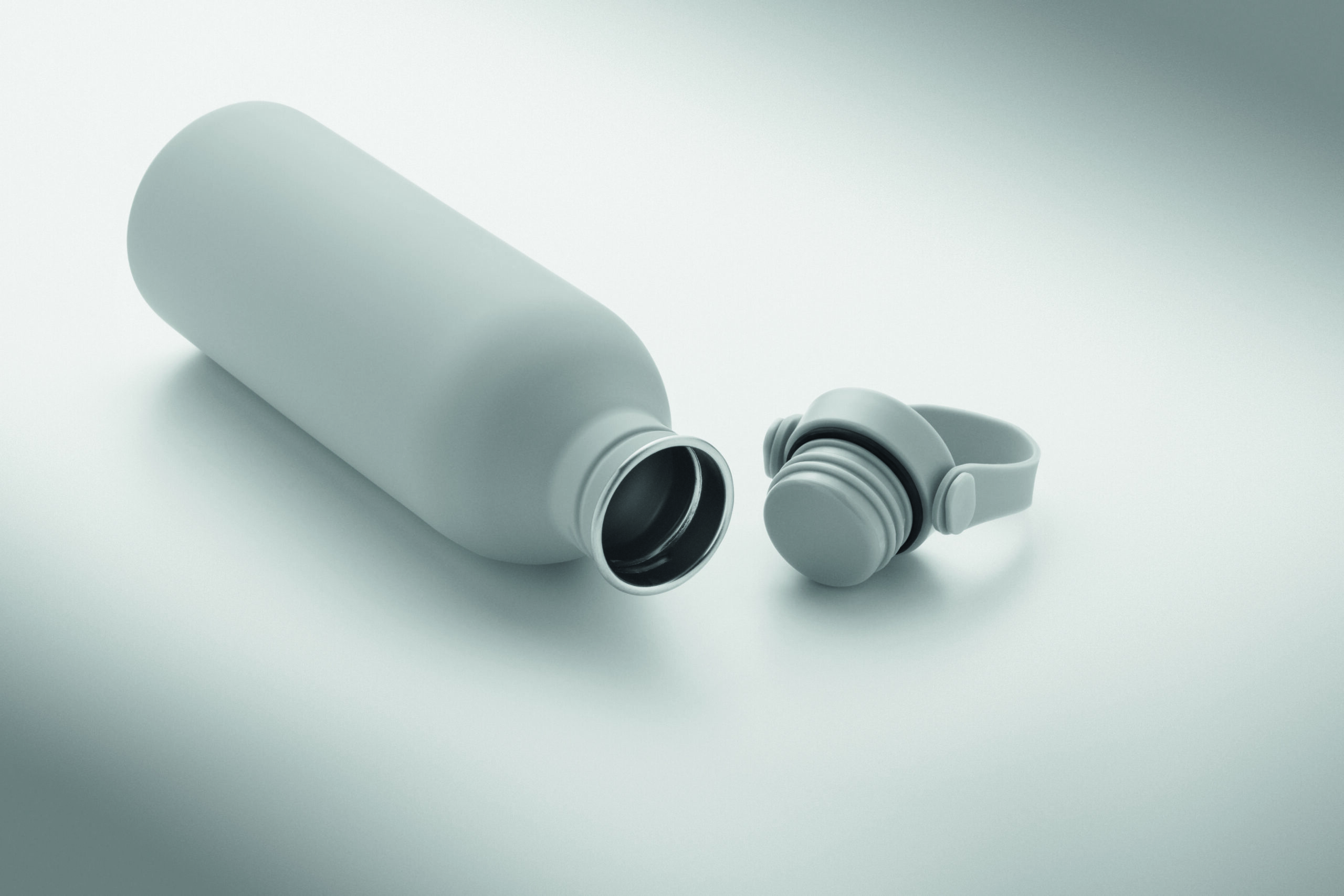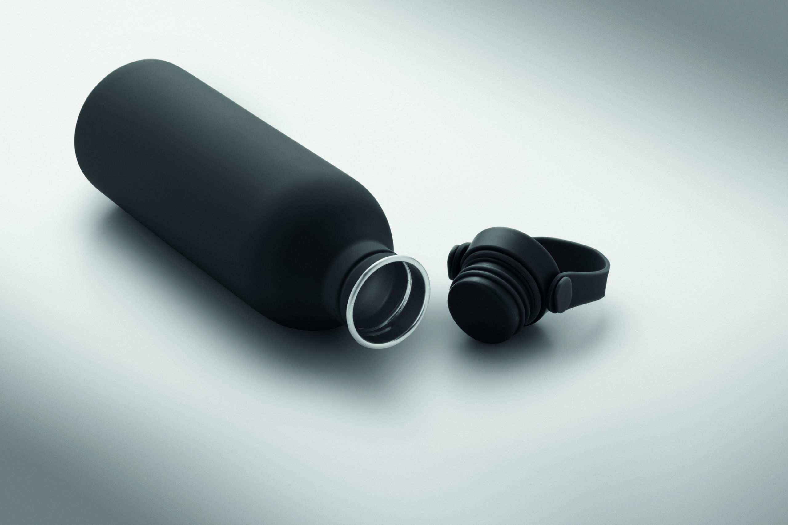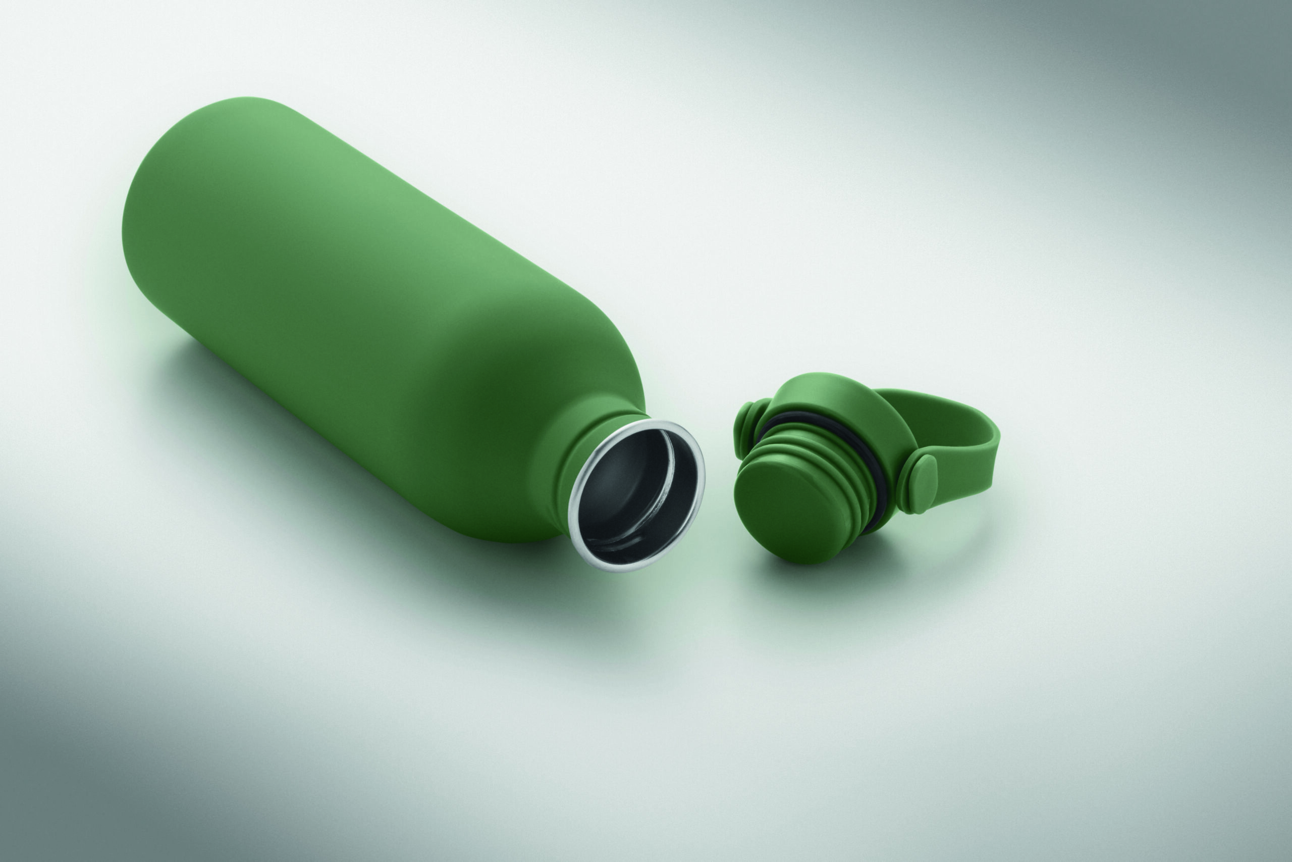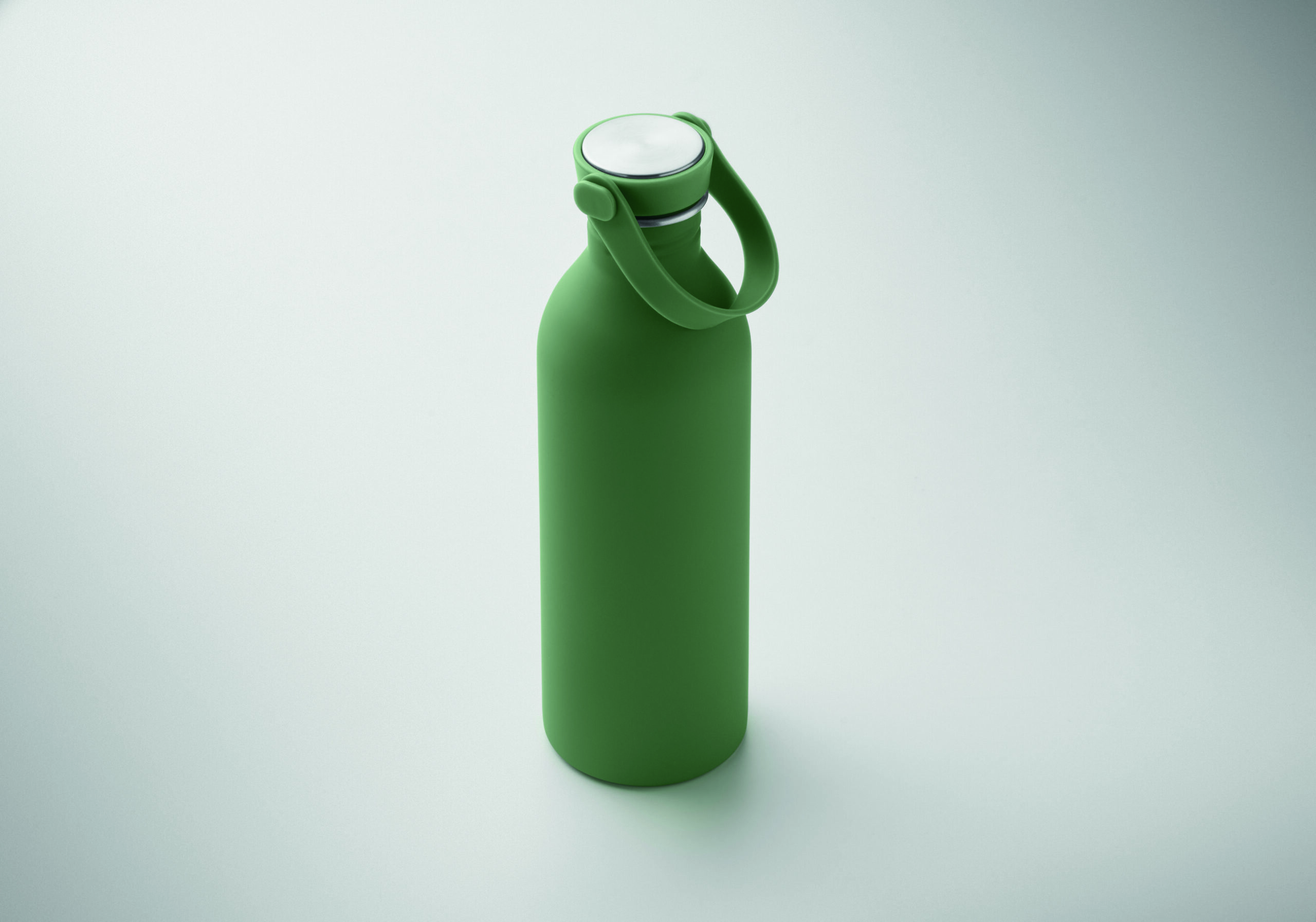 Jednościenna butelka 90% stal nierdzewna z recyklingu 10% stal nierdzewna. Gumowe wykończenie. Pokrywka z PP i SS sylikonowy uchwyt. 500 ml. Butelka jednościenna, może występować przenoszenie ciepła.