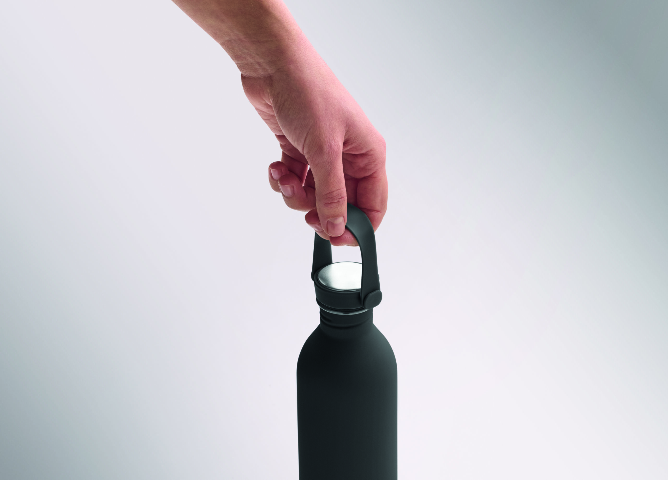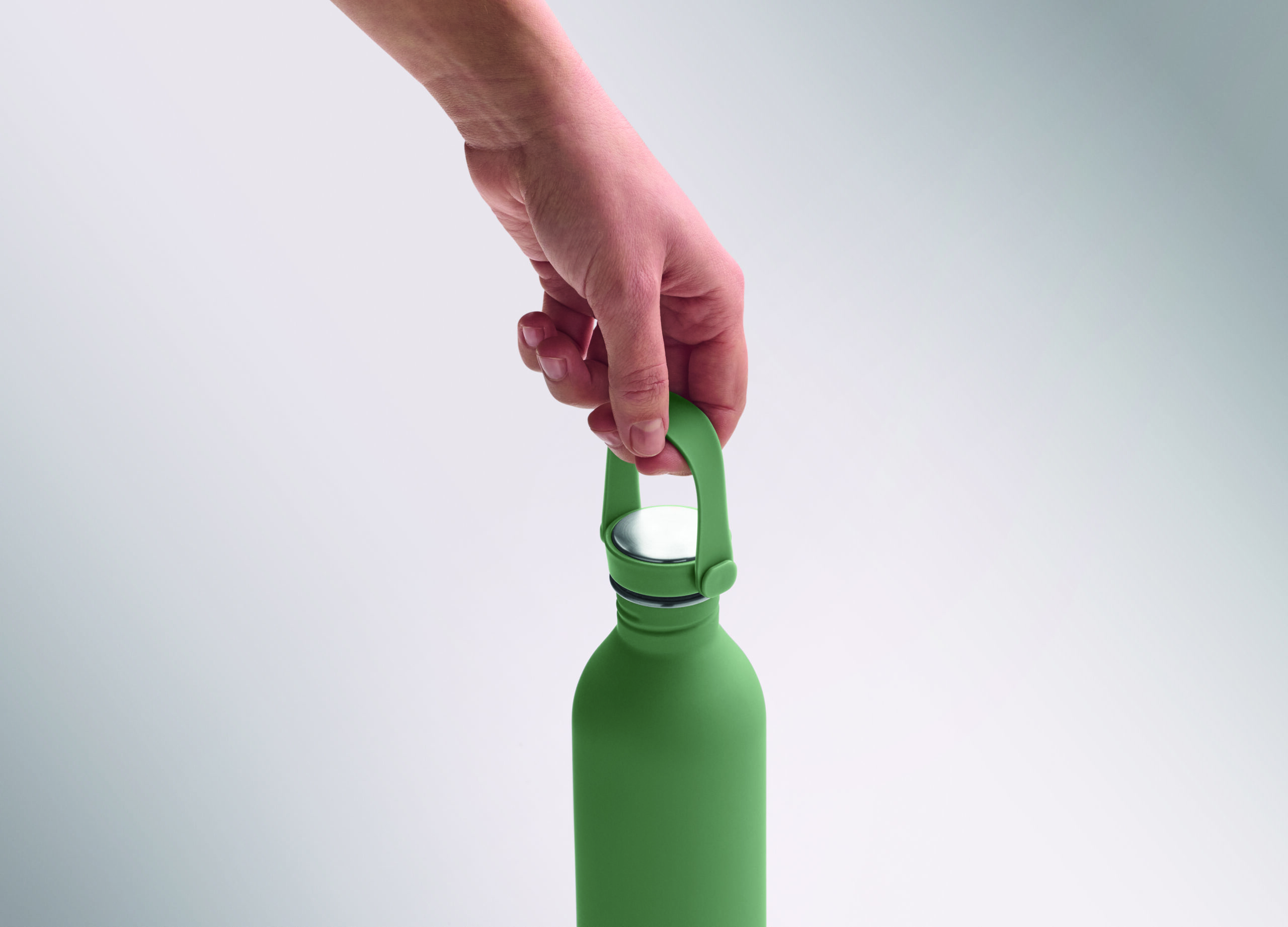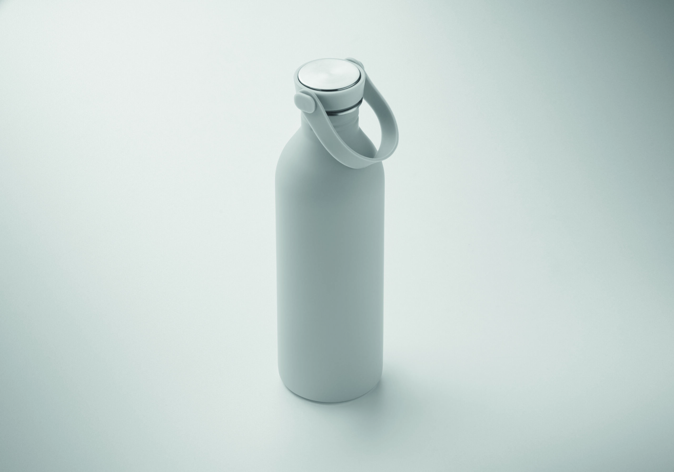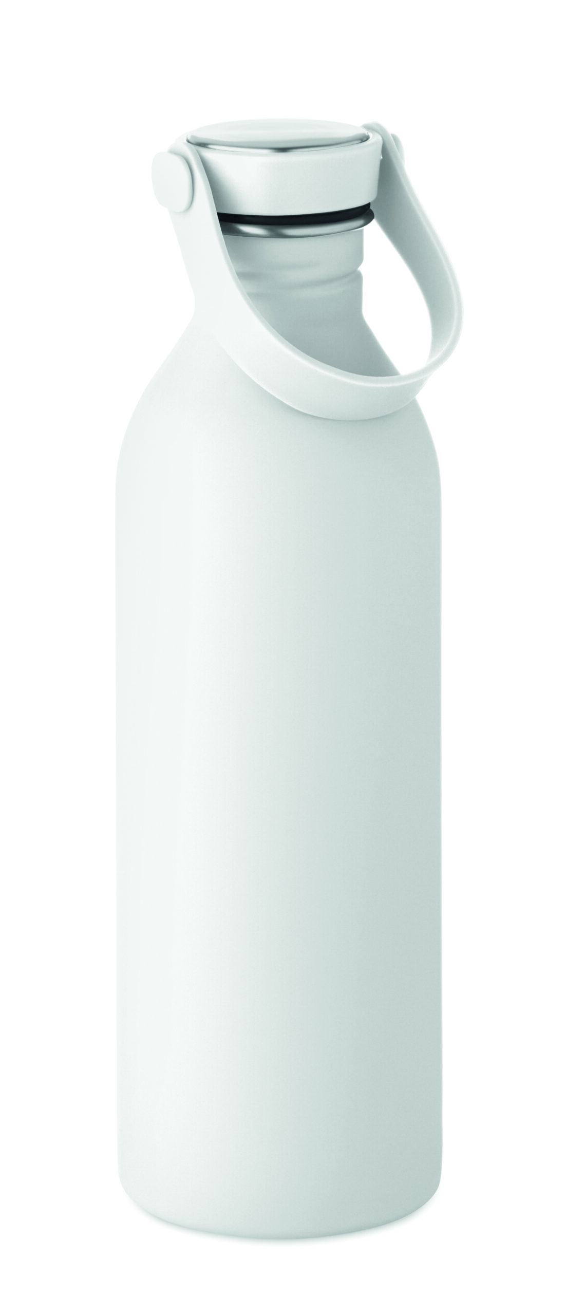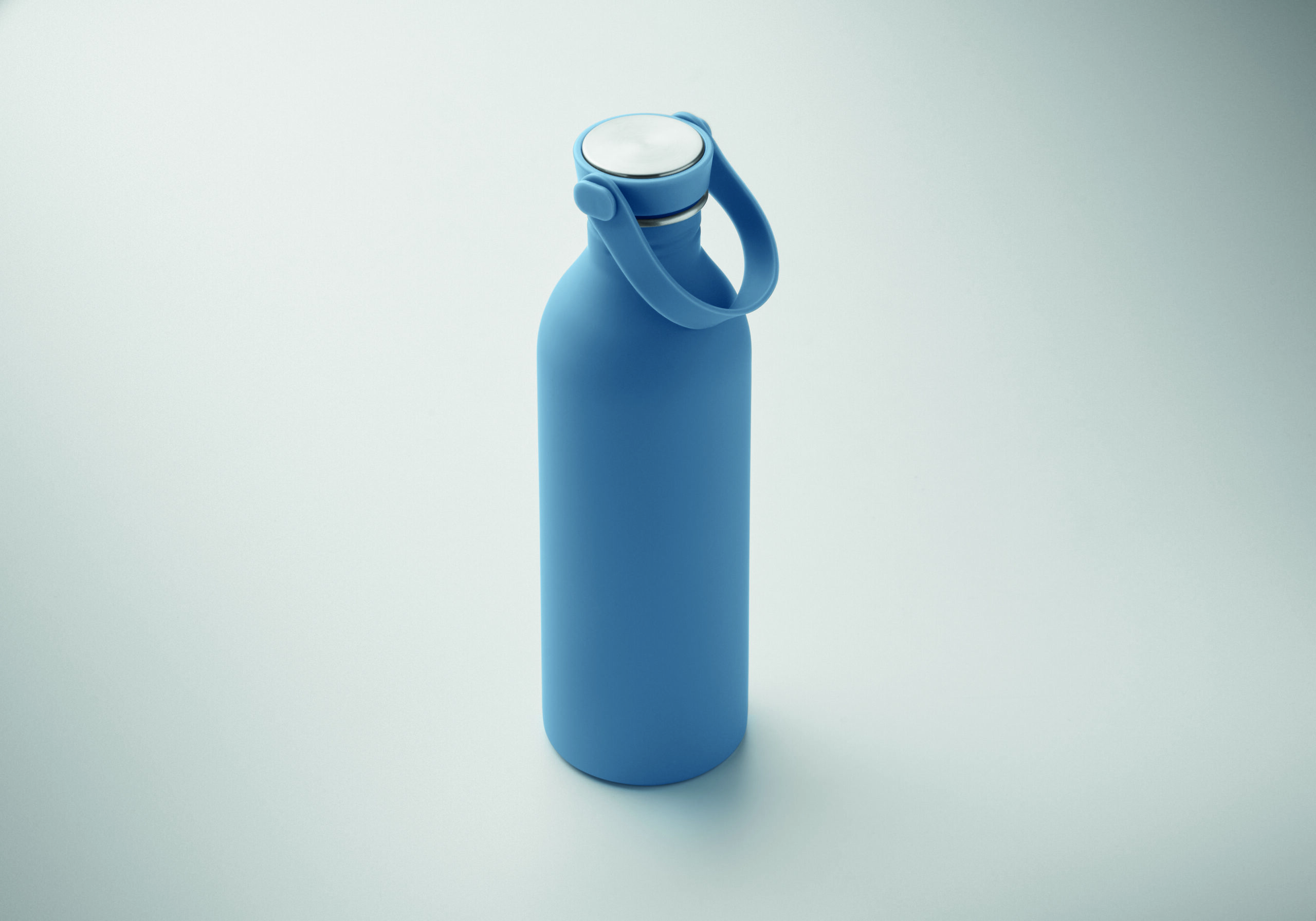 Jednościenna butelka 90% stal nierdzewna z recyklingu 10% stal nierdzewna. Gumowe wykończenie. Pokrywka z PP i SS sylikonowy uchwyt. 500 ml. Butelka jednościenna, może występować przenoszenie ciepła.