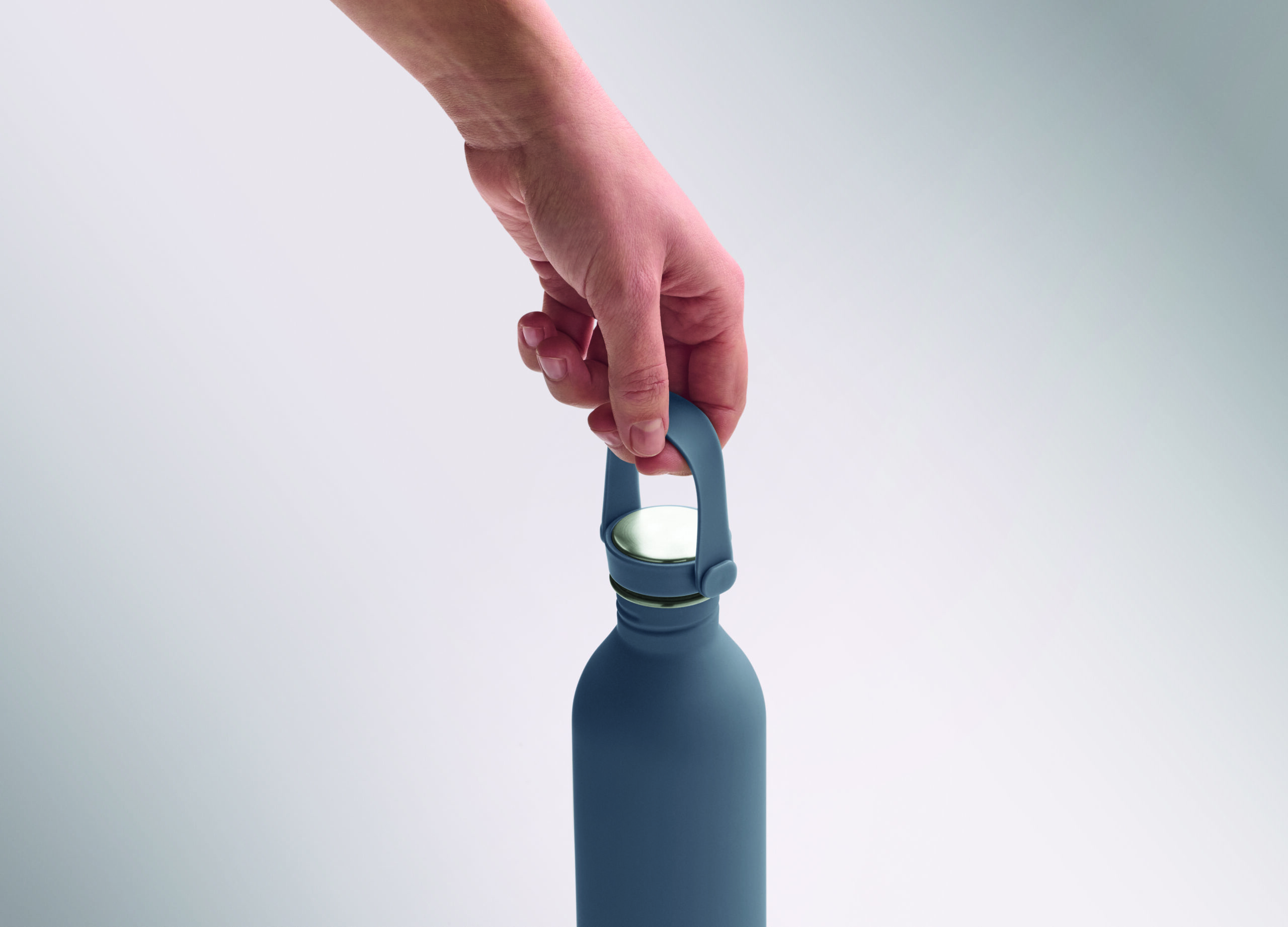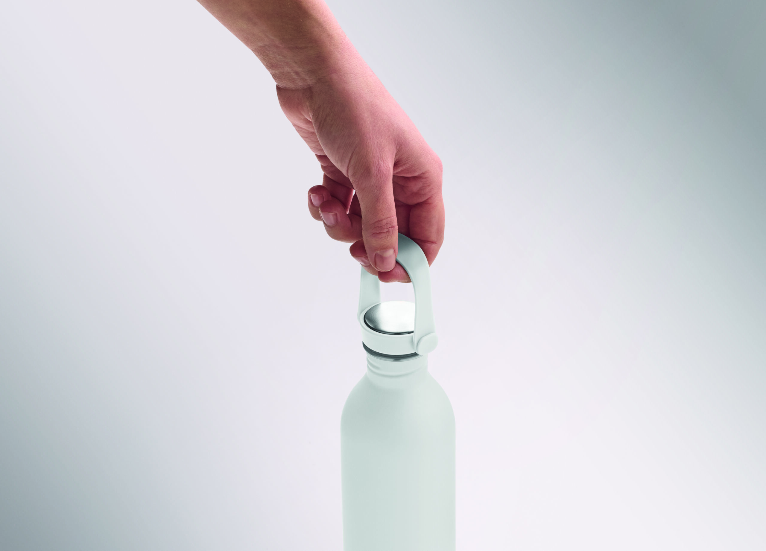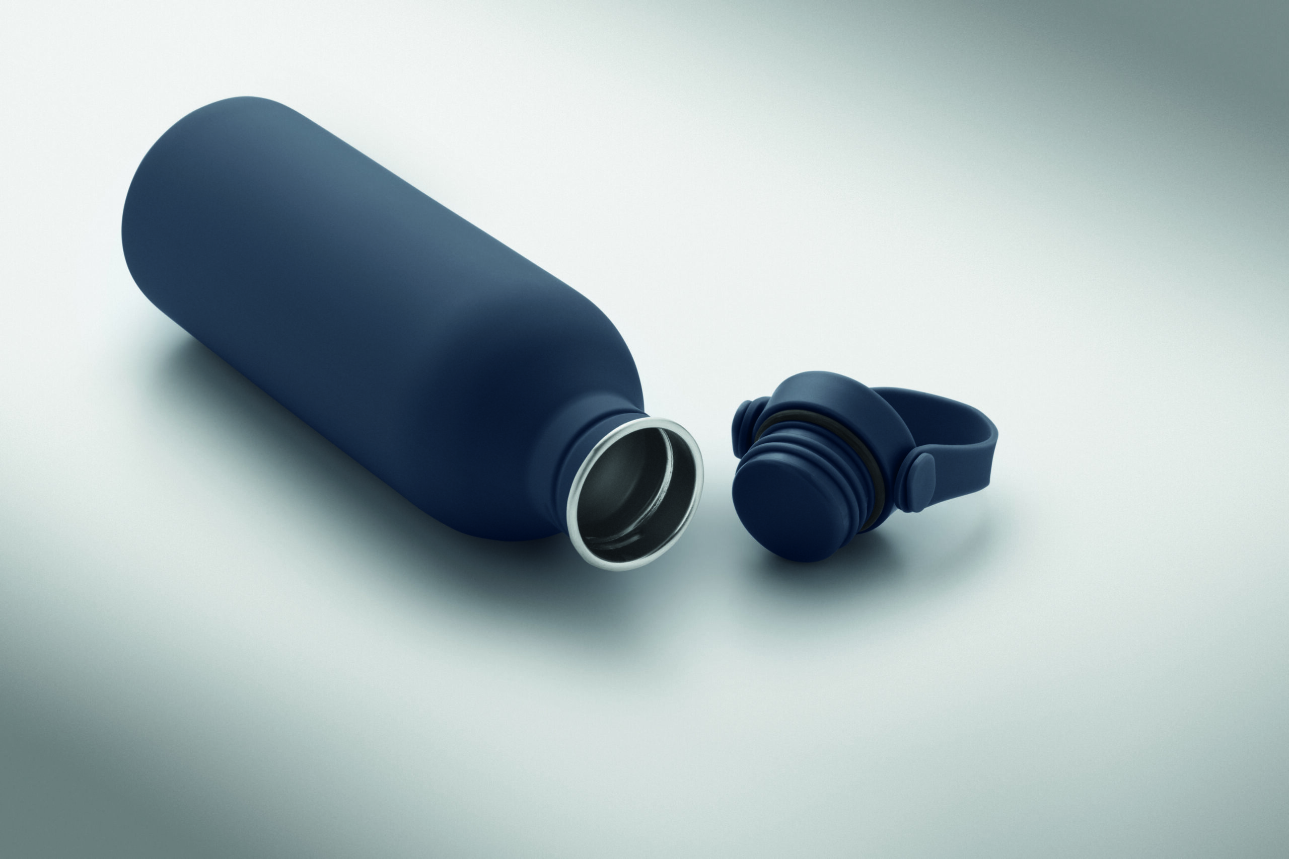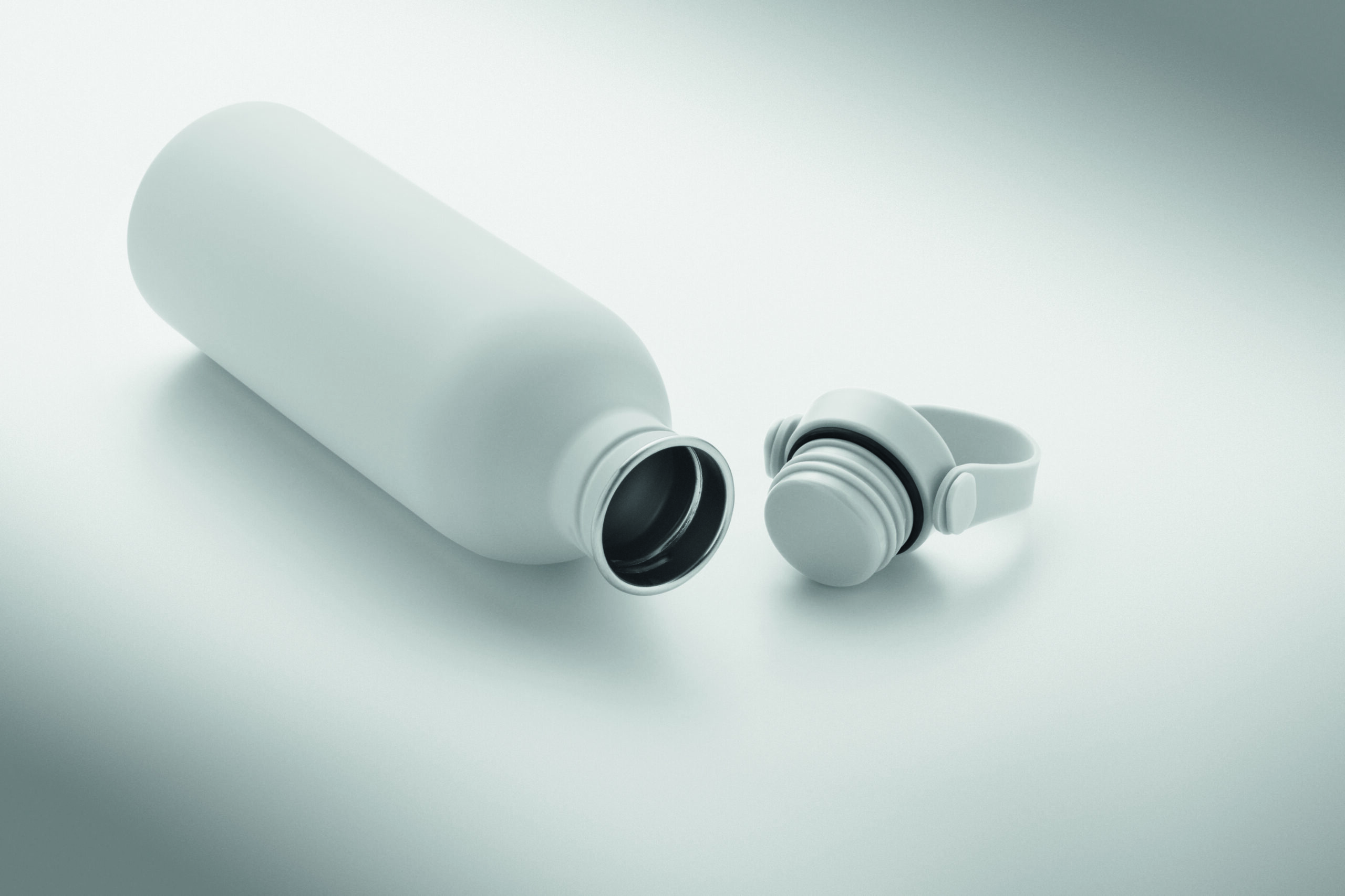 Jednościenna butelka 90% stal nierdzewna z recyklingu 10% stal nierdzewna. Gumowe wykończenie. Pokrywka z PP i SS sylikonowy uchwyt. 500 ml. Butelka jednościenna, może występować przenoszenie ciepła.