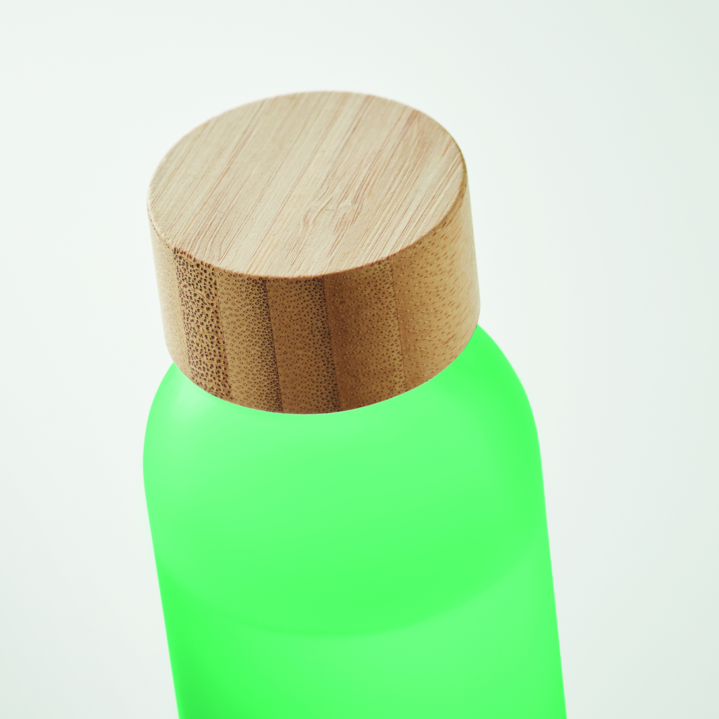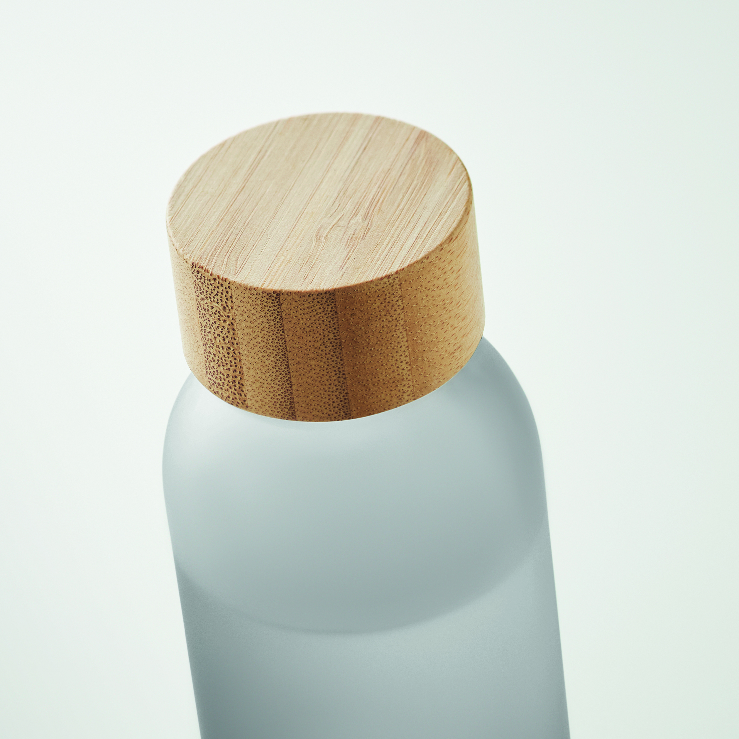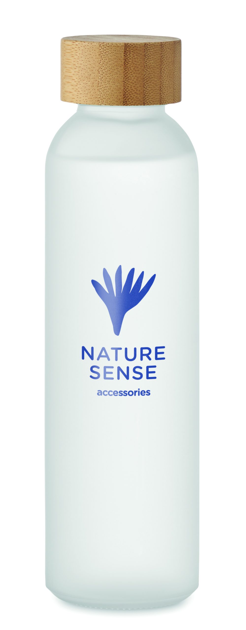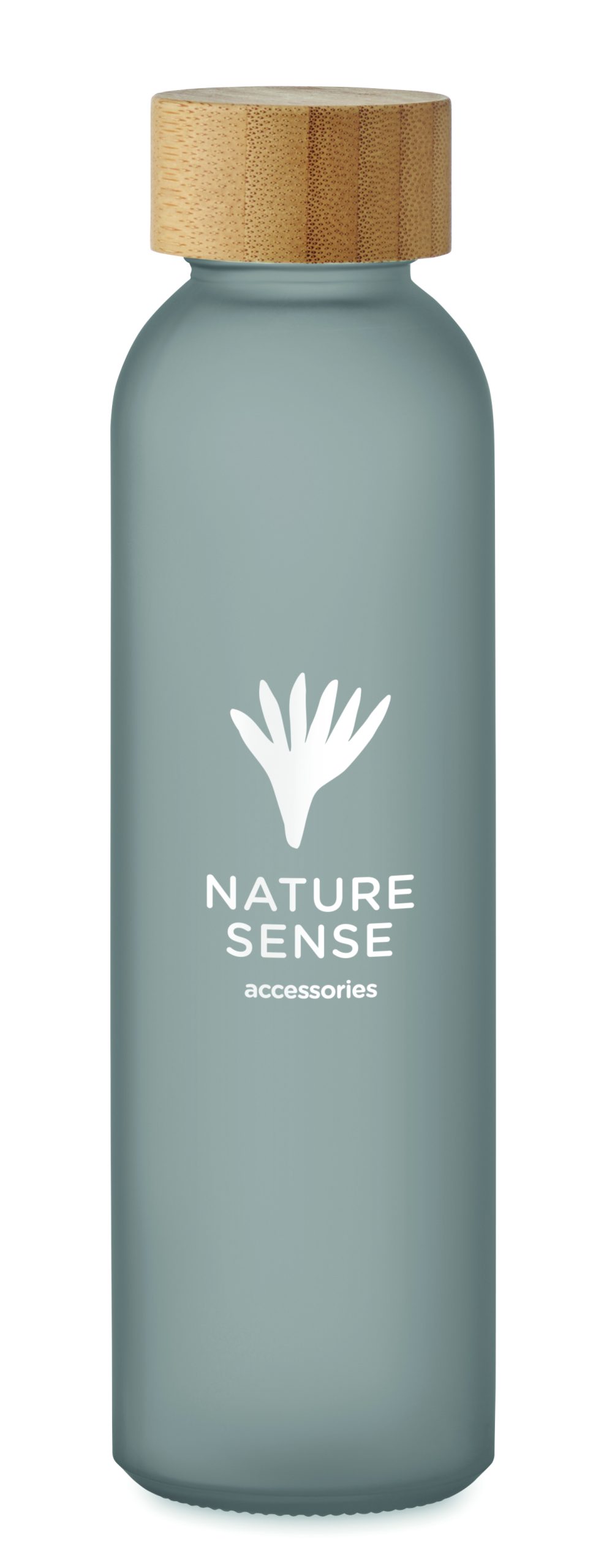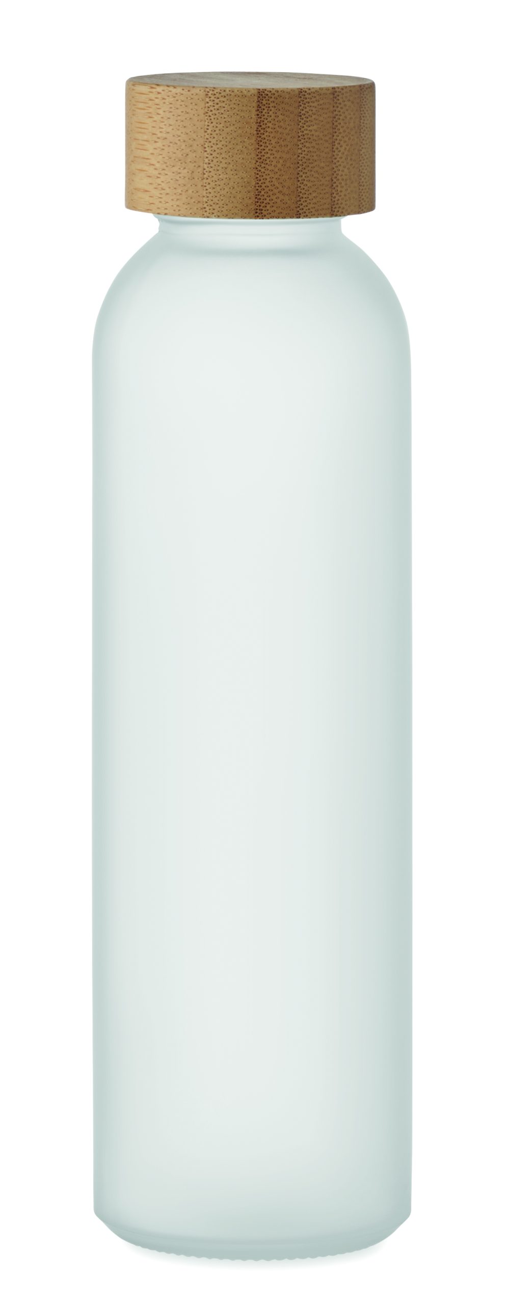 Szklana butelka z matowym wykończeniem i bambusową zakrętką. Szczelna. Pojemność: 500 ml. Bambus jest produktem naturalnym, dlatego mogą występować niewielkie różnice w kolorze i rozmiarze poszczególnych elementów, co może mieć wpływ na ostateczny efekt zdobienia.