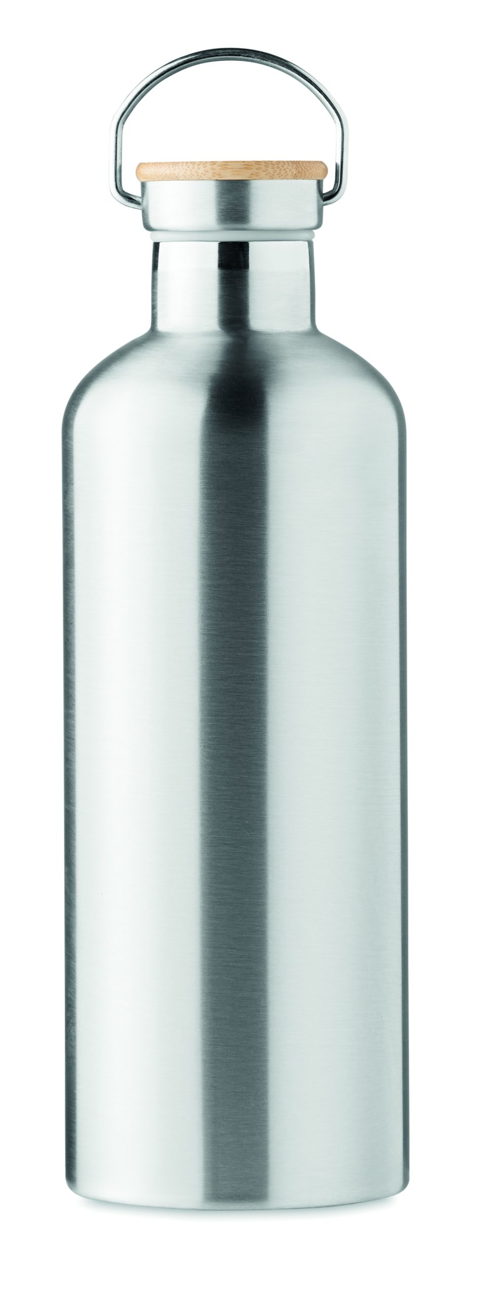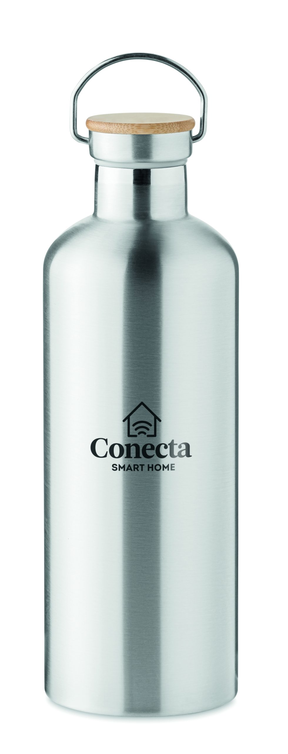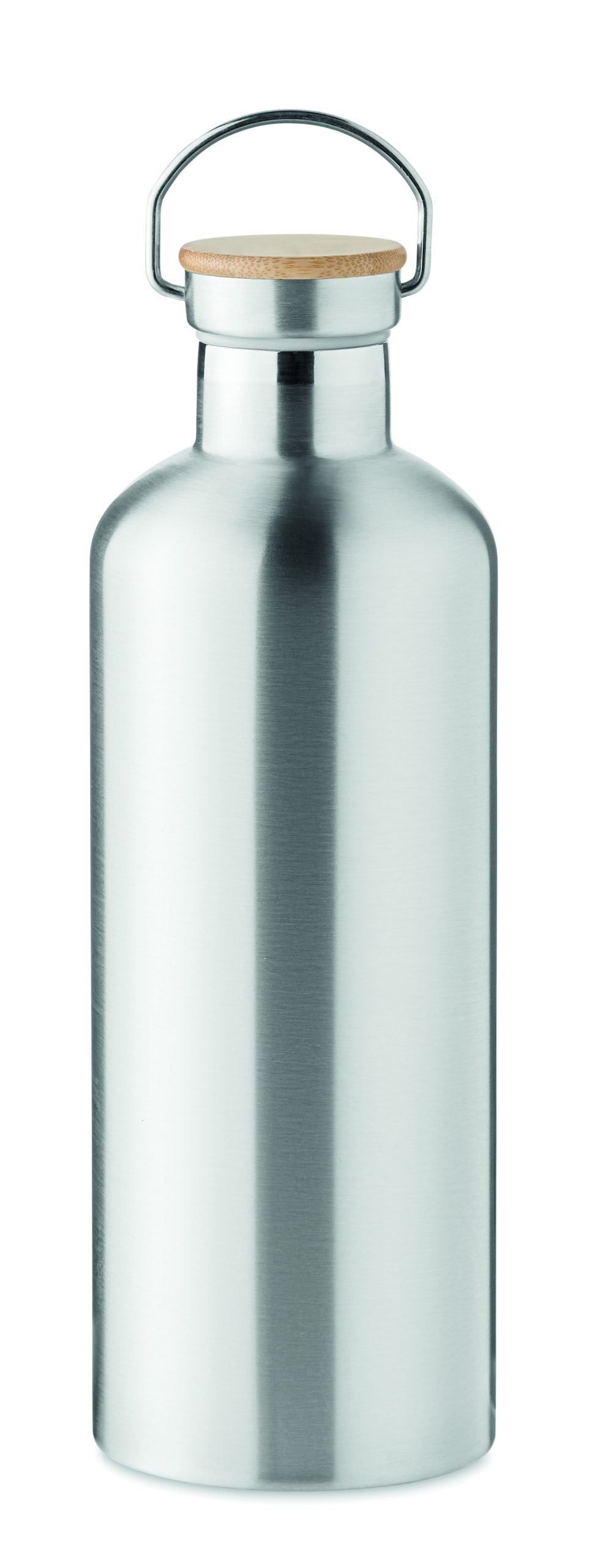 Dwuścienna, próżniowa butelka ze stali nierdzewnej, z bambusową zakrętką i uchwytem. Pojemność: 1500 ml. Szczelna. Bambus jest produktem naturalnym, dlatego mogą wystąpić nieznaczne różnice w kolorze, wzorze i rozmiarze.
