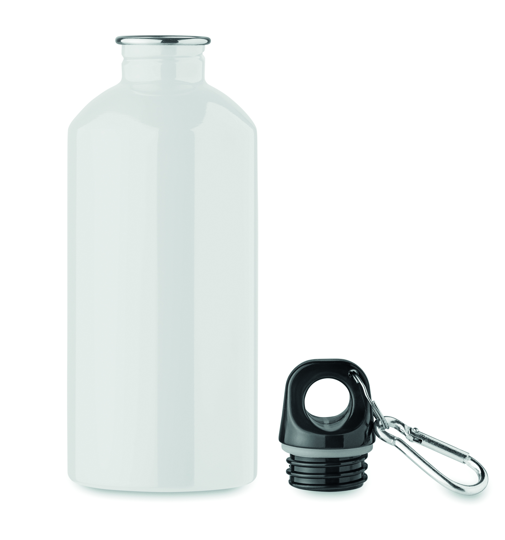 Butelka z pojedynczą ścianką z recyklingowanej stali nierdzewnej (90% stali nierdzewnej z recyklingu i 10% stali nierdzewnej) z karabińczykiem. 500 ml. Nadruk sublimacyjny dostępny tylko w kolorze białym. Szczelna. Ponieważ jest to kubek z pojedynczą ścianką, może dochodzić do wymiany ciepła.