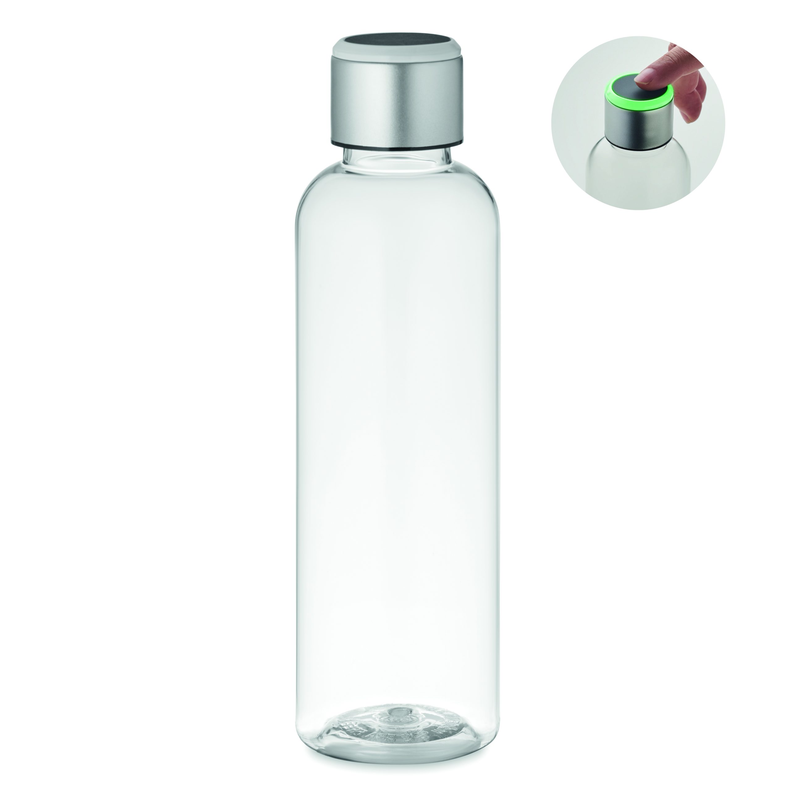 Butelka z Tritan™ z sensorem przypominającym. Światło czujnika świeci co godzinę, przypominając o potrzebie nawodnienia. Zawiera 1 baterię CR2032. Pojemność: 500 ml.