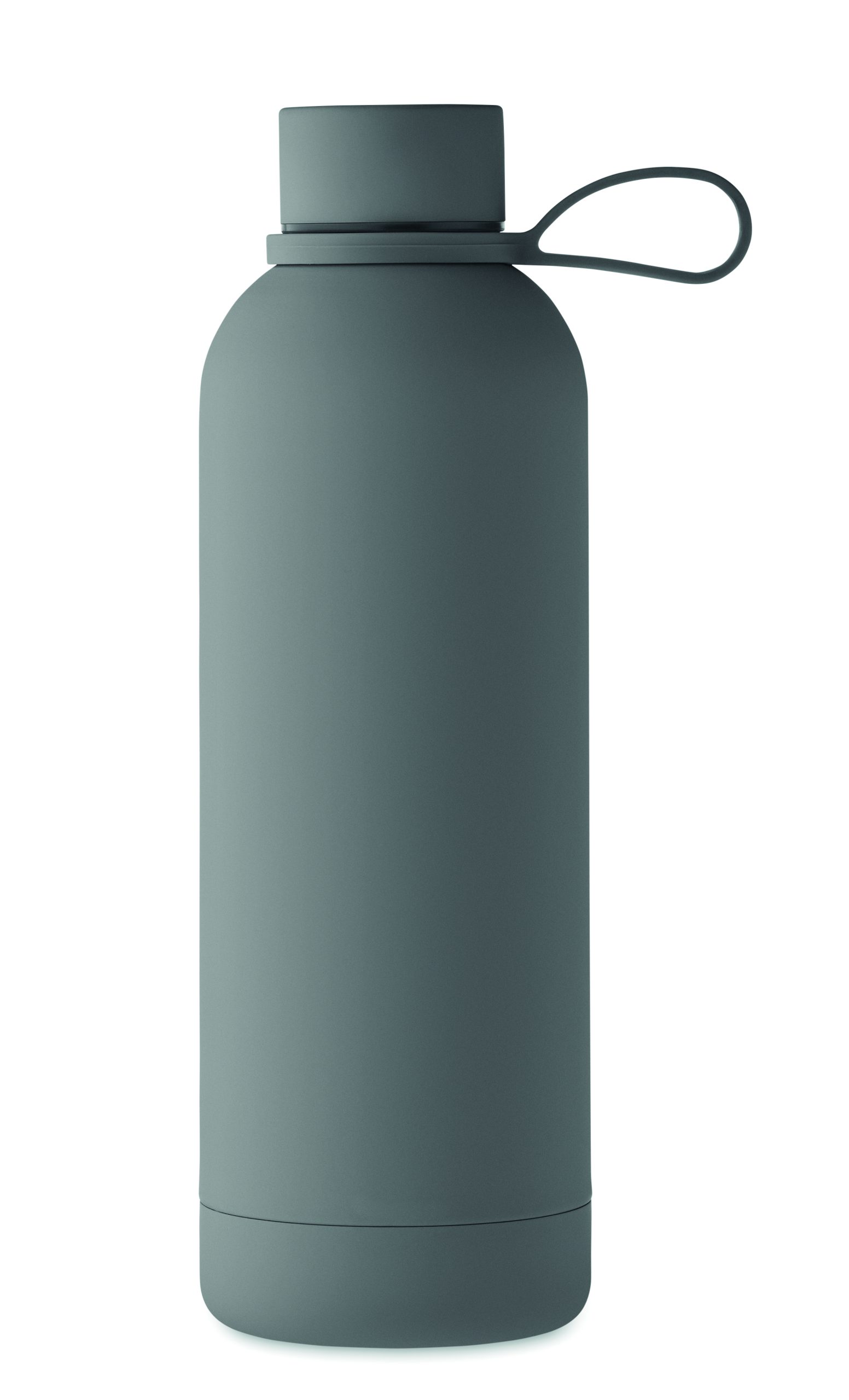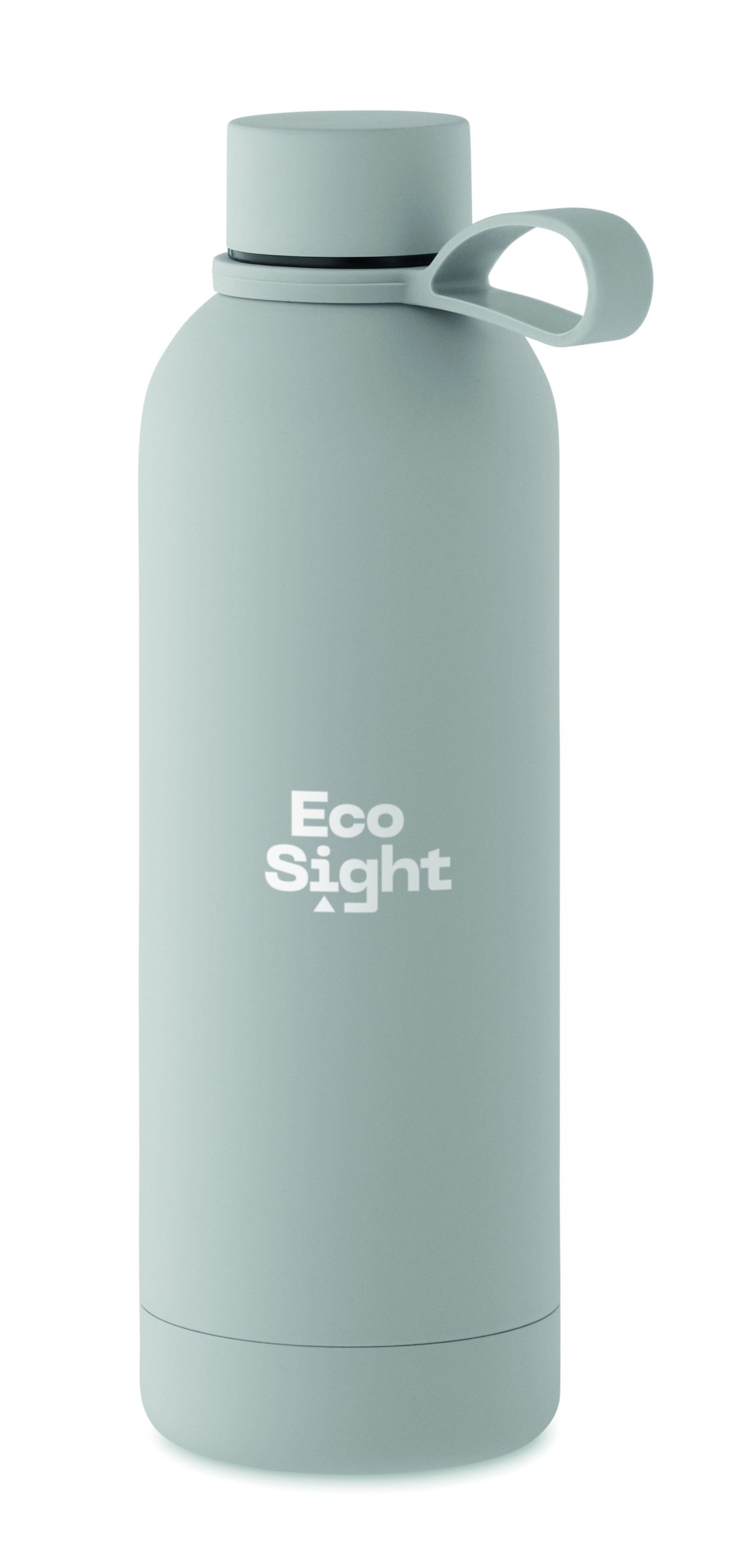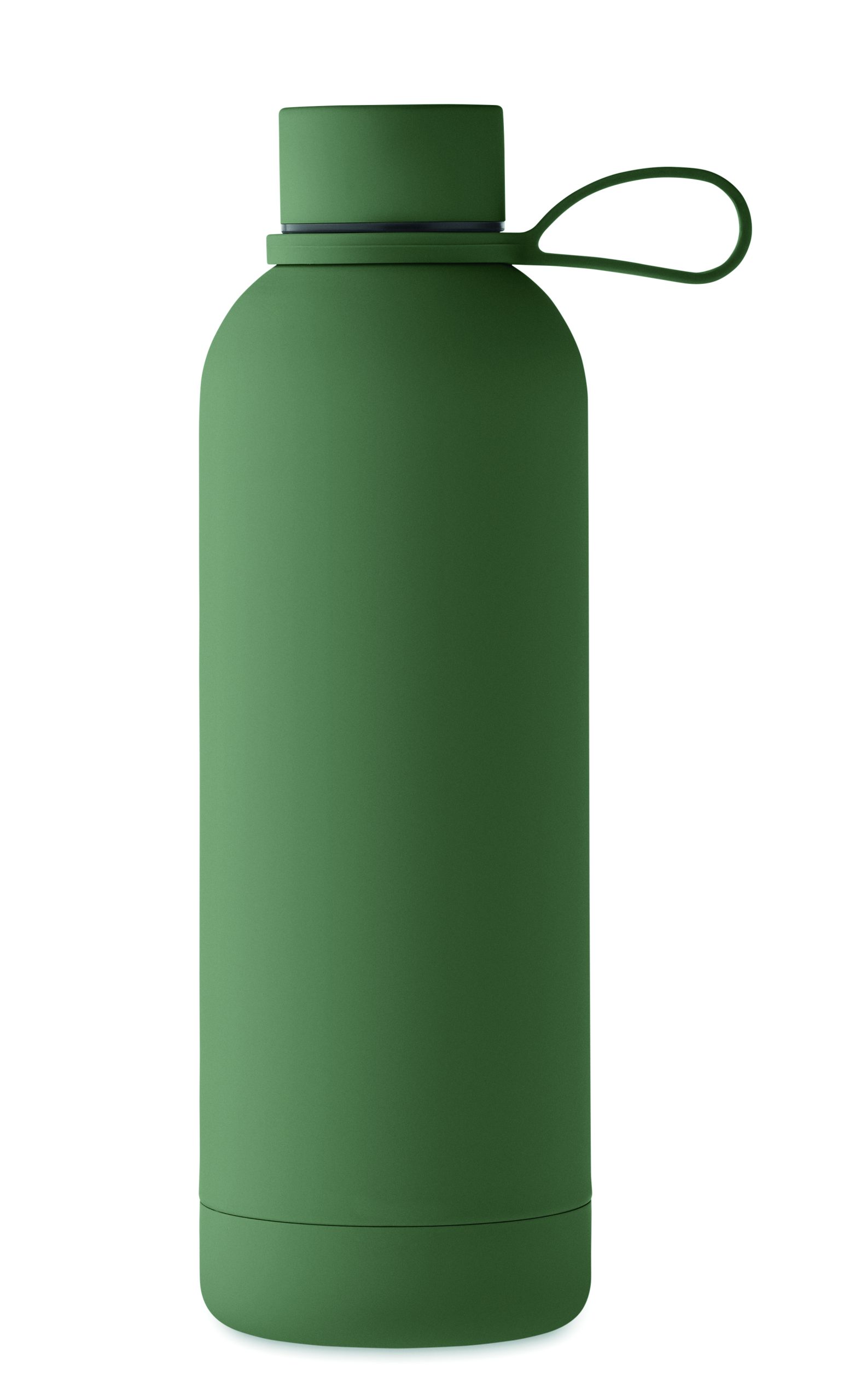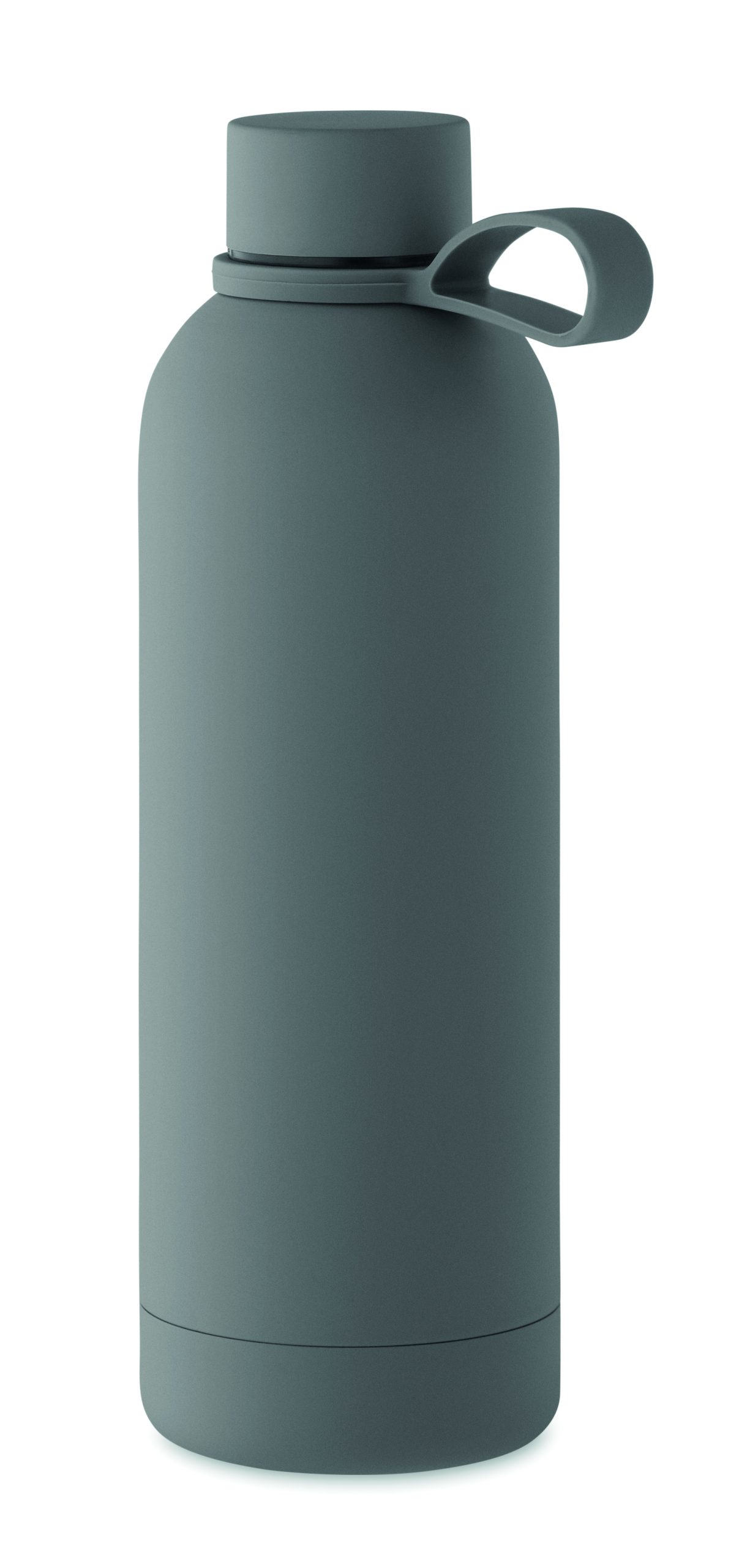 Dwuścienna butelka z izolacją próżniową z recyklingowanej stali nierdzewnej (90% z recyklingowanej stali nierdzewnej i 10% ze stali nierdzewnej) z gumowym wykończeniem i silikonowym uchwytem. Pojemność: 500 ml.