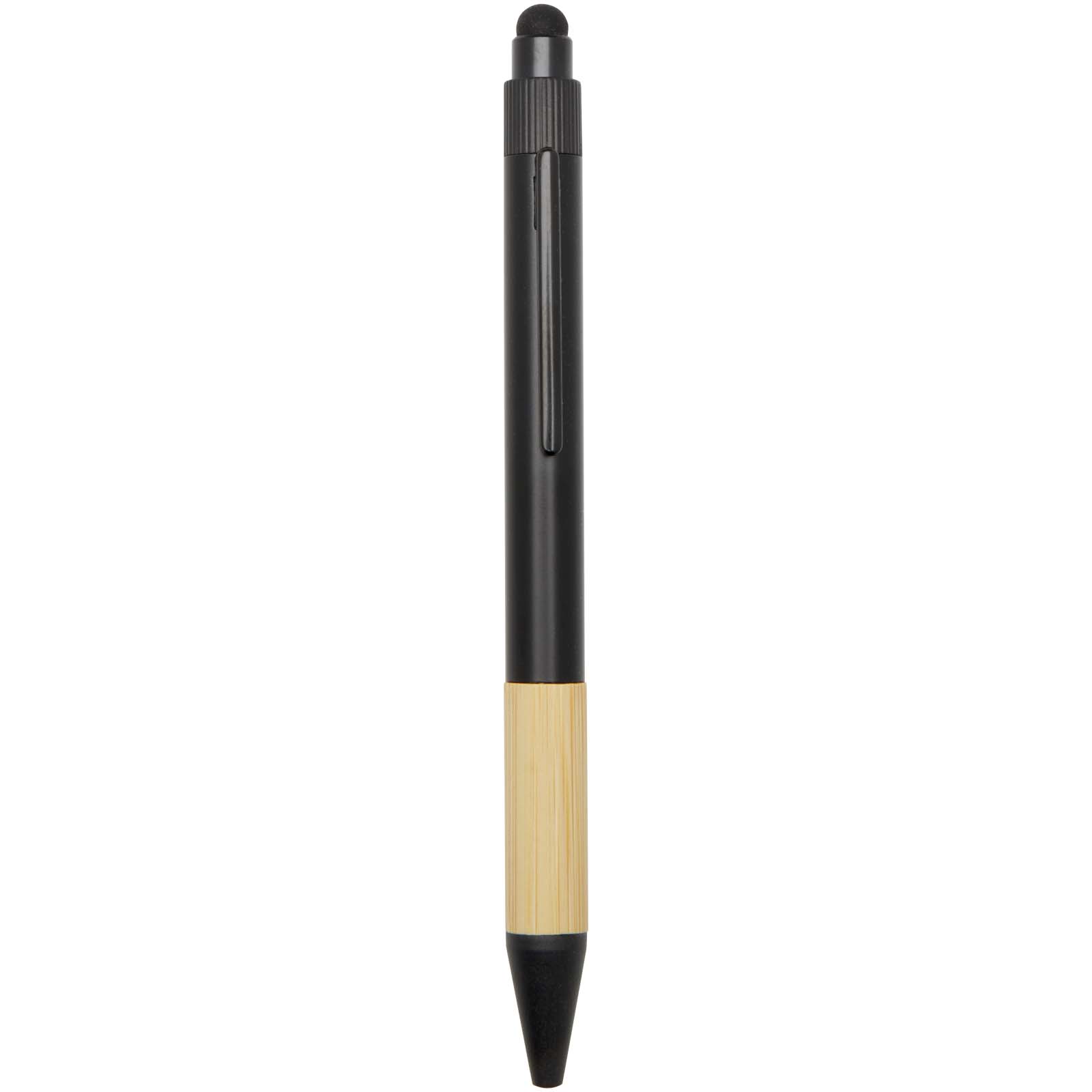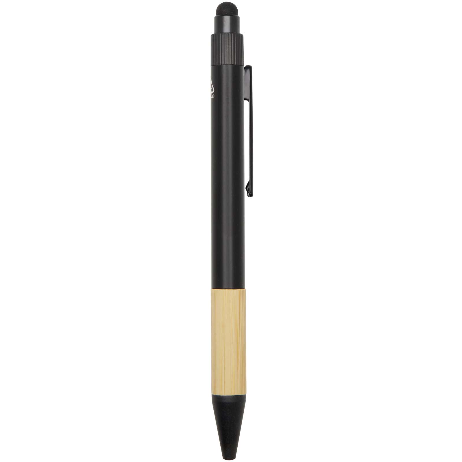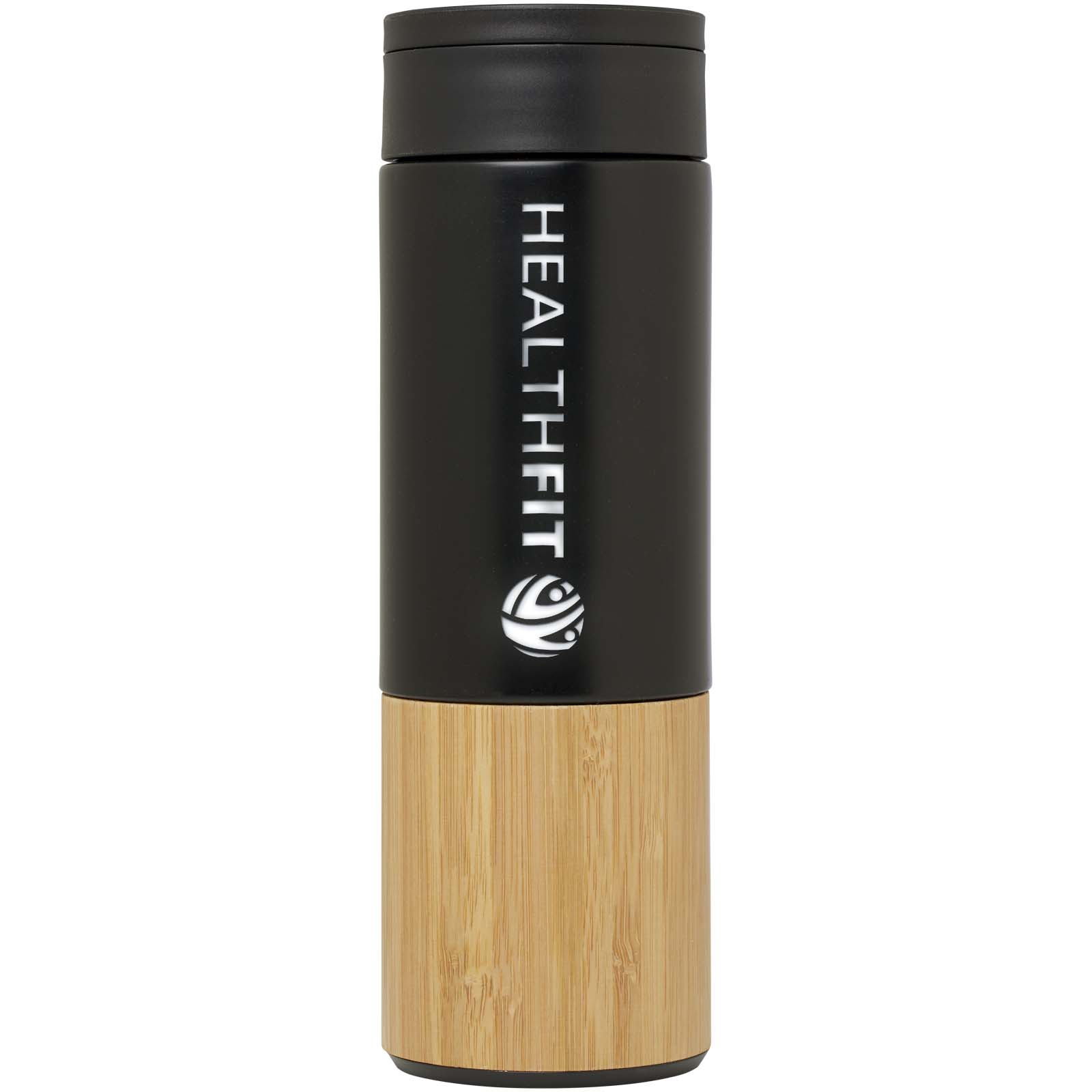 Carmen zestaw upominkowy zawierający notes A5 w twardej okładce, długopis, butelkę na wodę i parasolkę. Notatnik ma czarne elastyczne zamknięcie i tasiemkową zakładkę oraz 80 kremowych kartek w linie z papieru o gramaturze 80 g/m². Okładka notesu wraz z bambusowym półkolem pełni funkcję stojaka na telefon. Długopis wykonany z aluminium pochodzącego z recyklingu z certyfikatem RCS, z czarną powłoką natryskową i bambusowym uchwytem. Tusz długopisu: Czarny. Żywotność: 1000 metrów. Butelka na wodę o pojemności 450 ml wykonana ze stali nierdzewnej z bambusowym dodatkiem w dolnej części. Tylko do mycia ręcznego. Wymiary butelki: 6,6 x 22,2 cm. 21-calowy parasol ma czaszę z czarnej tkaniny pongee, czarny metalowy trzon, czarne żebra z włókna szklanego i bambusową rączkę. Wymiary parasola: 28,3 x 5,5 cm. Wymiary pudełka upominkowego: 36 x 30 x 8 cm.