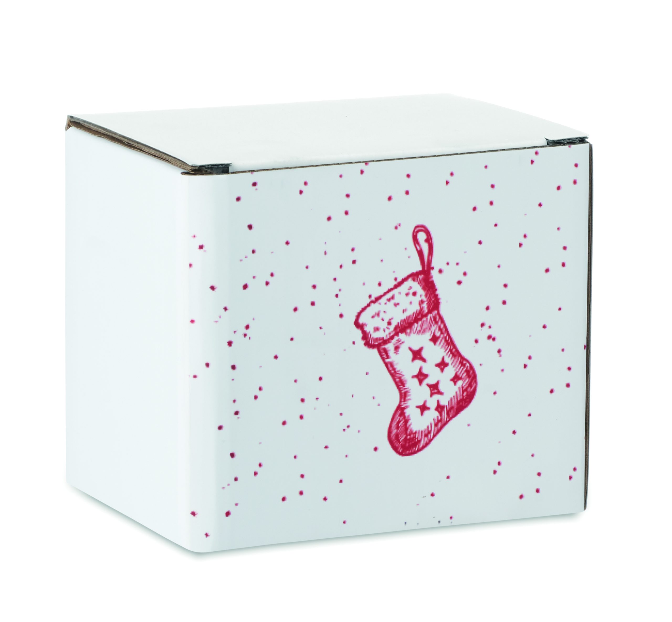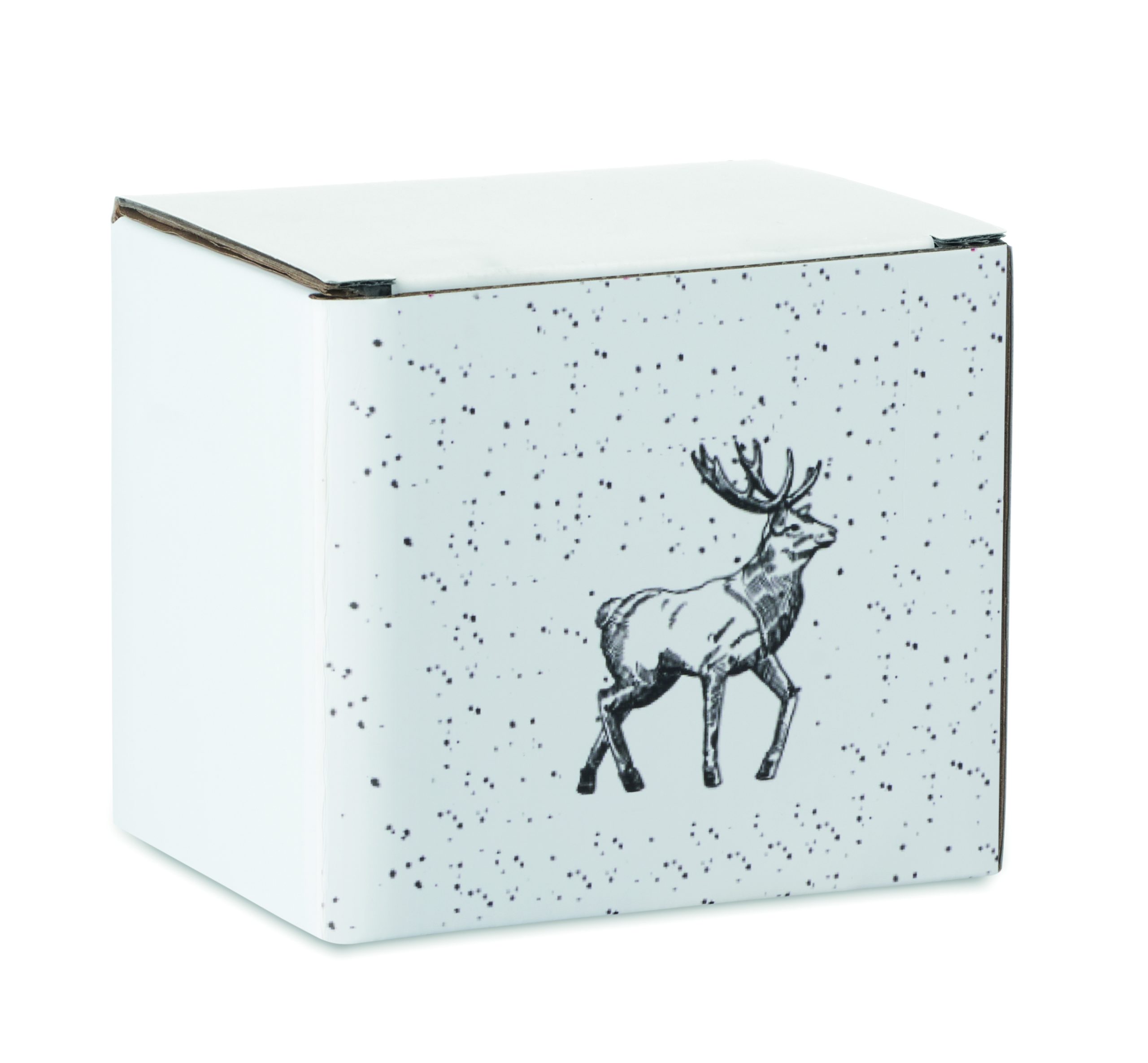 Kubek ceramiczny z sezonowym wzorem. Indywidualne opakowanie w pasującym kartonowym pudełku upominkowym. Pojemność: 300 ml.