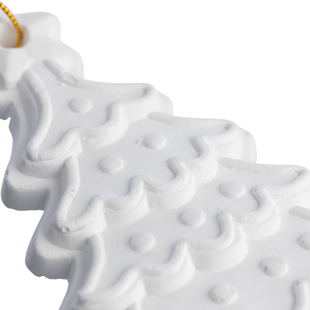 Zestaw do malowania, gipsowa figurka drzewka świątecznego, trzy farby i pędzel, sznurek do przymocowania, produkt wykonany z PS