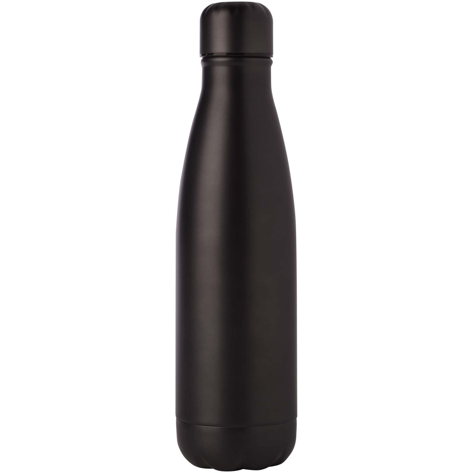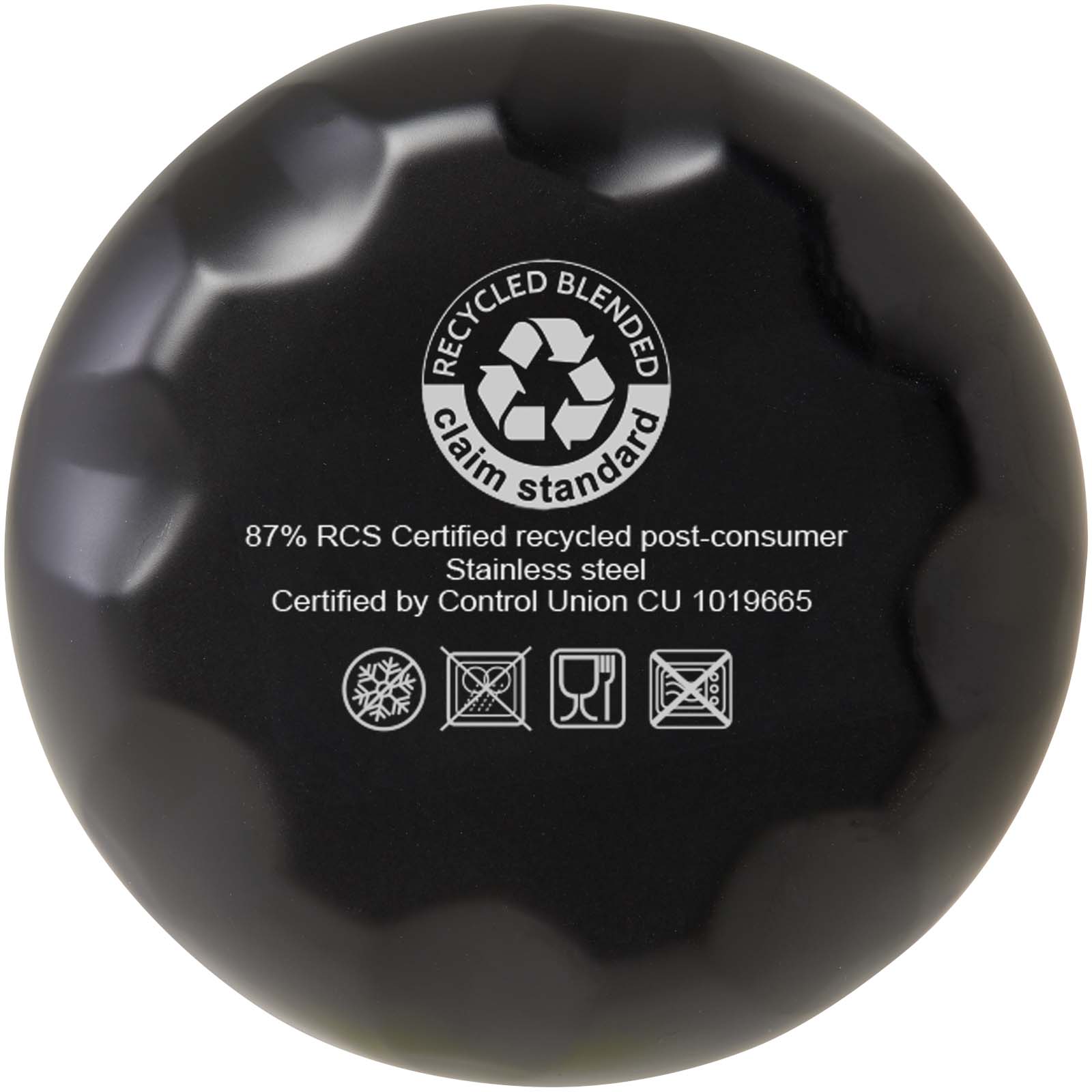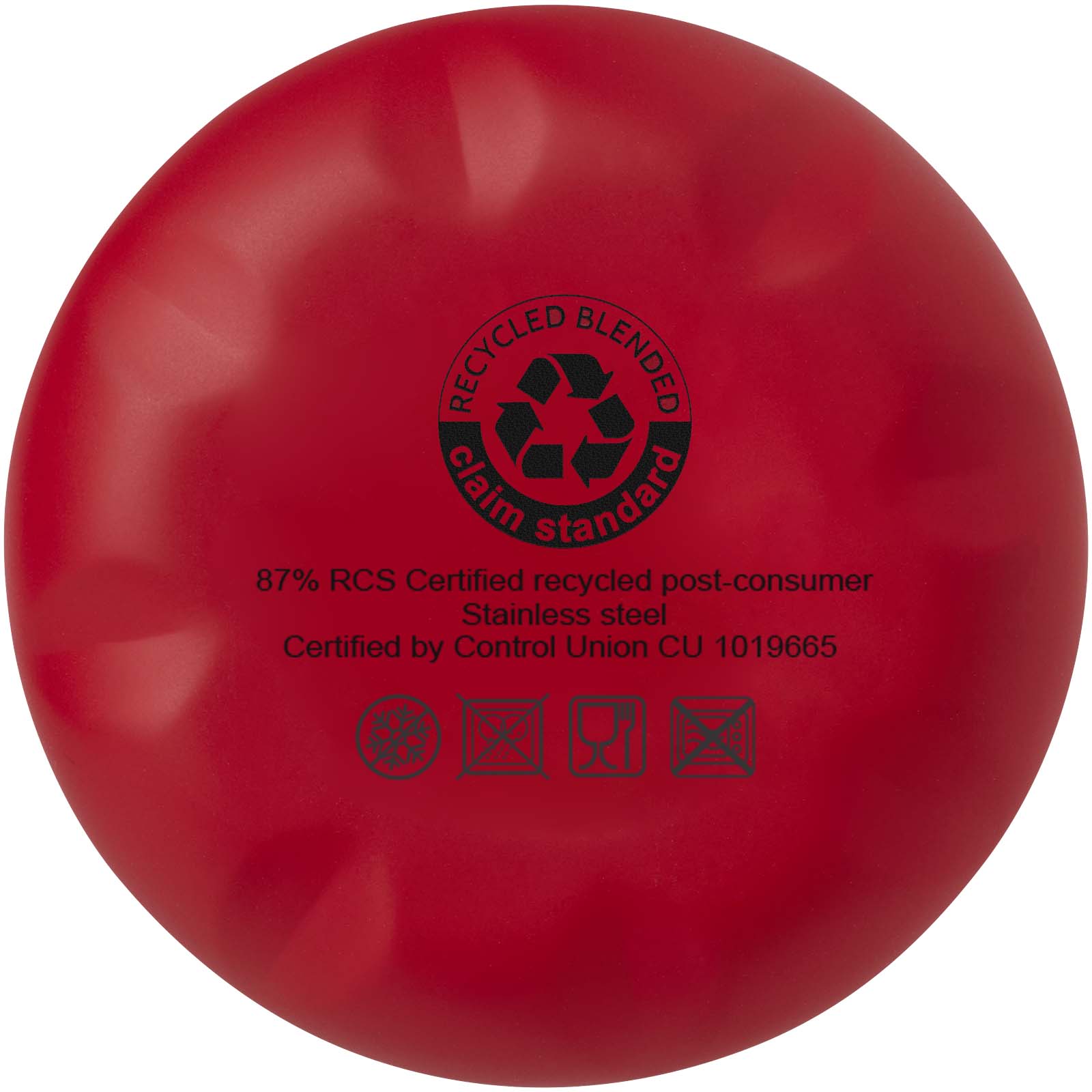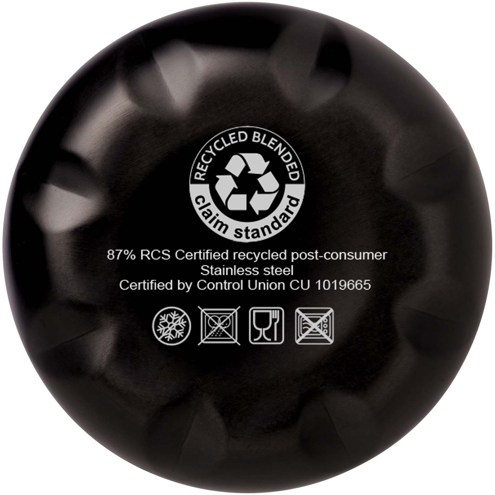 Charakterystycznie wyglądająca, izolowana próżniowo butelka ze stali nierdzewnej pochodzącej z recyklingu z certyfikatem RCS. Ta elegancko wyglądająca butelka na wodę z podstawą, która pasuje do większości uchwytów na kubki, idealnie nadaje się do promocji. Przetestowany i zatwierdzony zgodnie z niemieckimi przepisami dotyczącymi bezpieczeństwa żywności (LFGB), oraz poddany testom na zawartość ftalanów zgodnie z przepisami REACH. Pojemność 500 ml. Zapakowana w pudełko upominkowe wykonane z kartonu z recyklingu. Utrzymuje temperaturę napojów przez 12 godzin, a zimno przez 24 godziny.