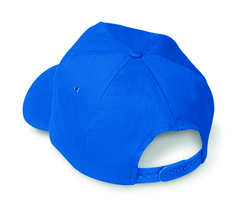 5-panelowa czapka bejsbolówka z bawełny twill 160 gr/m2 z regulowanym zapięciem na plastikowy zatrzask. 2 metalowe wywietrzniki w dopasowanym kolorze. Rozmiar: 7 1/4.