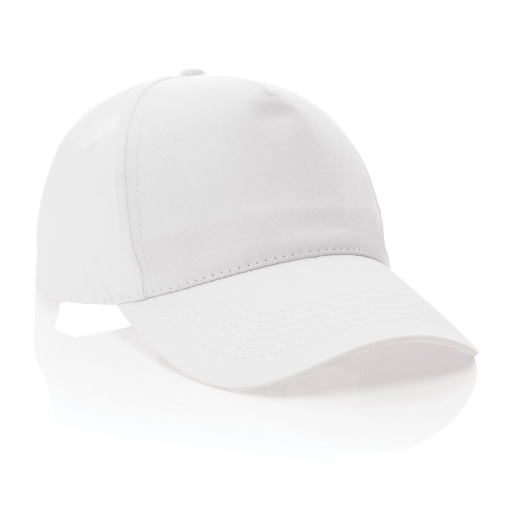 Czapka z daszkiem, 5 paneli, otwory wentylacyjne, zapięcie na rzep, wykonana z bawełny o gramaturze 190 g/m2 pochodzącej z recyklingu, dzięki zastosowaniu technologii AWARE™ wykorzystane włókna bawełny są identyfikowalne z pochodzenia, 2% wpływów z każdego sprzedanego produktu z kolekcji Impact jest przekazywane na rzecz Water.org, rozmiar 58 cm