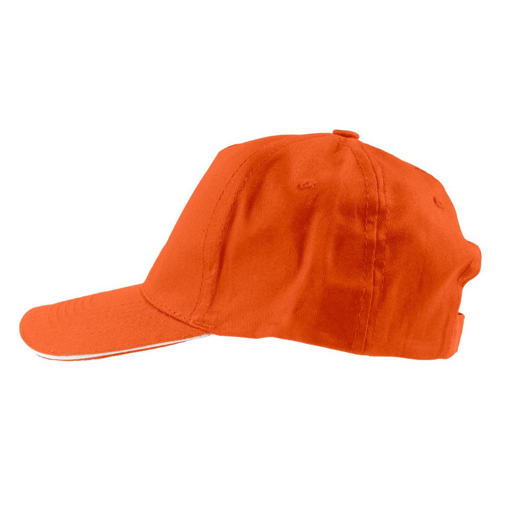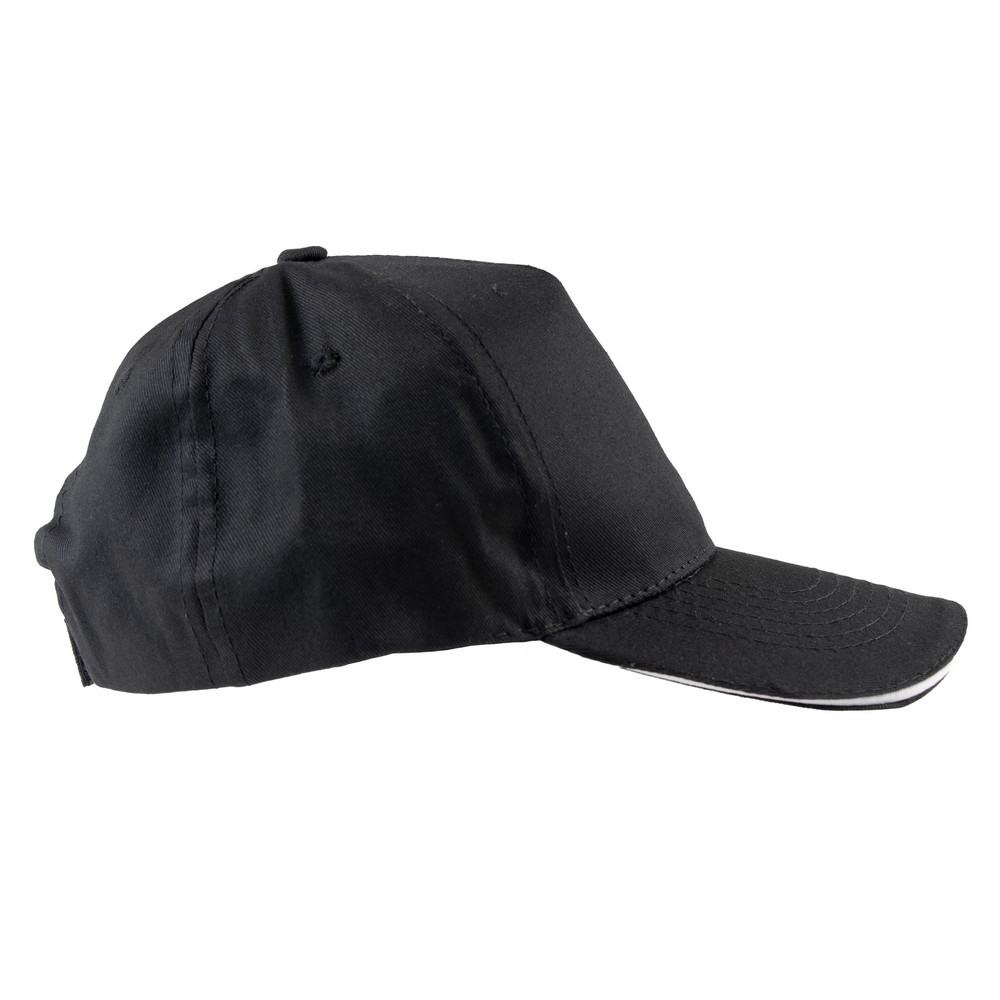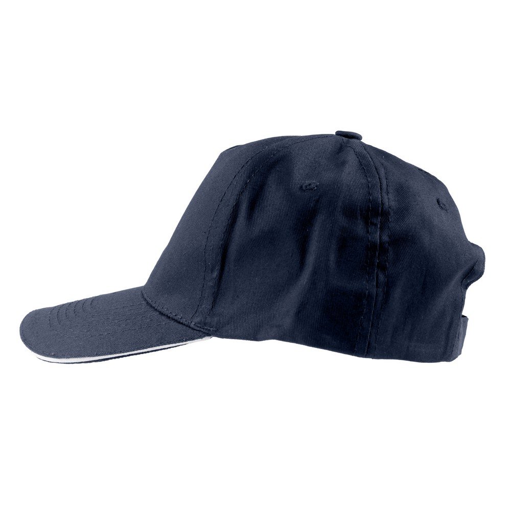 Czapka z daszkiem, posiada 5 paneli oraz zapięcie na rzep umożliwiający regulację rozmiaru, produkt wykonany z bawełny 155 g/m²