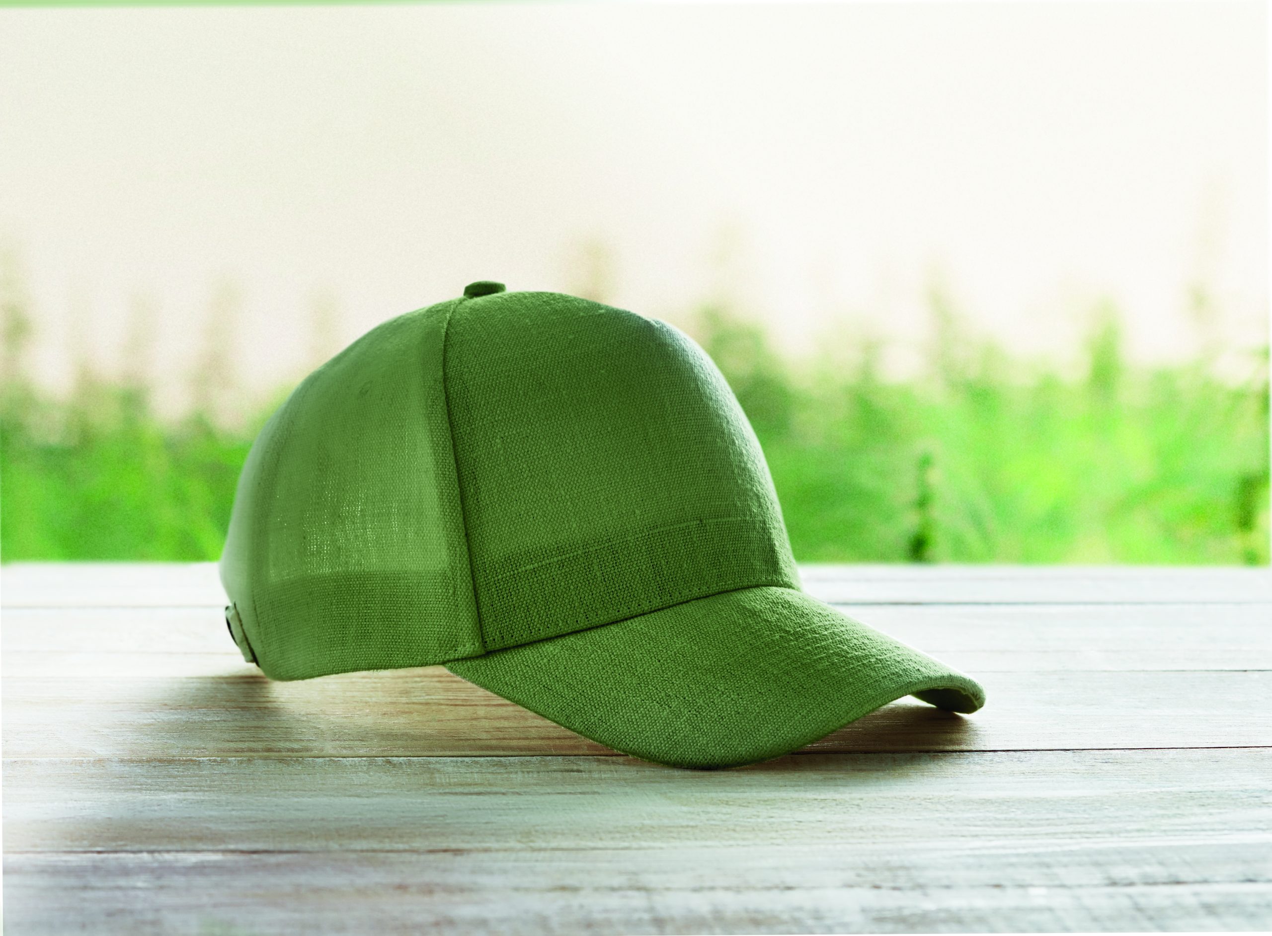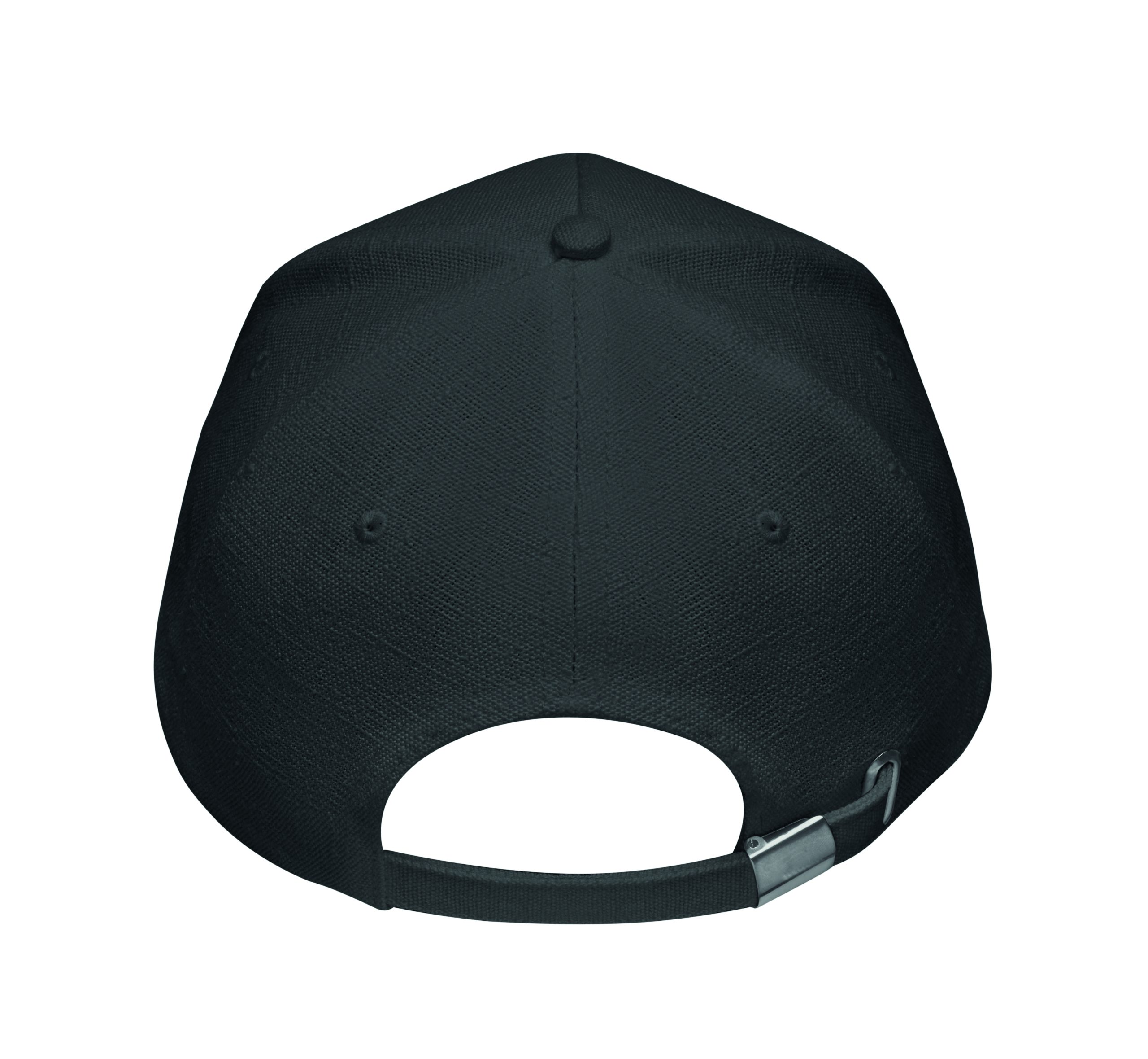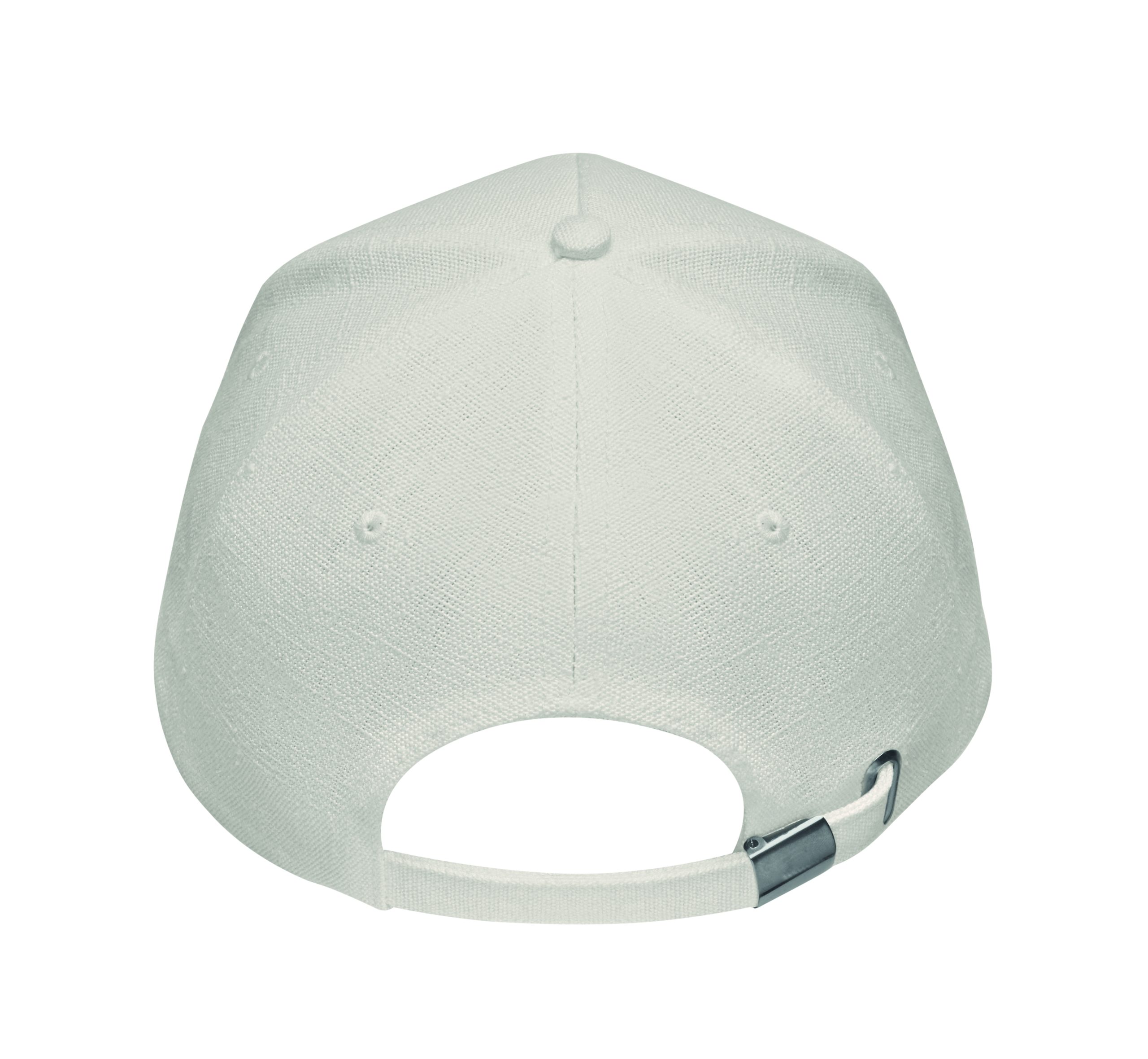 5-panelowa czapka z daszkiem ze 100% konopi 370 gr / m² z mosiężnymi klipsami na regulowanym pasku. 5 dziurek wentylacyjnych obszytych w dopasowanym kolorze. Rozmiar 7 1/4.