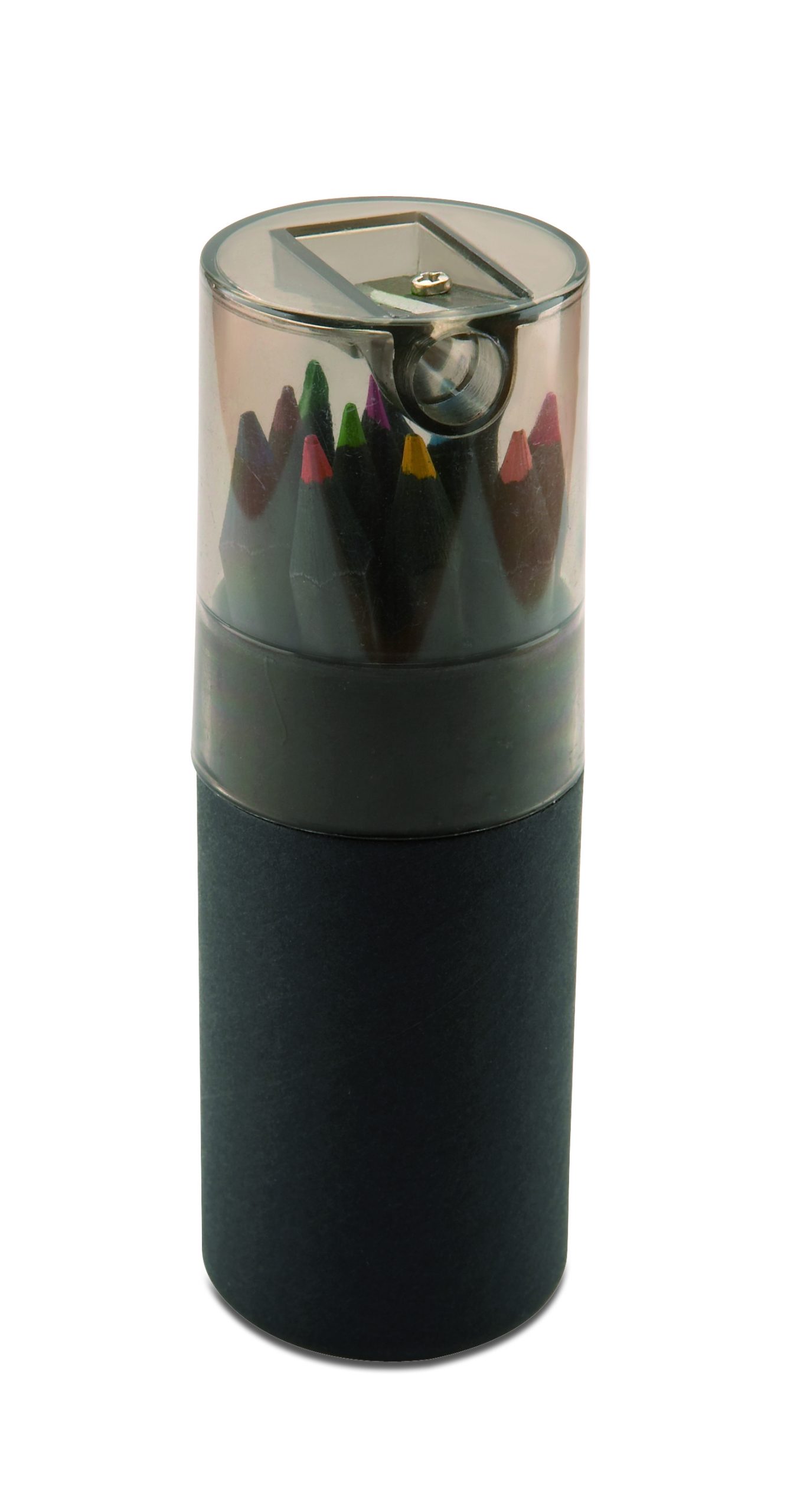 12 kolorowych kredek w czarnej papierowej tubie. Temperówka w pokrywce. FSC®-certified | FSC 100%, P5.1, W17.2, FSC-C213206