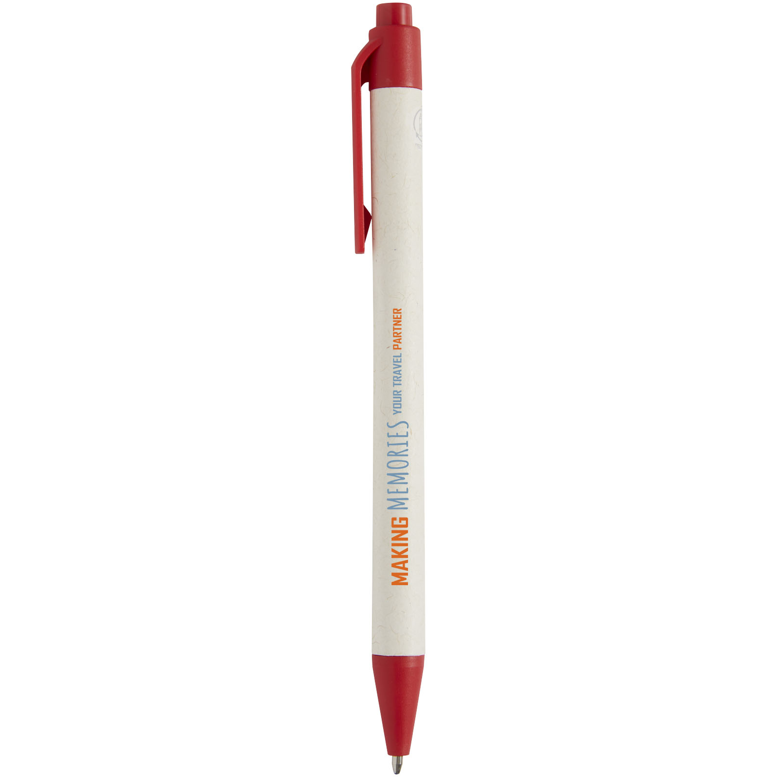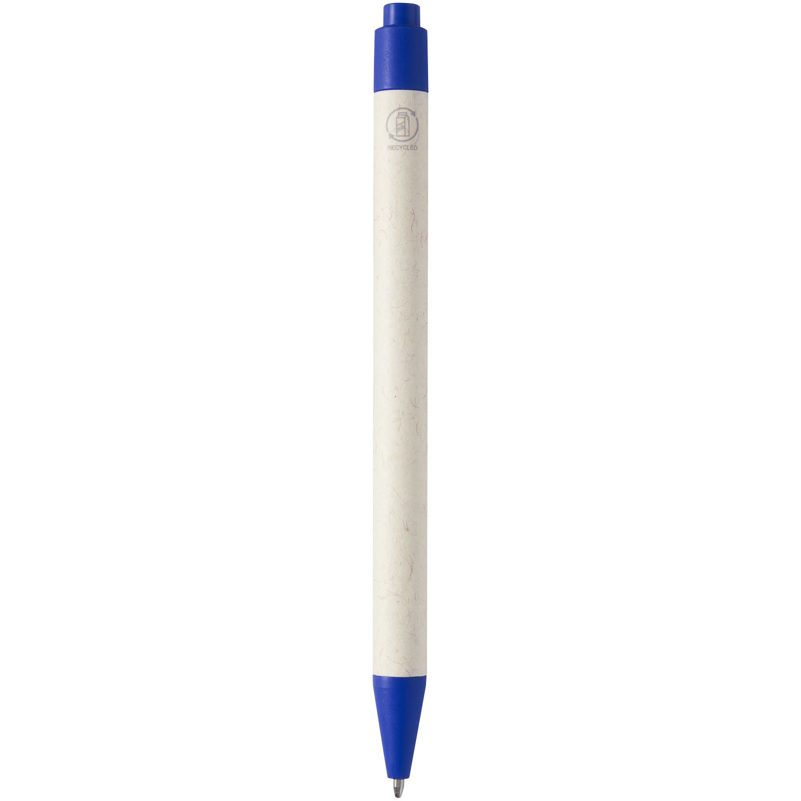 Długopis na przycisk z korpusem wykonanym z poddanych recyklingowi kartonów po mleku (do 70%). Przycisk, klips i końcówka są wykonane z tworzywa sztucznego PLA. Zużyte kartony po mleku są zbierane, sortowane, przetwarzane i zamieniane w papier, co pozwala na przekształcenie odpadów w coś użytecznego.