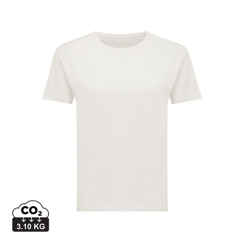 Koszulka damska, regularny krój, okrągły dekolt, krótkie rękawy, wykonana w 30% z bawełny z recyklingu i w 70% z bawełny organicznej o gramaturze 160 g/m2, posiada wbudowany znacznik AWARE™, który potwierdza wykorzystanie materiałów z recyklingu, posiada kod QR na metce, który prowadzi do cyfrowego paszportu produktu, 2% wpływów z każdego sprzedanego produktu z kolekcji Impact jest przekazywane na rzecz Water.org, ślad węglowy produktu: 3,23 kg CO2