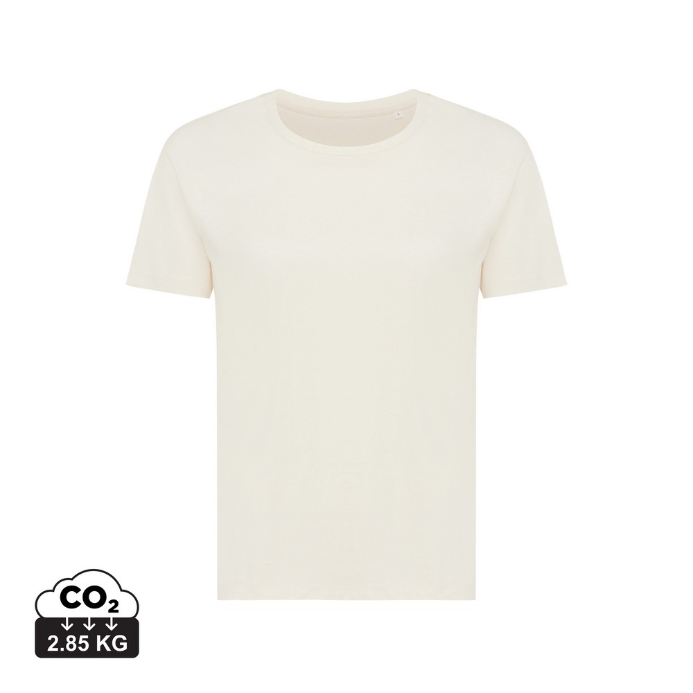 Koszulka damska, regularny krój, okrągły dekolt, krótkie rękawy, wykonana w 30% z bawełny z recyklingu i w 70% z bawełny organicznej o gramaturze 160 g/m2, posiada wbudowany znacznik AWARE™, który potwierdza wykorzystanie materiałów z recyklingu, posiada kod QR na metce, który prowadzi do cyfrowego paszportu produktu, 2% wpływów z każdego sprzedanego produktu z kolekcji Impact jest przekazywane na rzecz Water.org, ślad węglowy produktu: 2,85 kg CO2