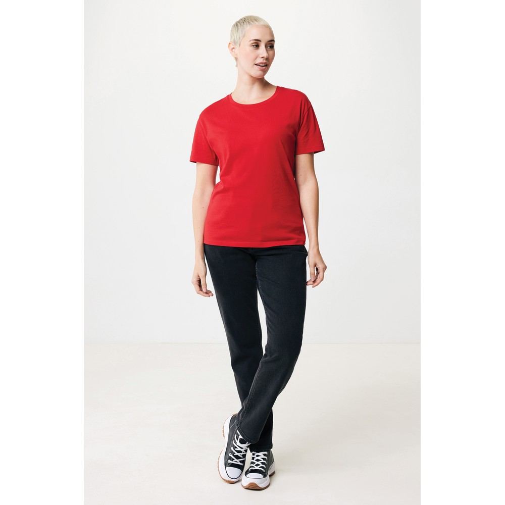 Koszulka damska, regularny krój, okrągły dekolt, krótkie rękawy, wykonana w 30% z bawełny z recyklingu i w 70% z bawełny organicznej o gramaturze 160 g/m2, posiada wbudowany znacznik AWARE™, który potwierdza wykorzystanie materiałów z recyklingu, posiada kod QR na metce, który prowadzi do cyfrowego paszportu produktu, 2% wpływów z każdego sprzedanego produktu z kolekcji Impact jest przekazywane na rzecz Water.org