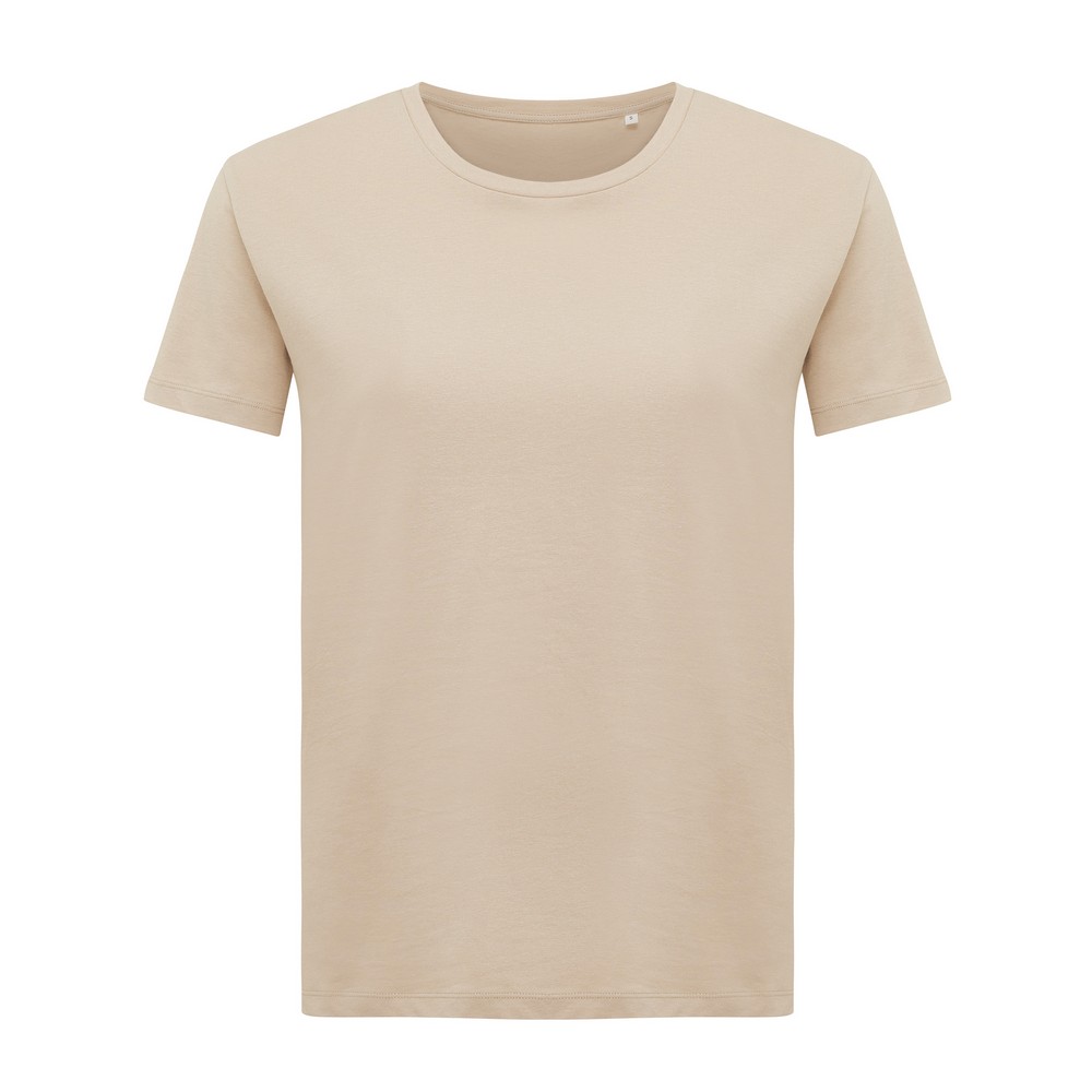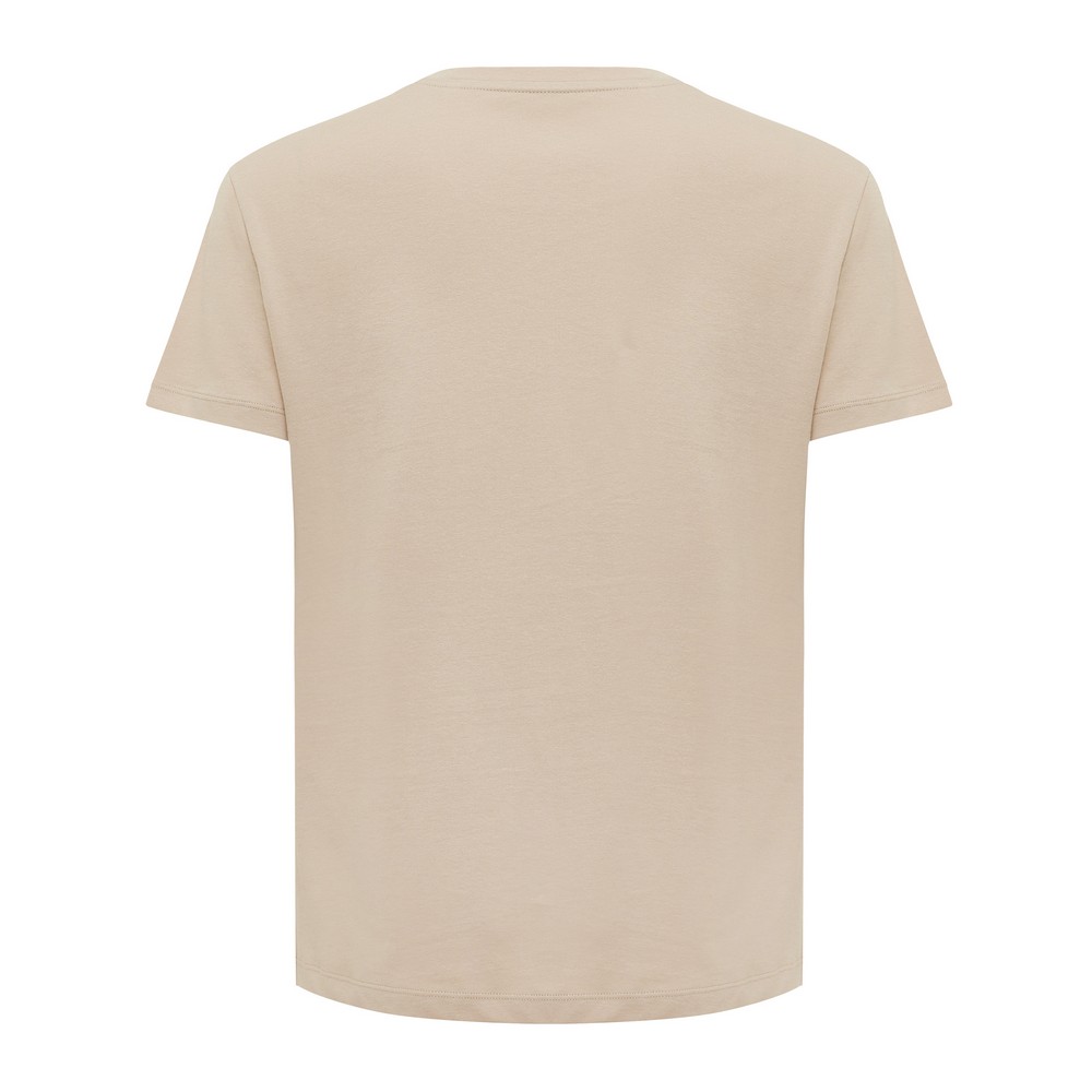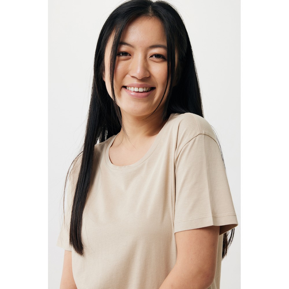 Koszulka damska, regularny krój, okrągły dekolt, krótkie rękawy, wykonana w 30% z bawełny z recyklingu i w 70% z bawełny organicznej o gramaturze 160 g/m2, posiada wbudowany znacznik AWARE™, który potwierdza wykorzystanie materiałów z recyklingu, posiada kod QR na metce, który prowadzi do cyfrowego paszportu produktu, 2% wpływów z każdego sprzedanego produktu z kolekcji Impact jest przekazywane na rzecz Water.org, ślad węglowy produktu: 3,23 kg CO2