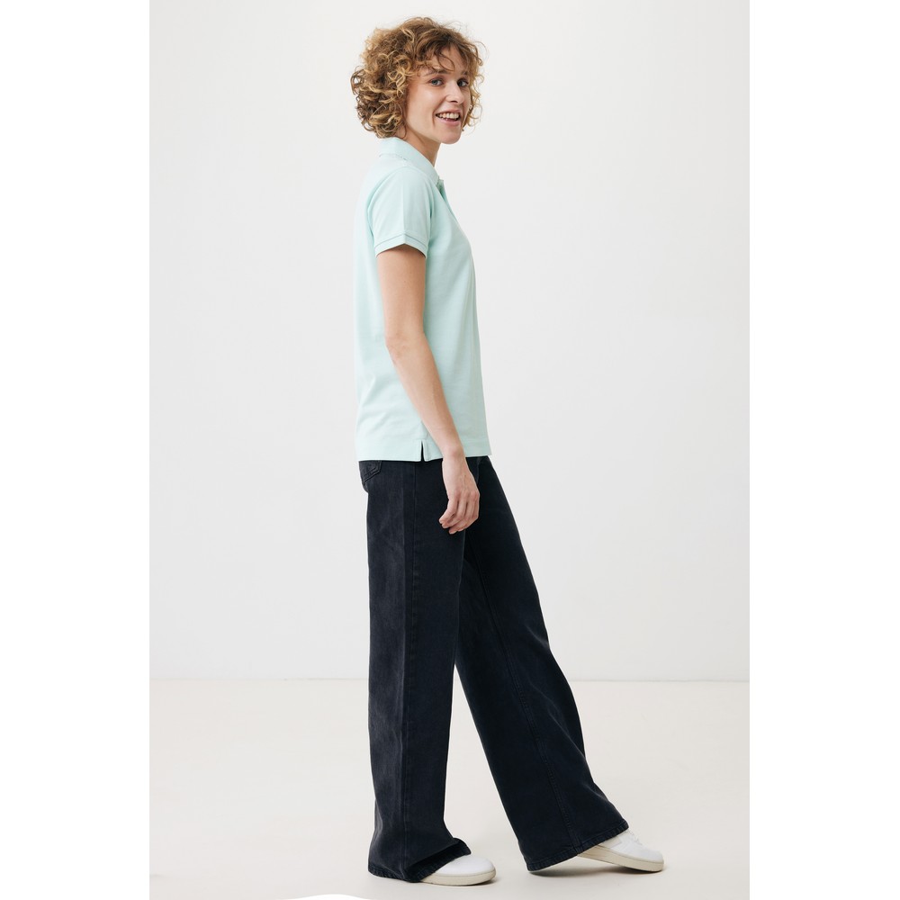 Koszulka polo, damska, zapięcie na 3 guziki, krój medium, splot Pique, krótkie rękawy, wykonana w 50% z bawełny z recyklingu i w 50% z bawełny organicznej o gramaturze 220 g/m2, bez dodatku poliestru, posiada wbudowany znacznik AWARE™, który potwierdza wykorzystanie materiałów z recyklingu, posiada kod QR na metce, który prowadzi do cyfrowego paszportu produktu, 2% wpływów z każdego sprzedanego produktu jest przekazywane na rzecz Water.org