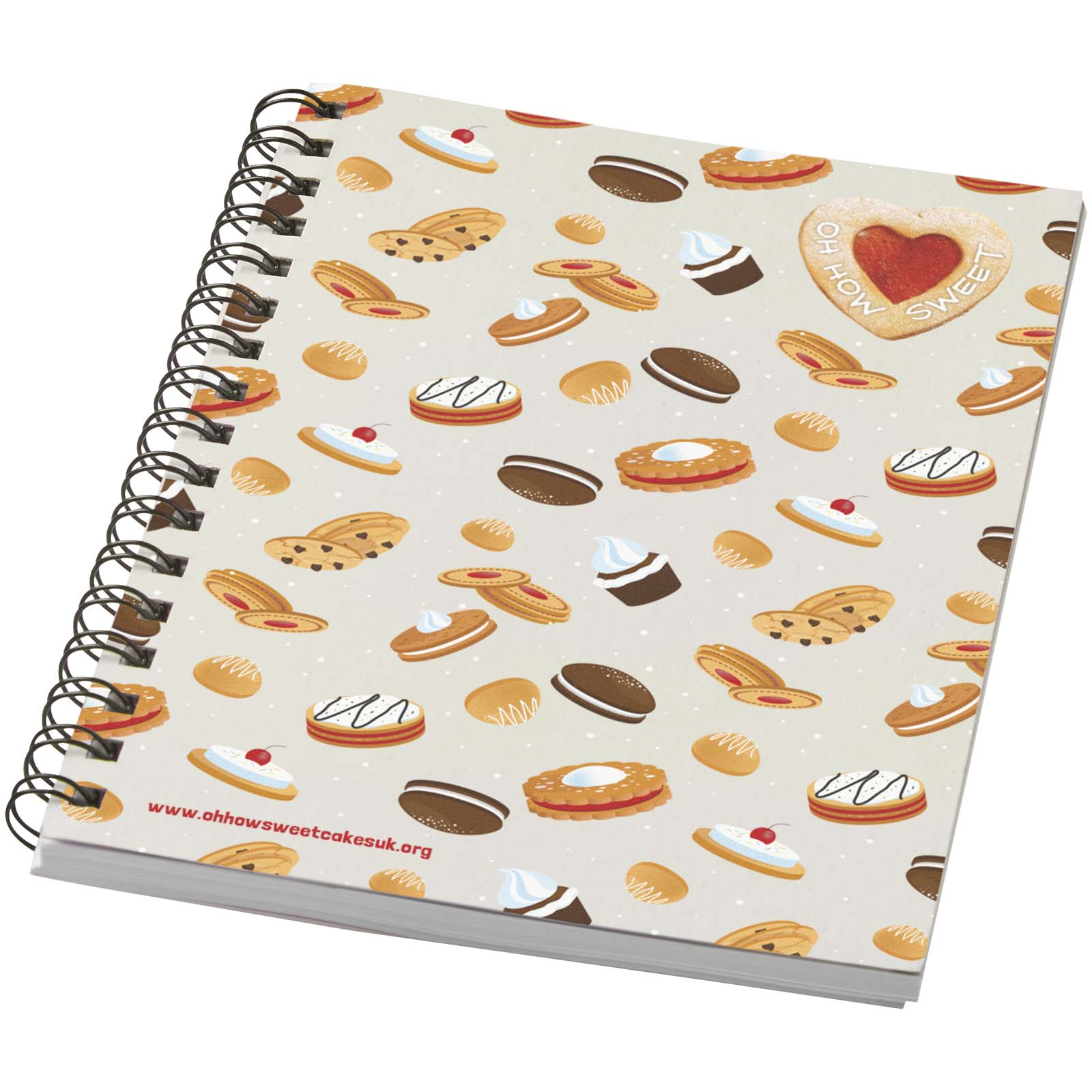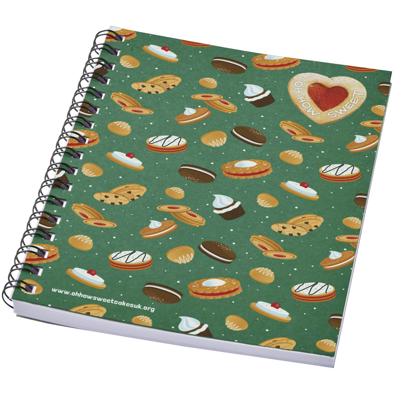 Dodaj odważny kolor do swoich notatek dzięki temu kołozeszytowi A6. Zawiera 50 arkuszy czystego papieru z recyklingu o gramaturze 80 g/m2 i przednią okładkę karty o gramaturze 320 g/m2 w różnych kolorach. Możesz spersonalizować strony tego wszechstronnego notatnika, dodając dowolny wzór – więc niezależnie od tego, czy chcesz papier w linie, kwadraty czy kropki – wszystko jest możliwe! Wyprodukowany z materiałów pozyskiwanych w zrównoważony sposób. Wyprodukowano w Wielkiej Brytanii.