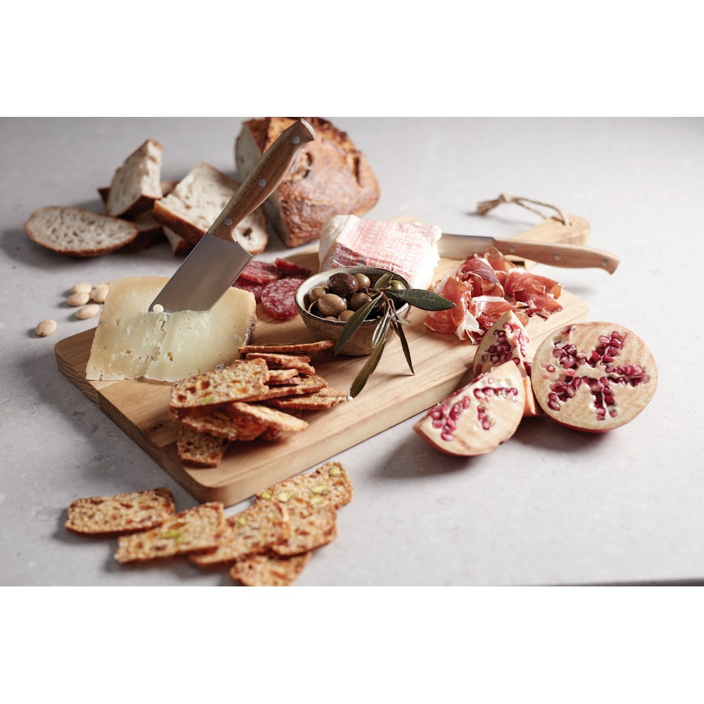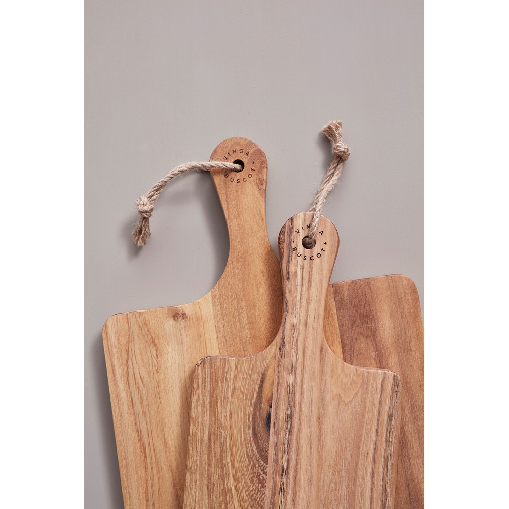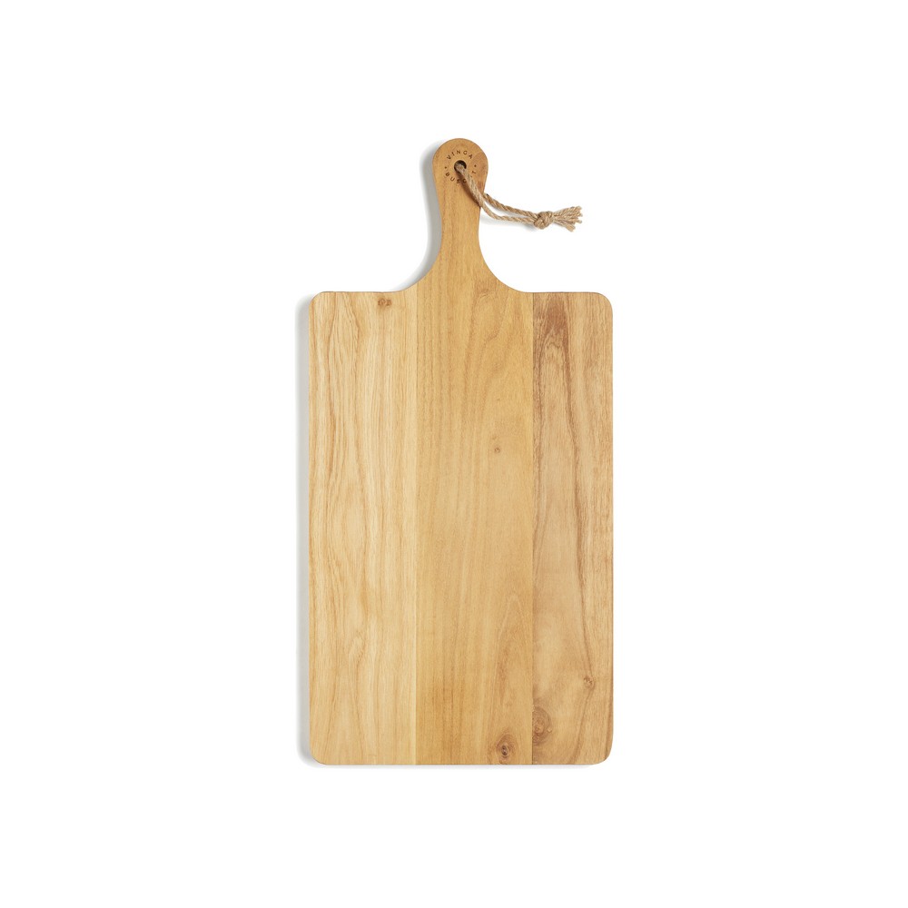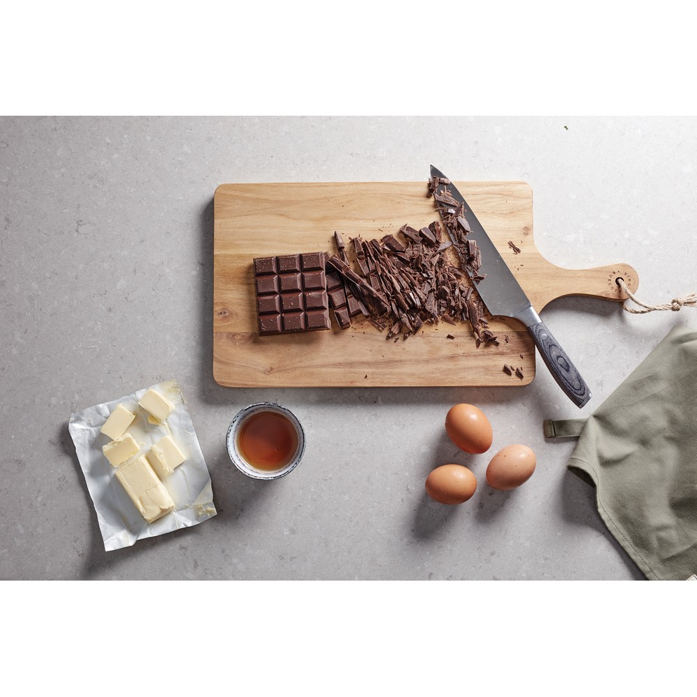 Deska do krojenia, serwowania, wykonana z drewna tekowego, które dzięki swoim naturalnym właściwościom z czasem ciemnieje, dzięki wysokiej zawartości oleju drewno jest bardzo odporne i wytrzymałe