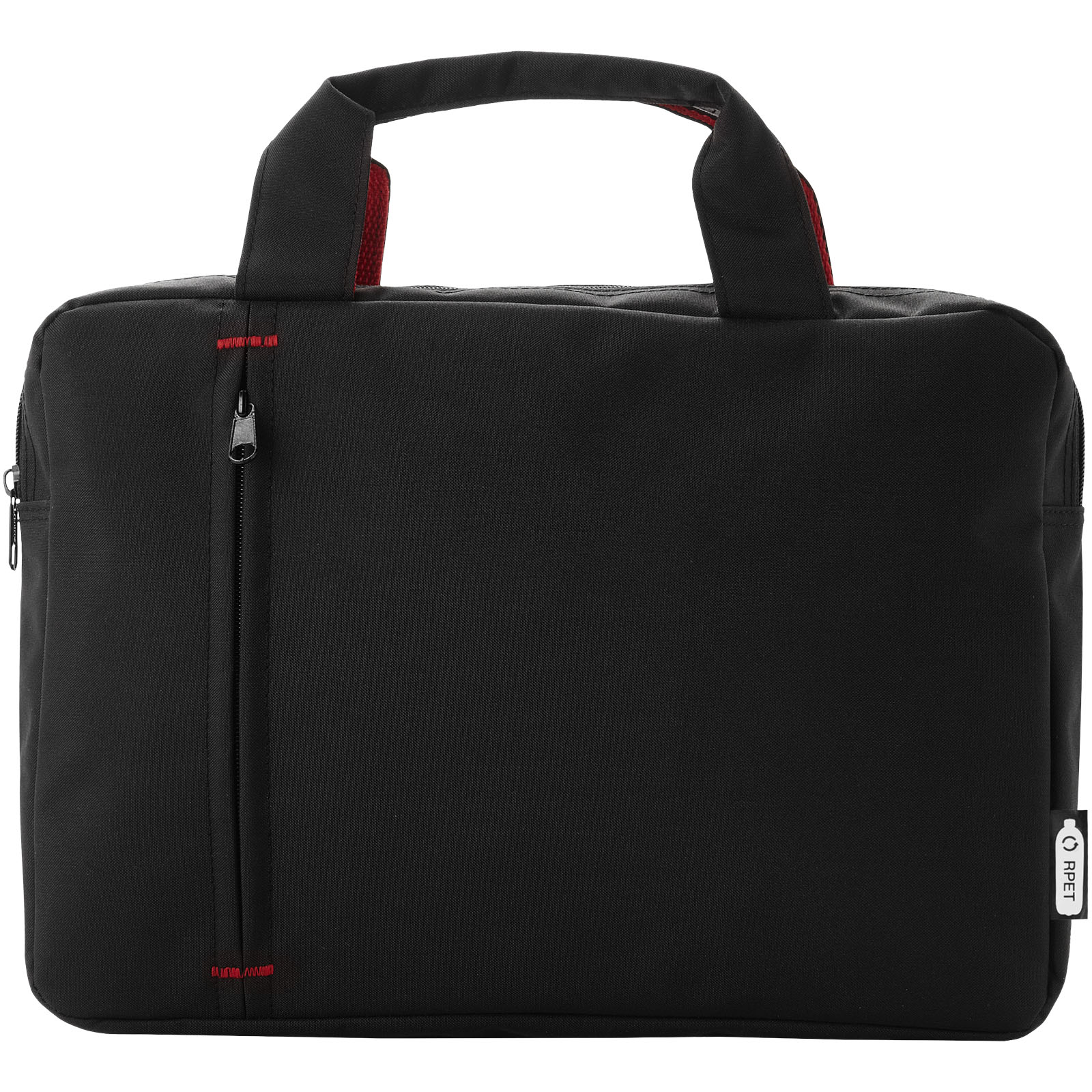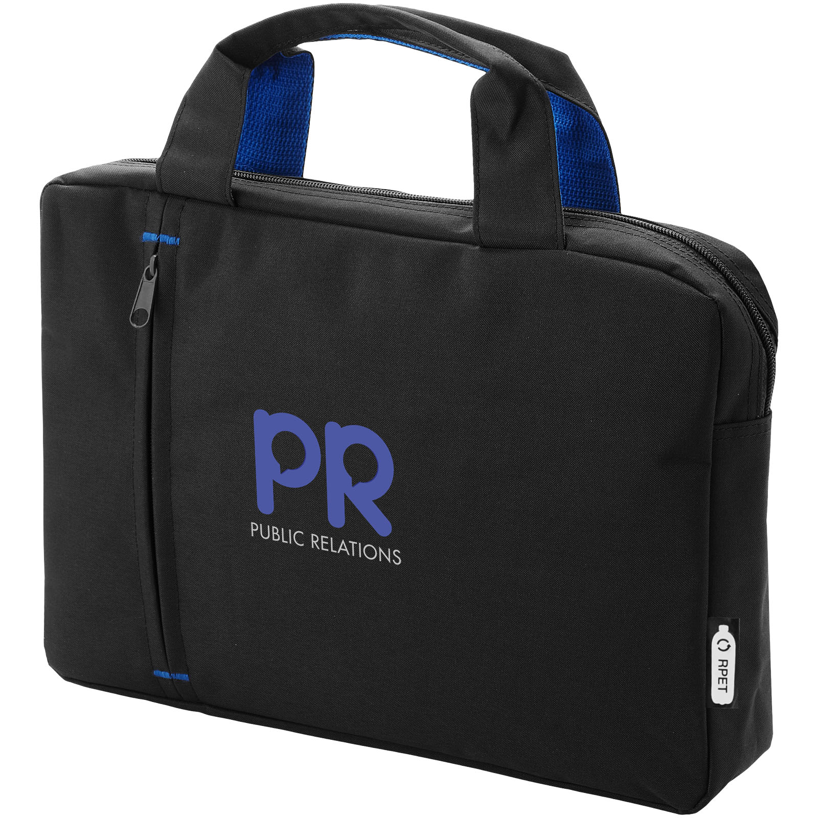 Pojemna teczka wykonana z plastiku PET z recyklingu z główną komorą i kieszenią zamykaną na zamek błyskawiczny, ze wzmocnionymi górnymi uchwytami służącymi do jej przenoszenia i modnymi elementami kontrastującymi kolorystycznie.