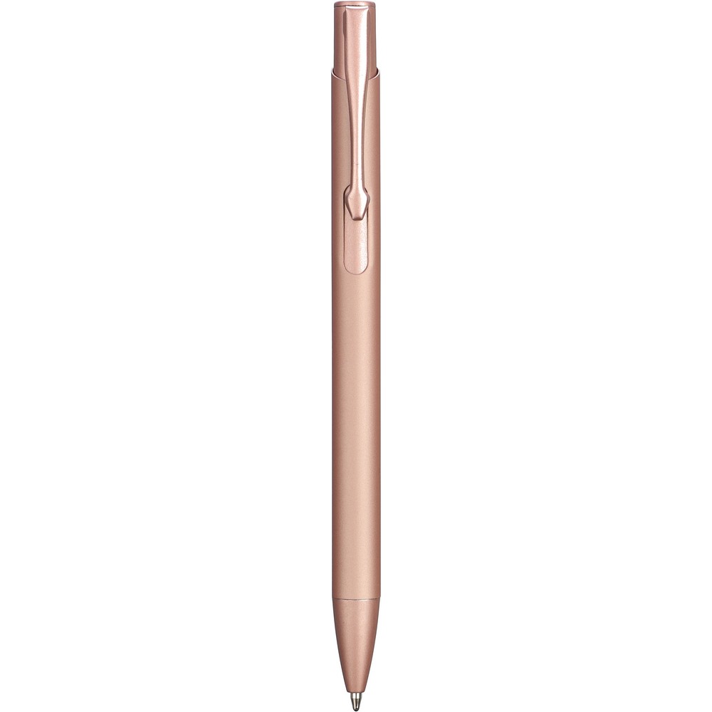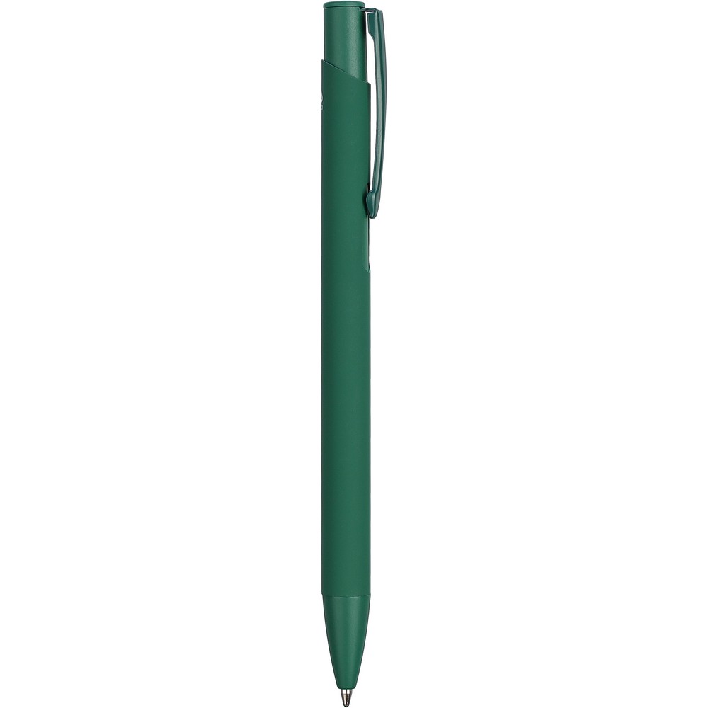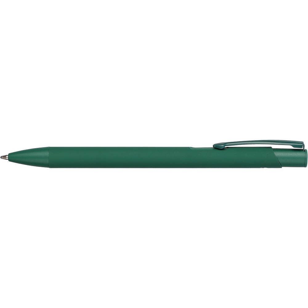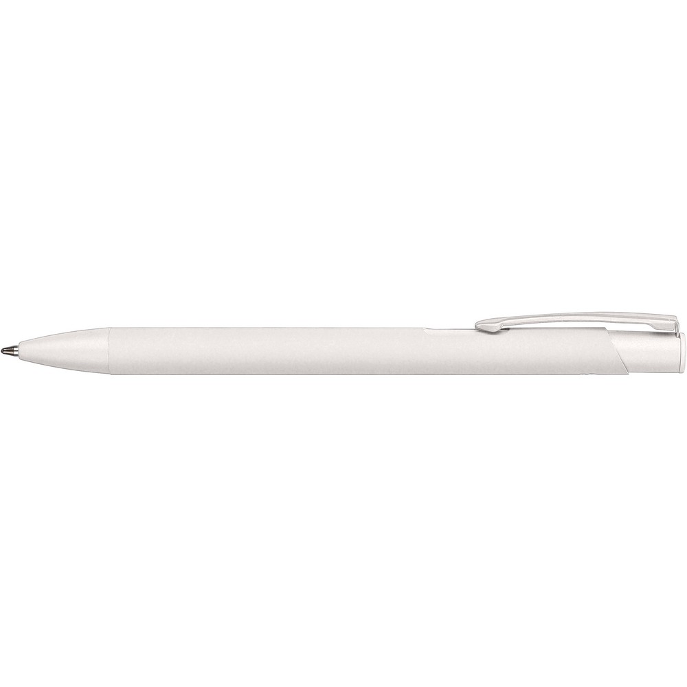 Długopis aluminiowy z recyklingu z gumowaną powłoką na korpusie, ikona aluminium z recyklingu wygrawerowana na produkcie, wkład w niebieskim kolorze, produkt wykonany z aluminium i ABS